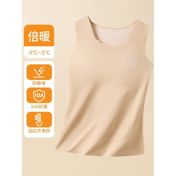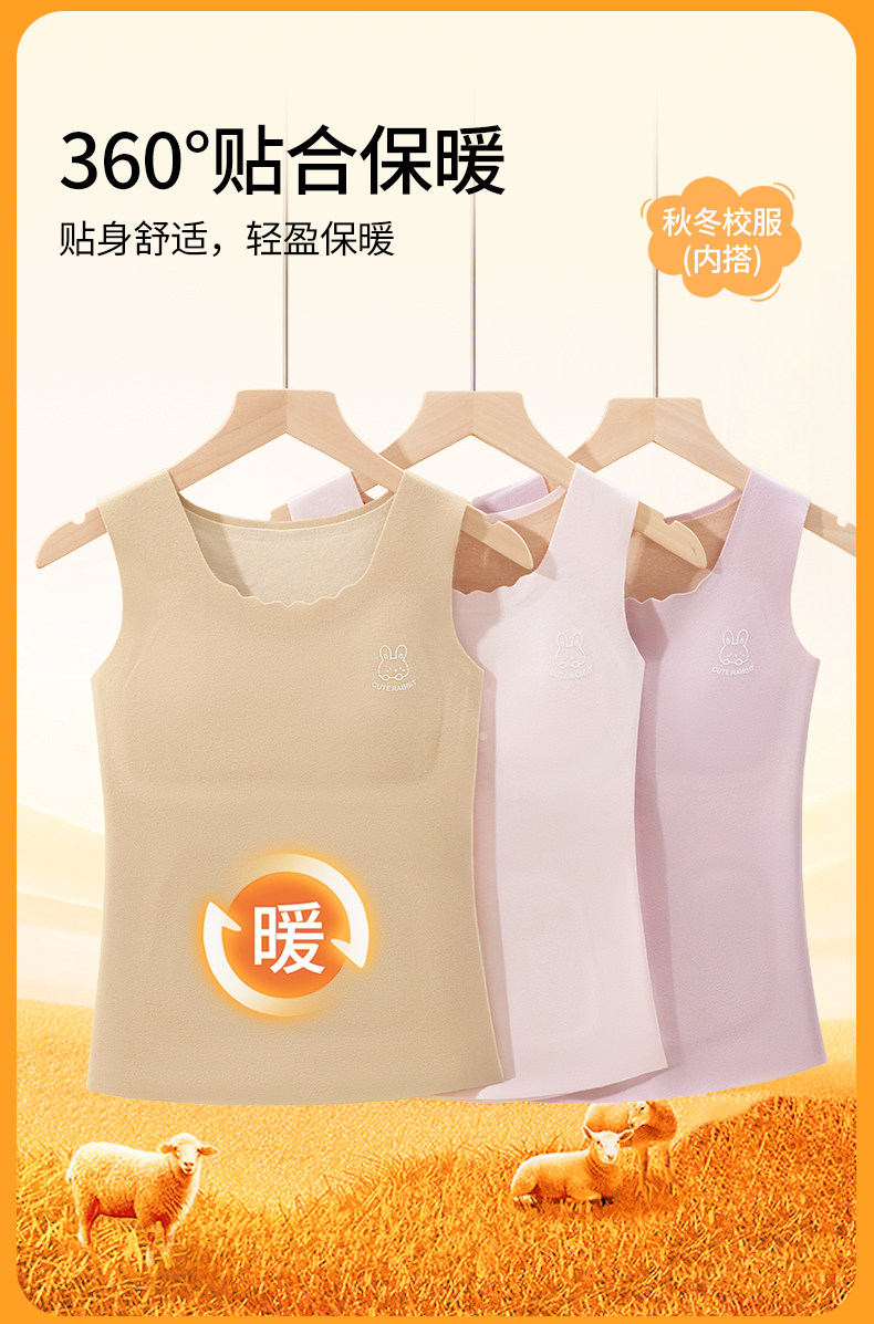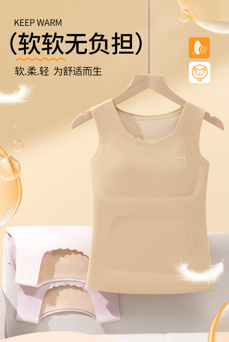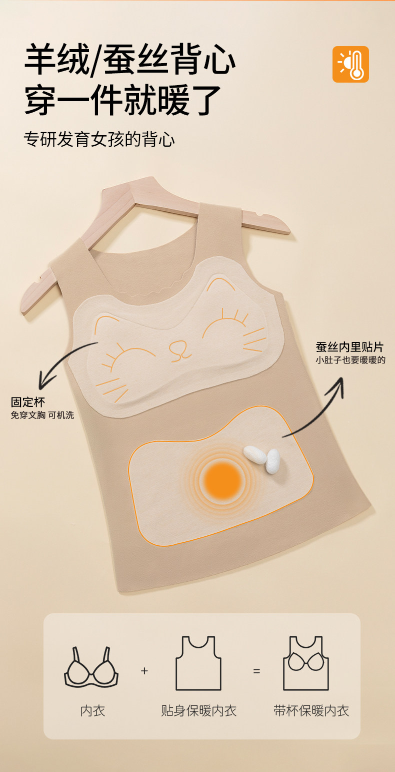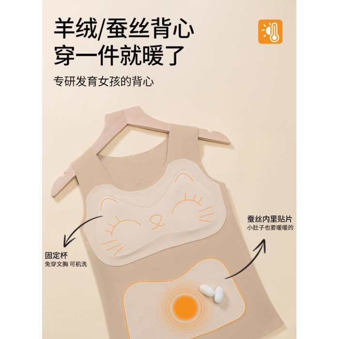 貓人保暖背心女帶胸墊一體式免穿文胸秋冬綿羊毛蠶絲打底少女內衣