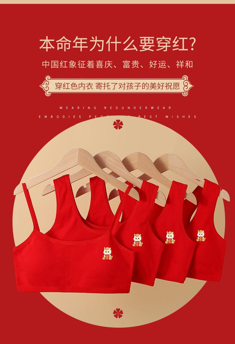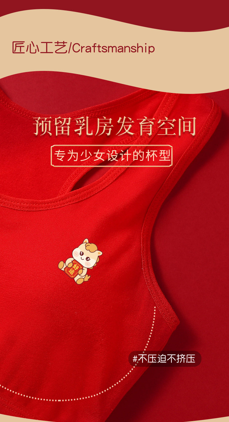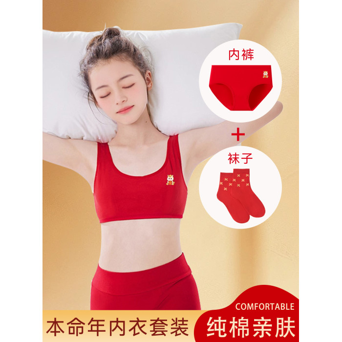 小女孩純棉內衣褲本命年無鋼圈文胸套裝女學生發育期兒童馬年背心
