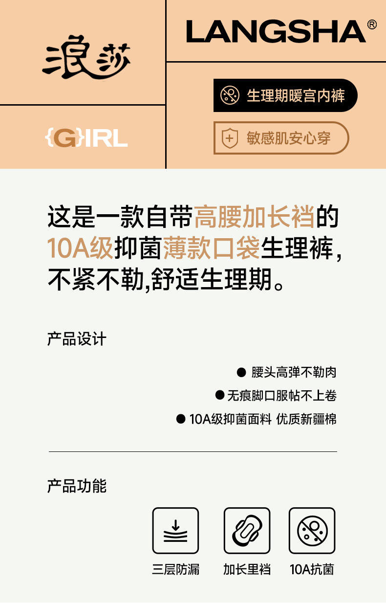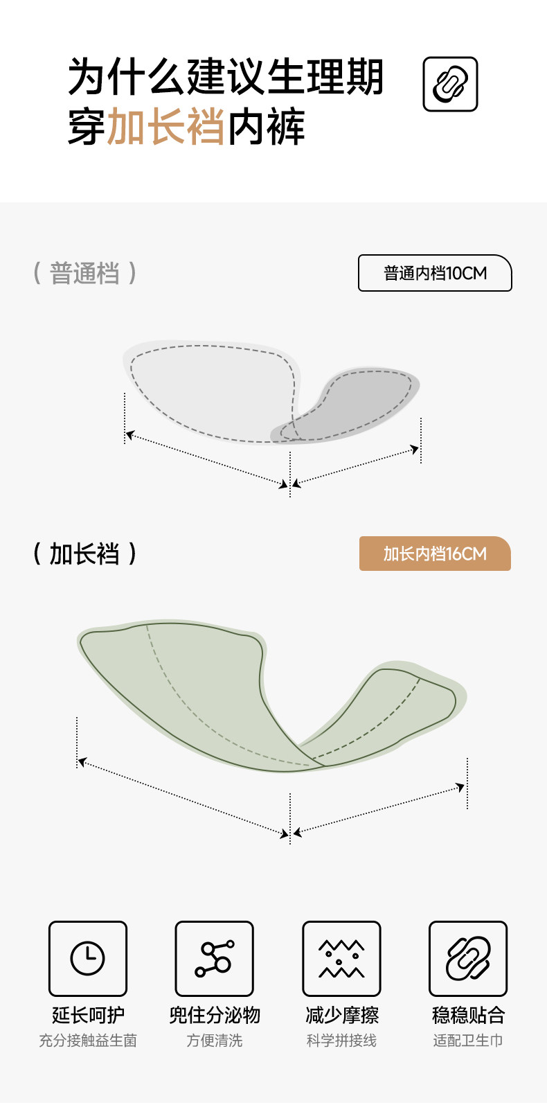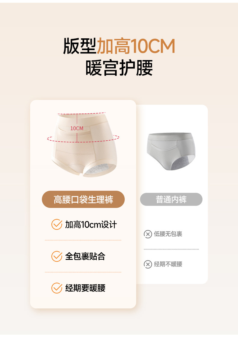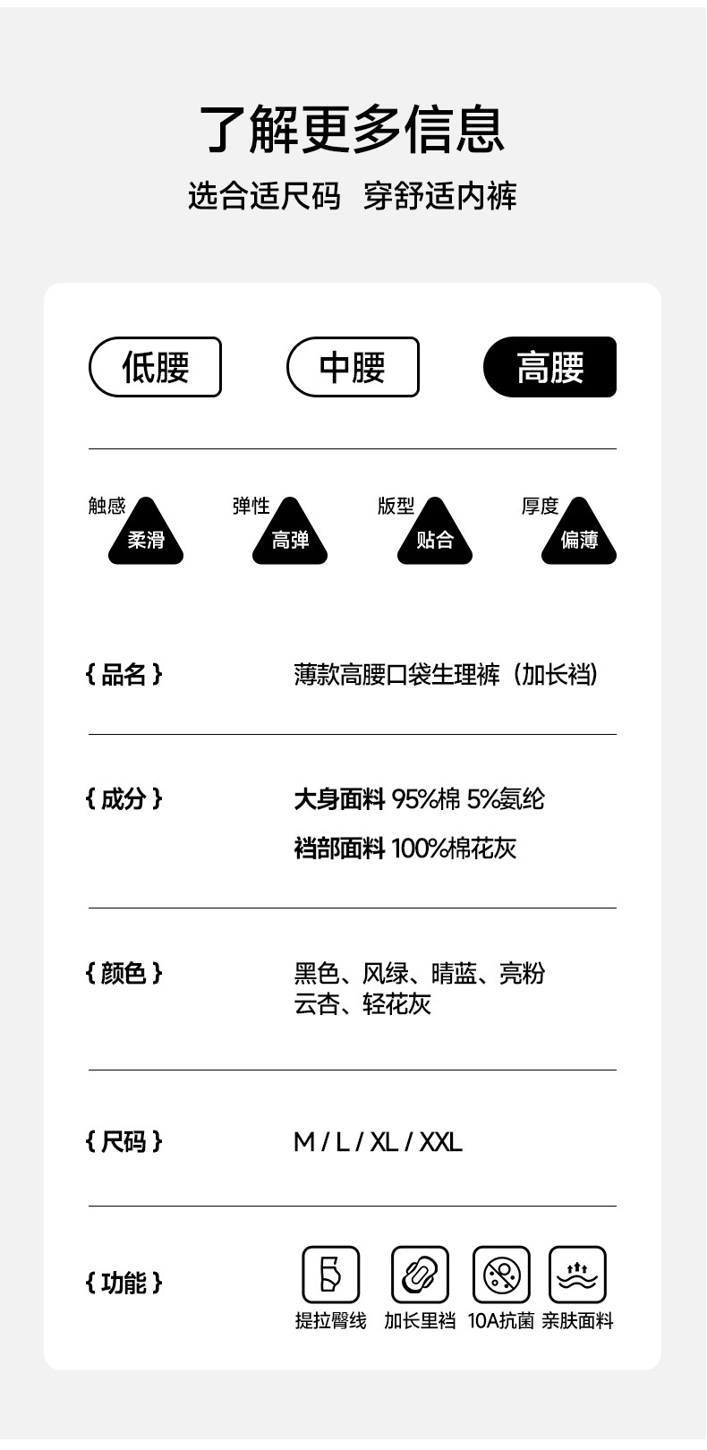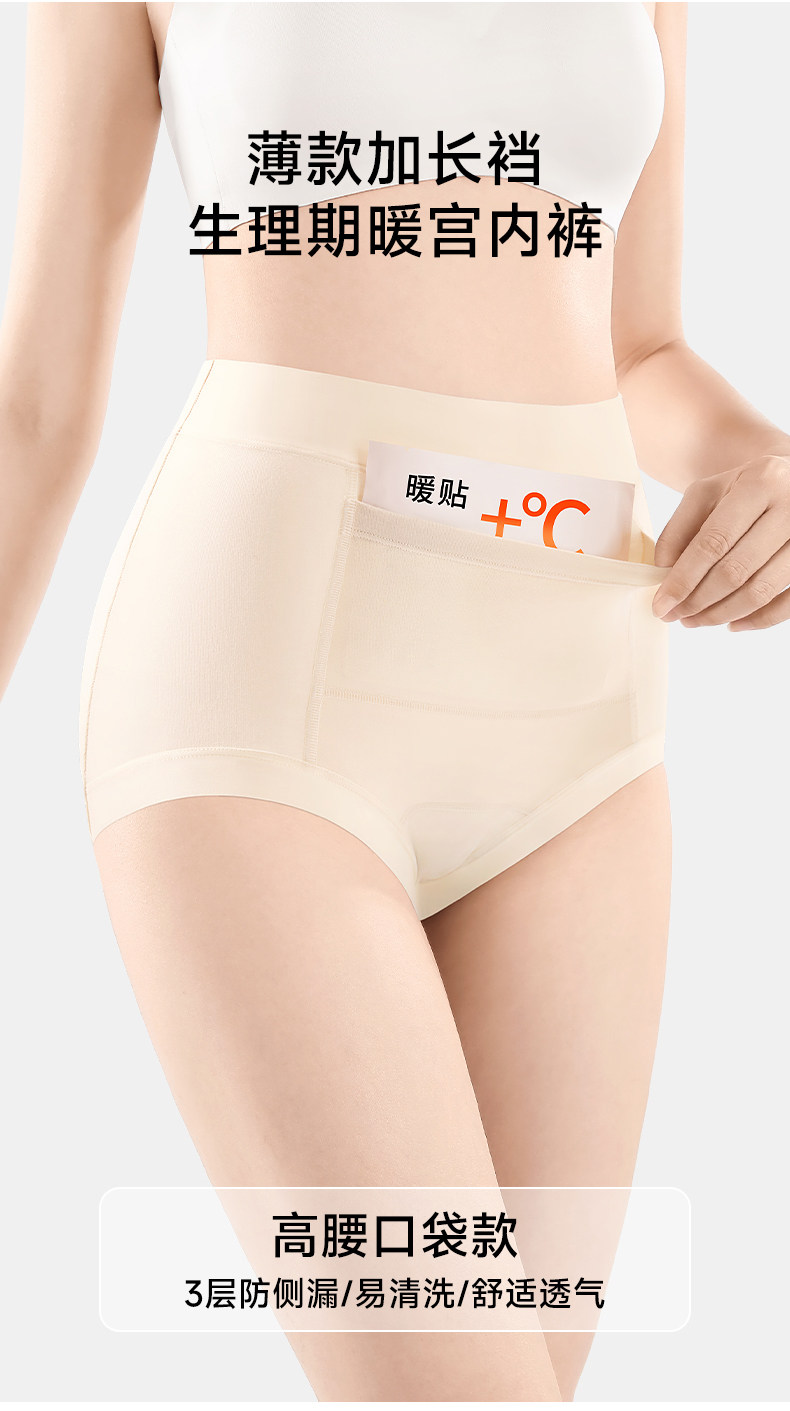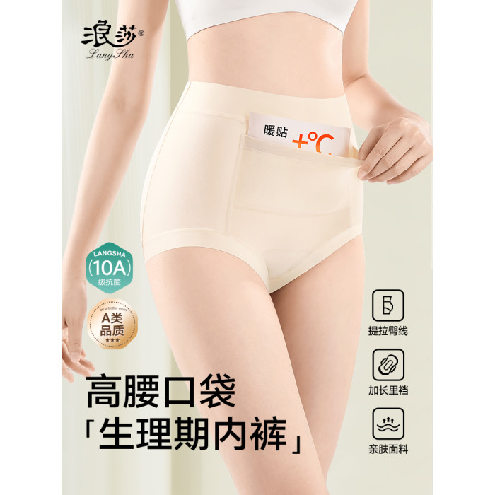 浪莎暖宮加長襠生理內褲高腰口袋生理褲抗菌