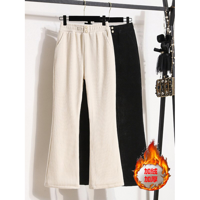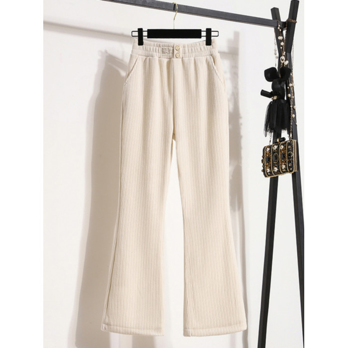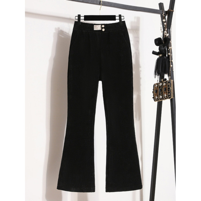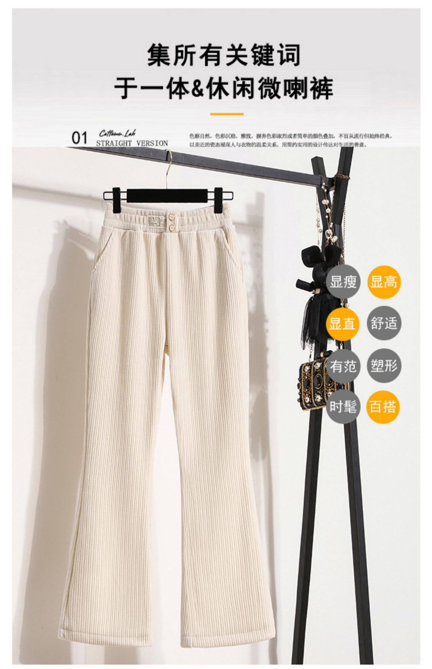 150小個子顯高微喇褲女秋冬155穿搭高腰雪尼爾顯瘦百搭休閒褲子xs