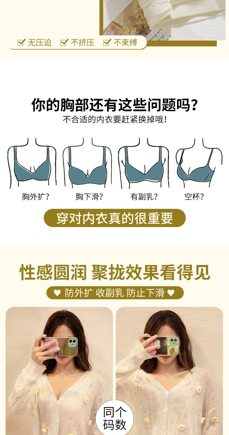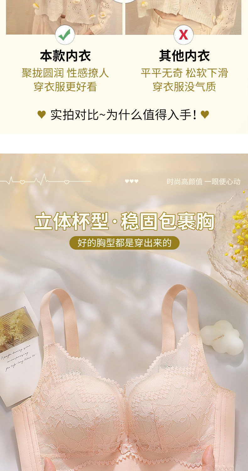 婷美內衣女小胸聚攏上托防下垂收副乳院線專業無鋼圈調整型文胸罩