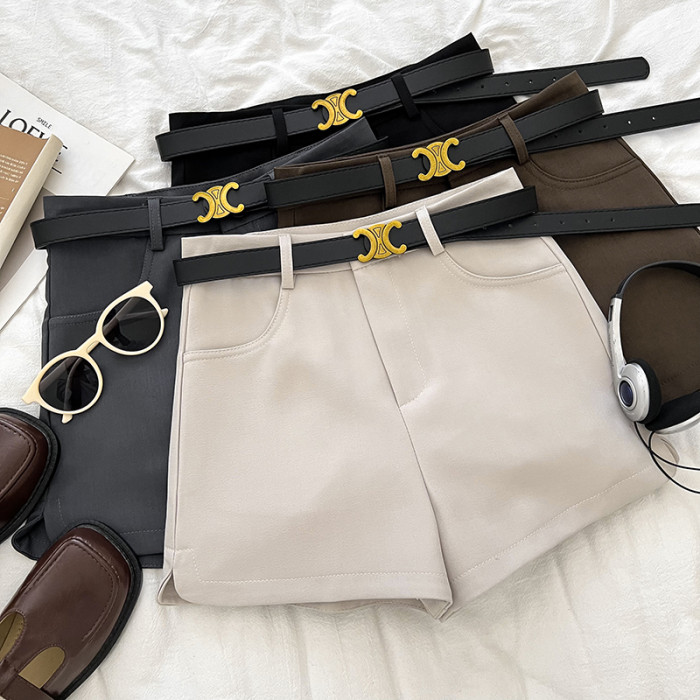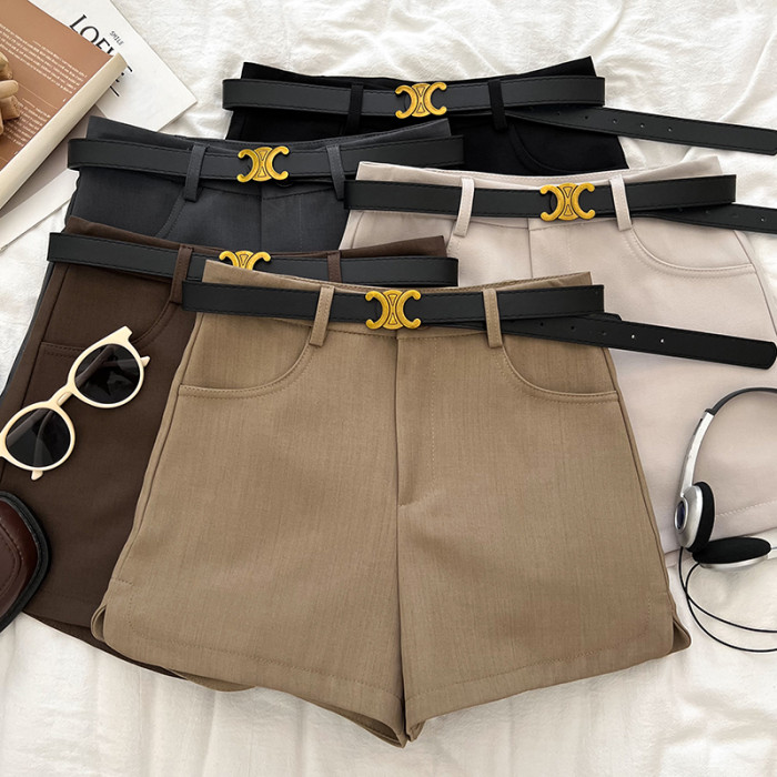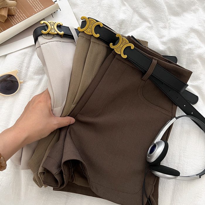 設計感時尚百搭側邊開叉高腰顯瘦西裝短褲濶腿褲休閒褲靴褲配皮帶