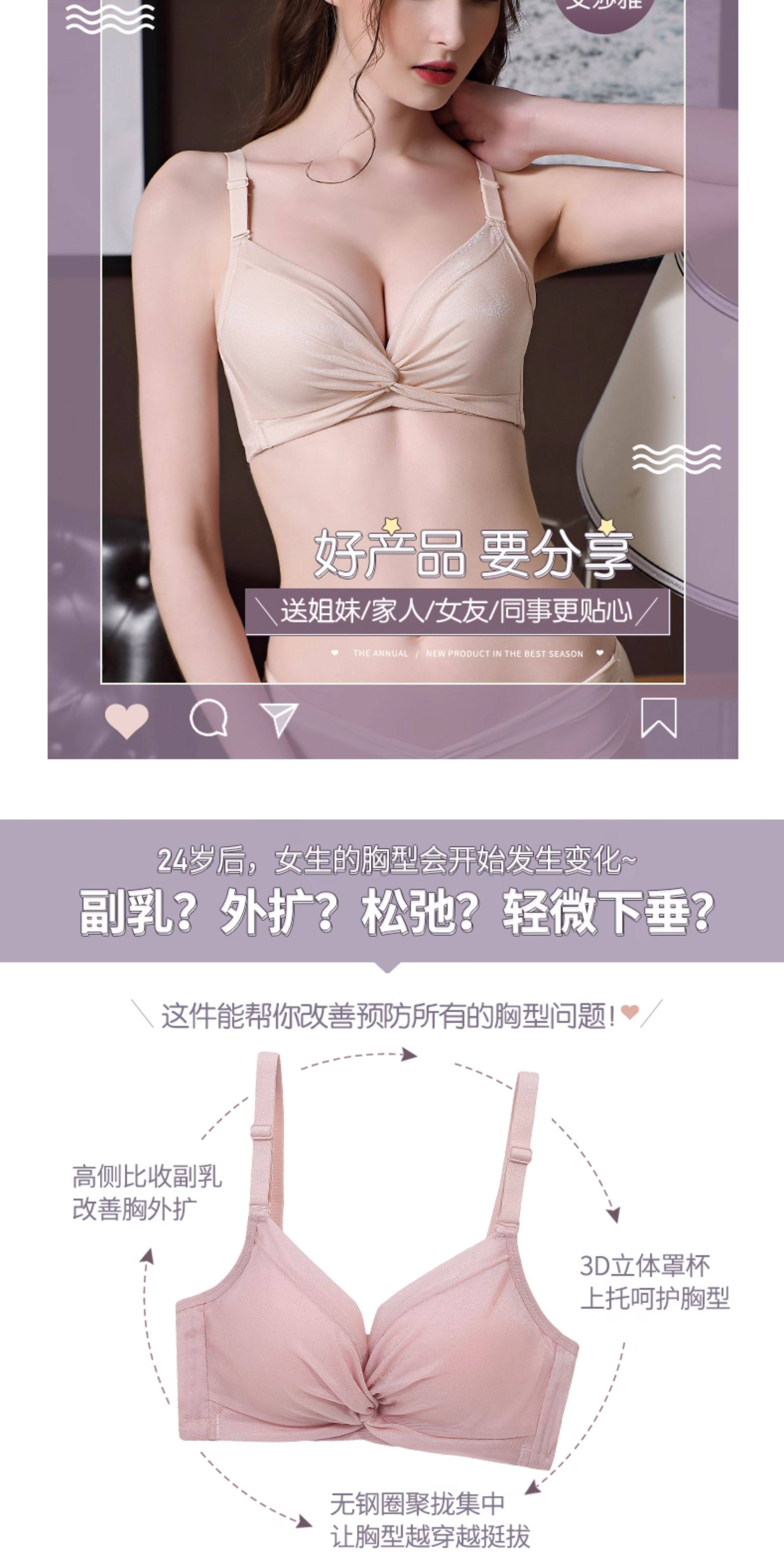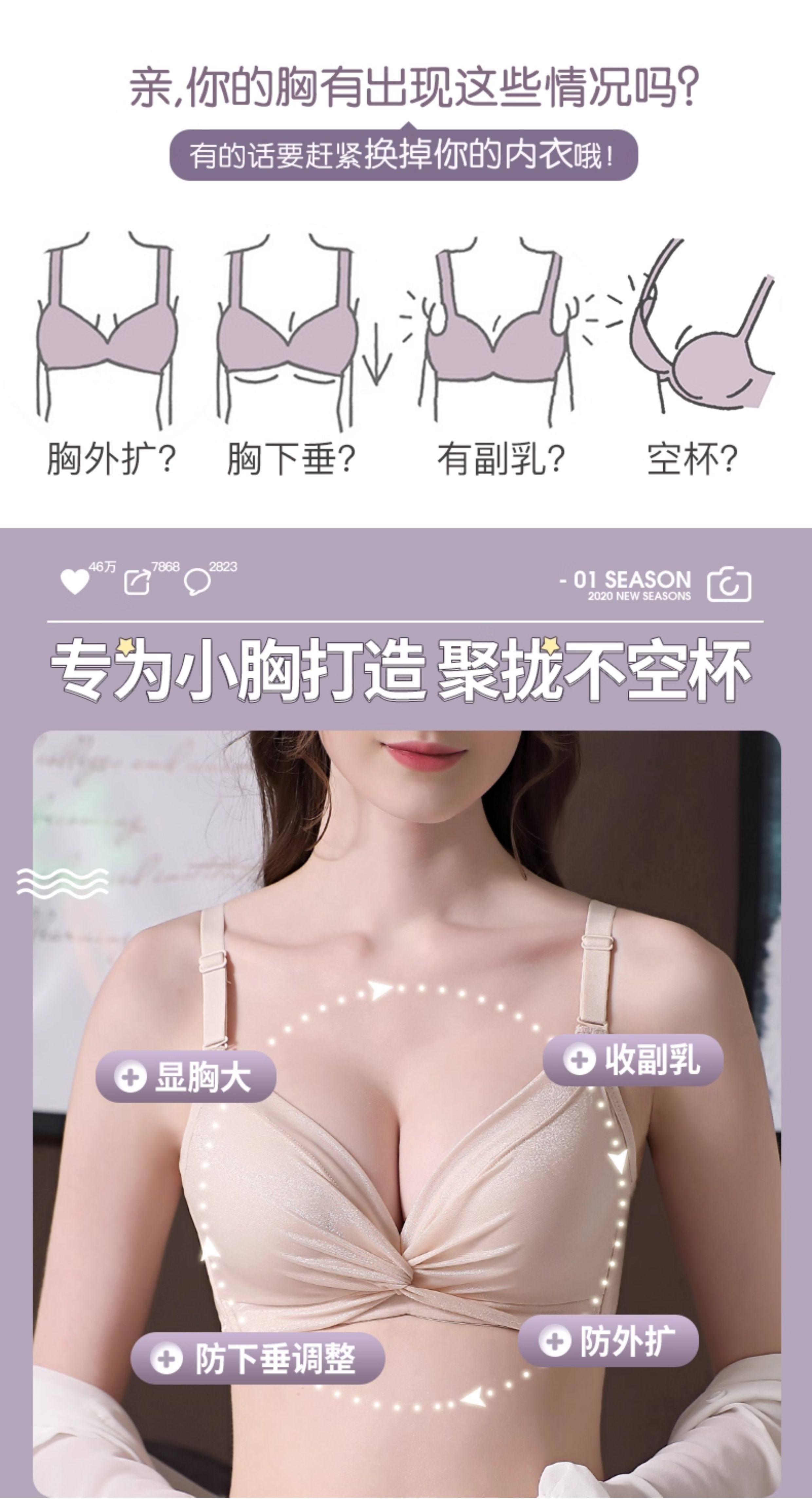 內衣女無鋼圈聚攏加厚小胸胸罩收副乳防下垂平胸專用顯大上托文胸