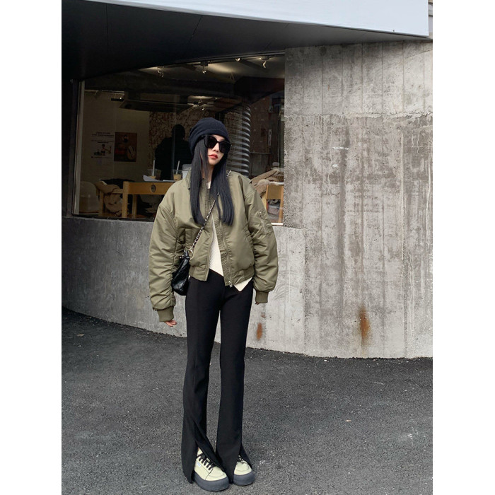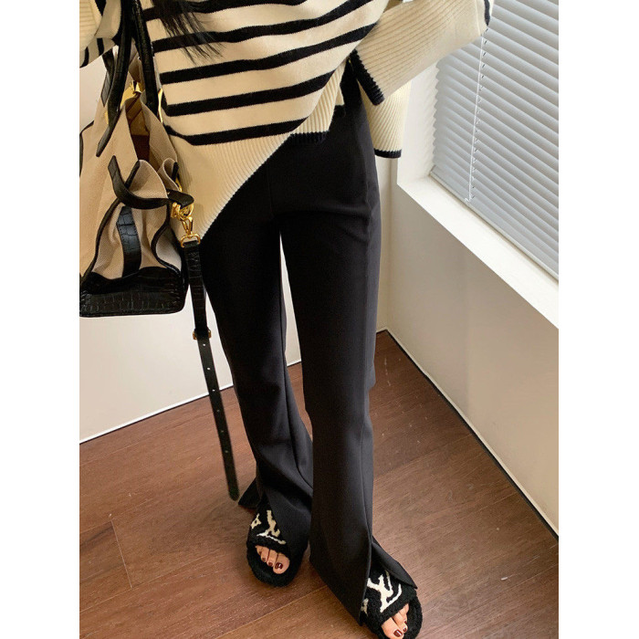 開叉西裝高彈力秋冬加絨2025新款高腰垂感褲子顯瘦休閒微喇叭褲女