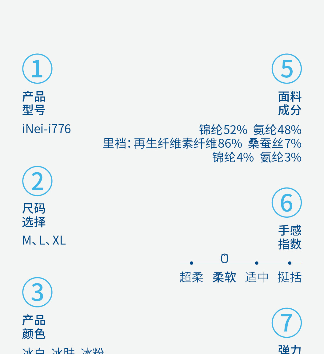 | 襠部材質成分 | 再生纖維素纖維86% 桑蠶絲7% 聚氨酯彈性纖維(氨綸)4% 聚醯胺纖維(錦綸)3% |