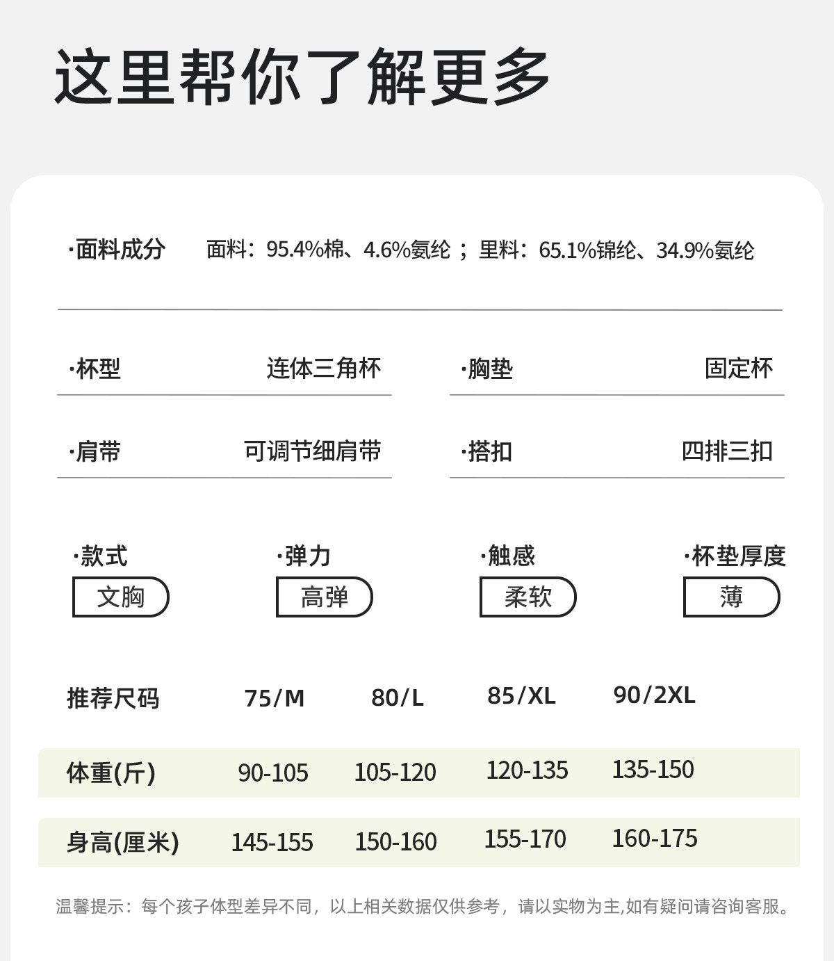 | 罩杯厚度 | 中模杯 |