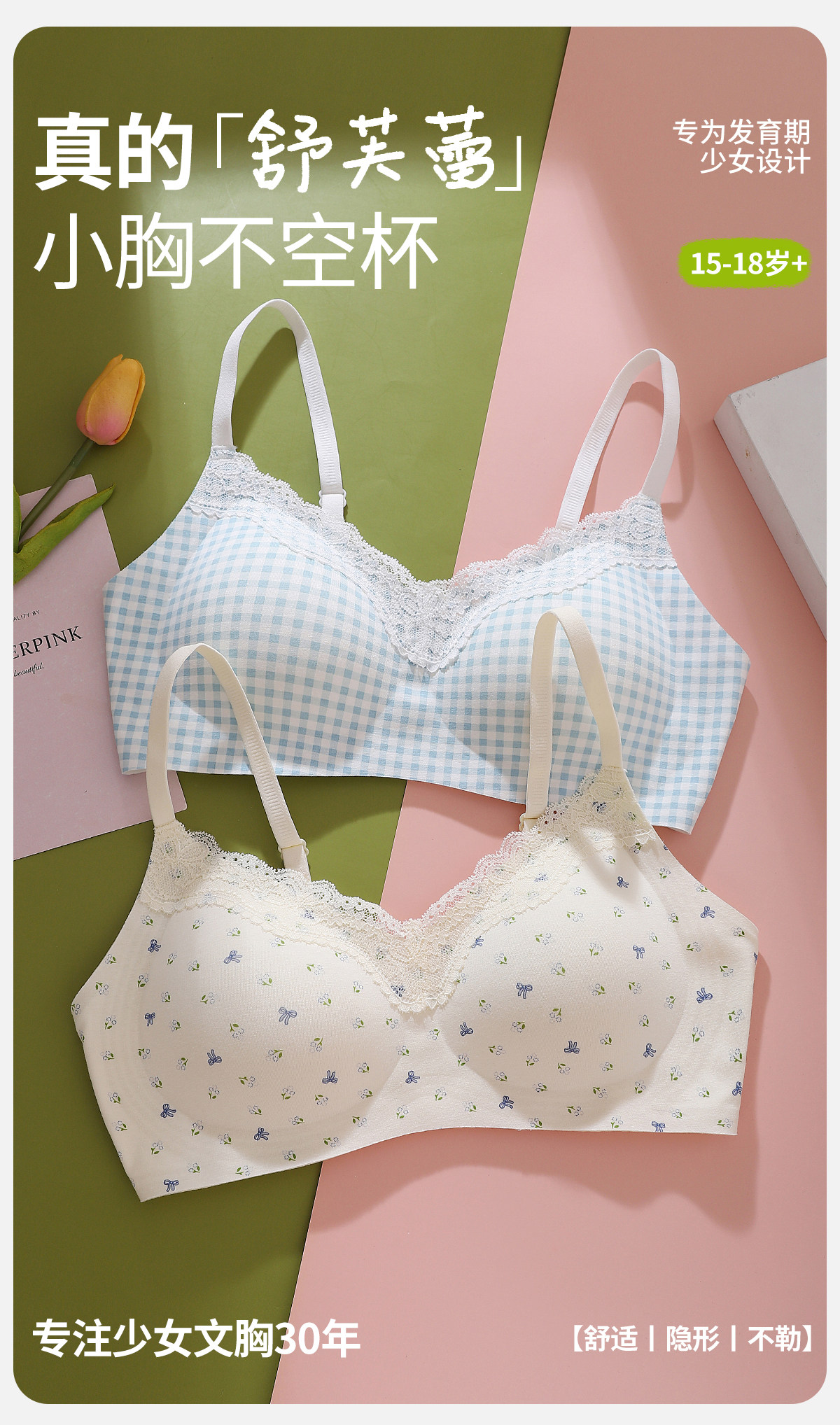 舒芙蕾純棉少女內衣高中青少年文胸18嵗發育期學生定型杯聚攏胸罩