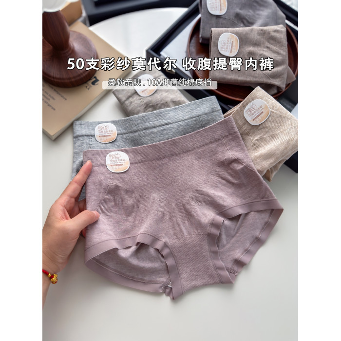 莫代爾內褲女10A純棉抑菌襠2025新款中高腰小平角收腹提臀三角褲