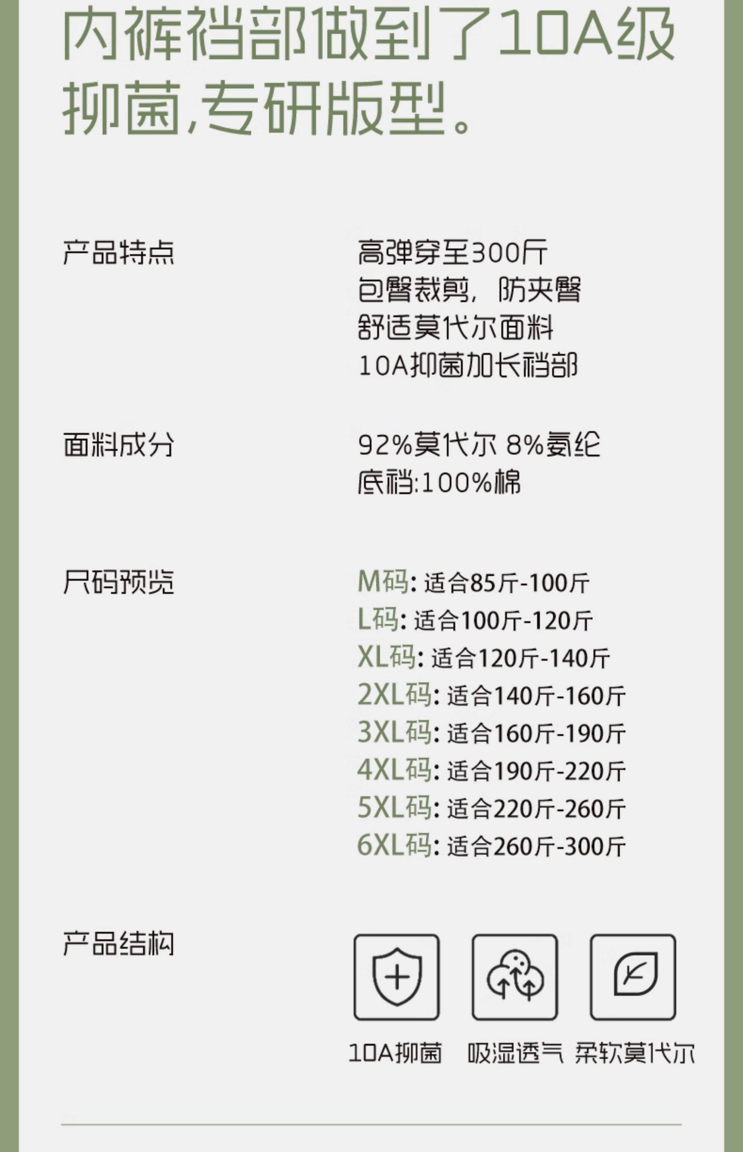 | 襠部材質成分 | 莫代爾纖維(莫代爾)92% 聚氨酯彈性纖維(氨綸)8% |