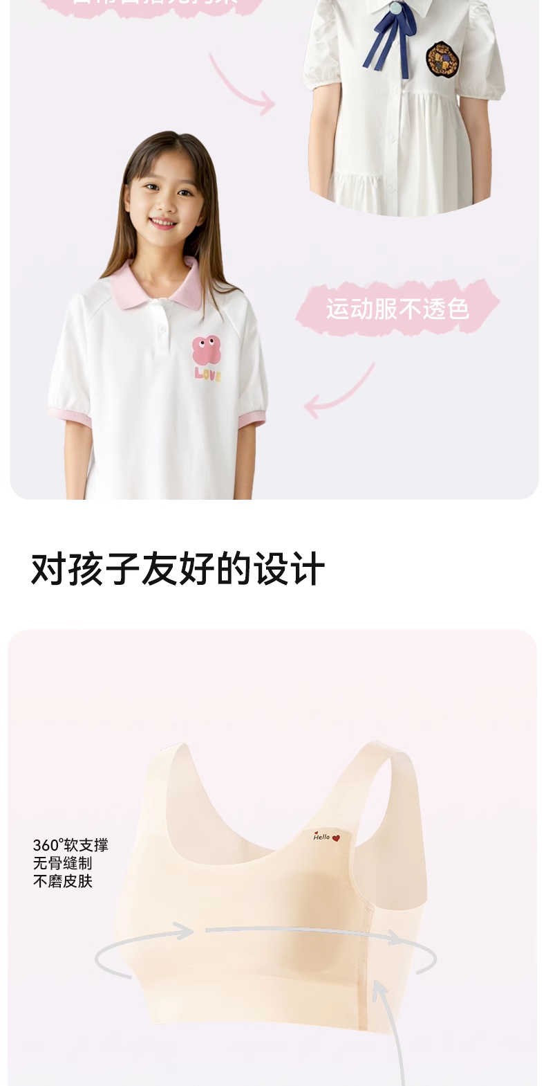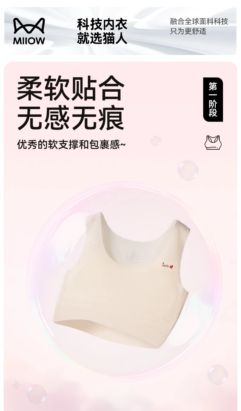 貓人兒童女童背心一階段高彈棉氨無痕吸濕透氣少女文胸發育內衣
