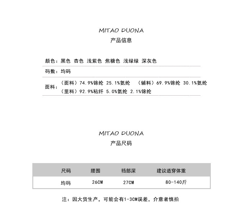 | 襠部材質成分 | 粘膠纖維(粘纖)92.9% 聚氨酯彈性纖維(氨綸)5% 聚醯胺纖維(錦綸)2.1% |