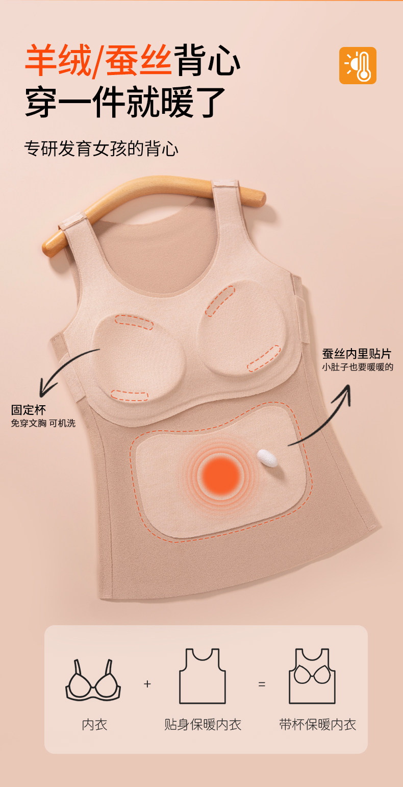 【抖音同款】發育期少女保暖內衣初中高中學生秋冬季大童女孩背心