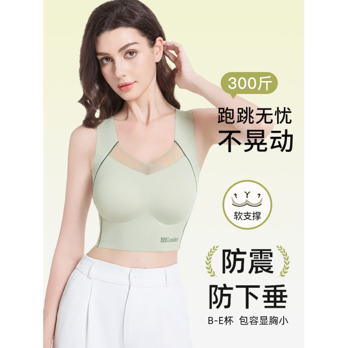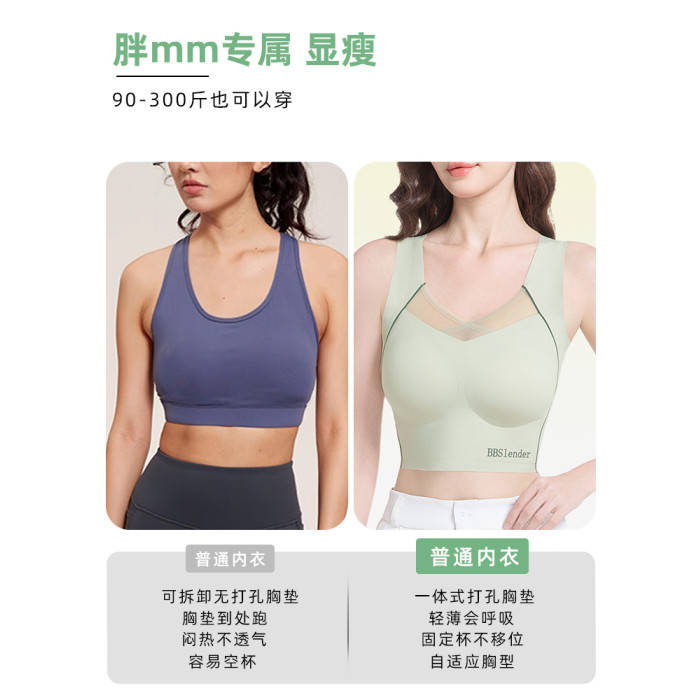纖小象內衣胖mm女大碼美背大胸顯小無痕運動文胸一體背心女士胸罩