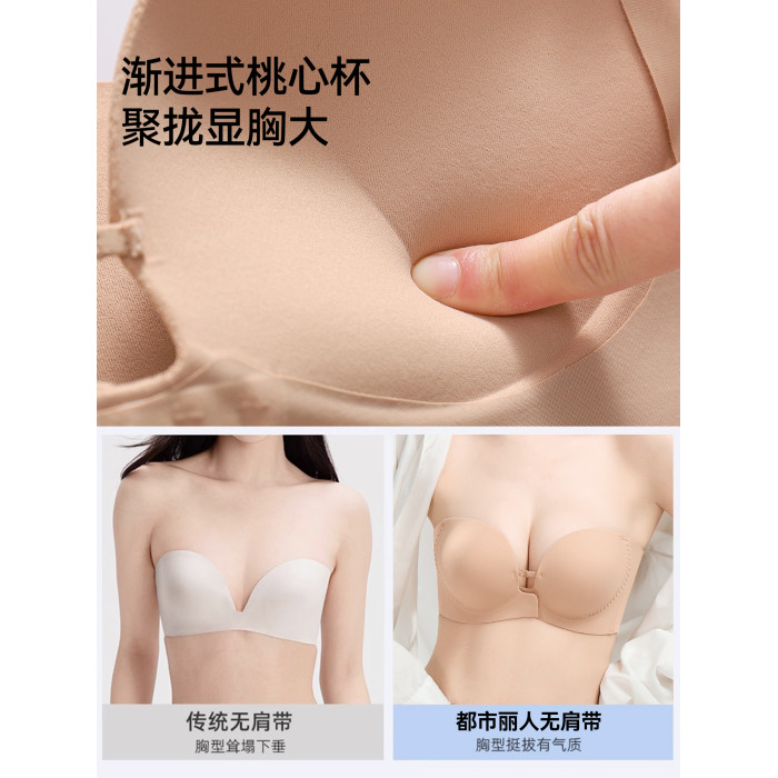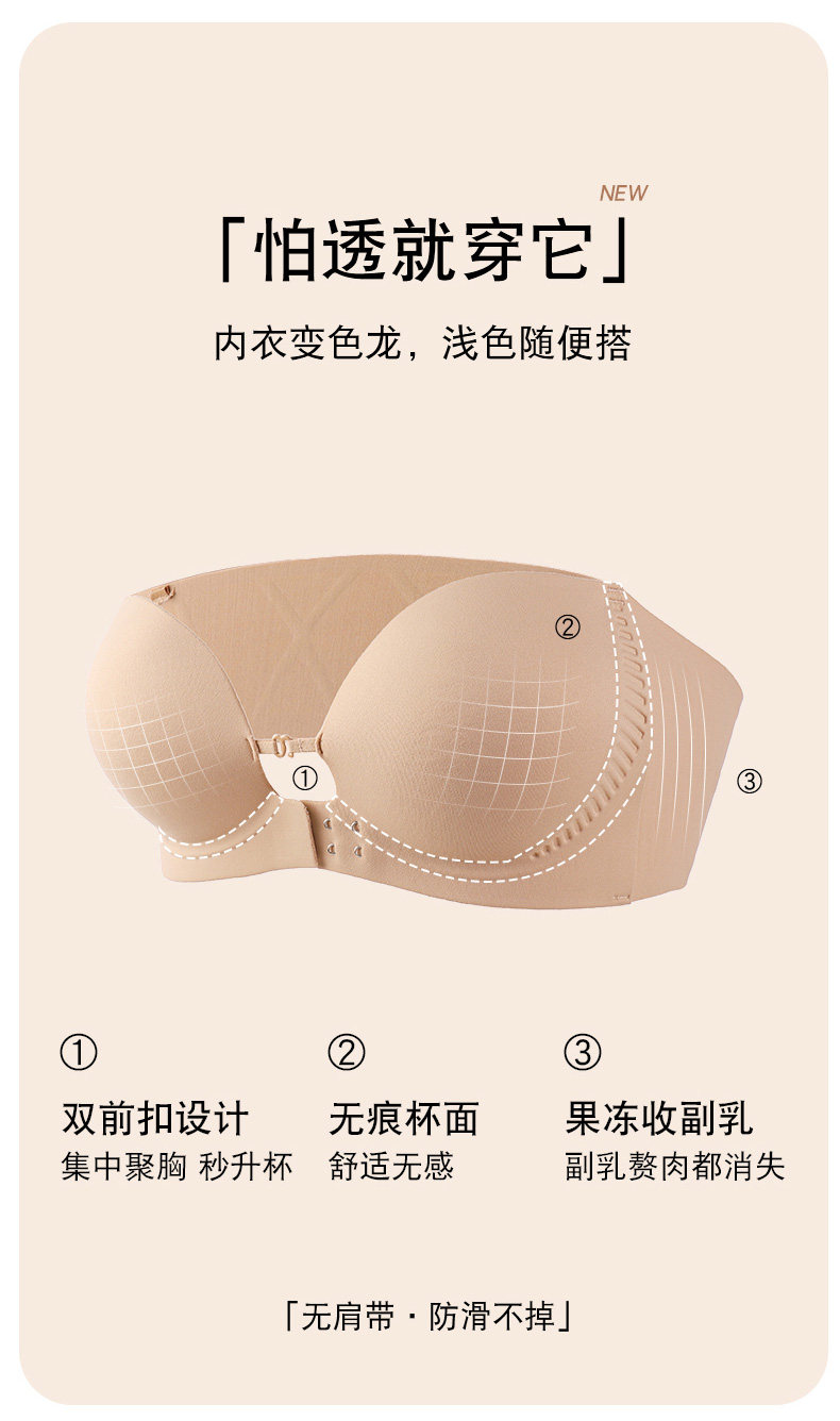 都市麗人前釦抹胸粉底液內衣女小胸聚攏顯大隱形防滑無肩帶文胸罩