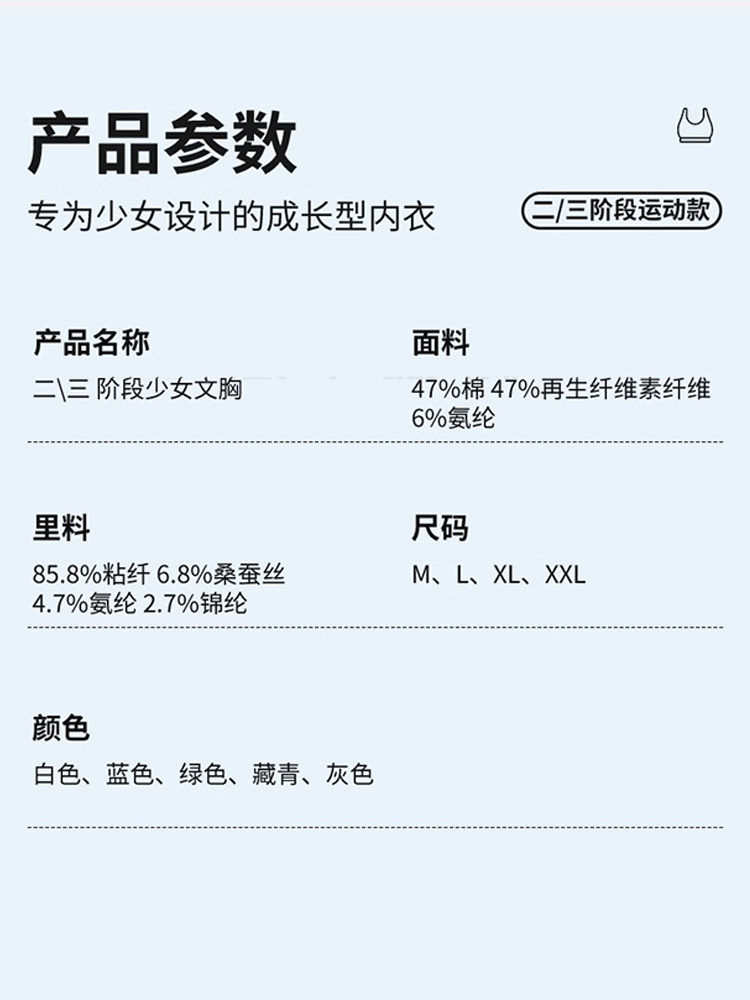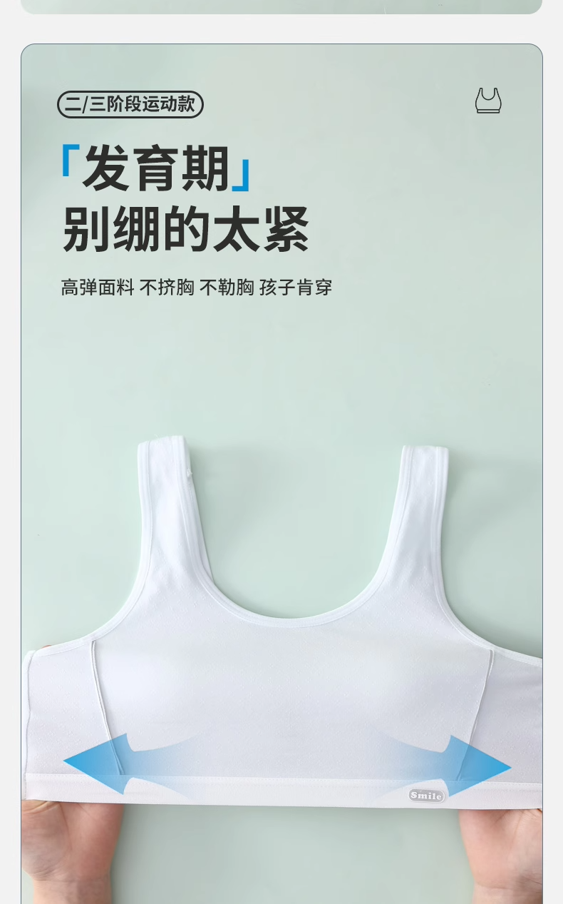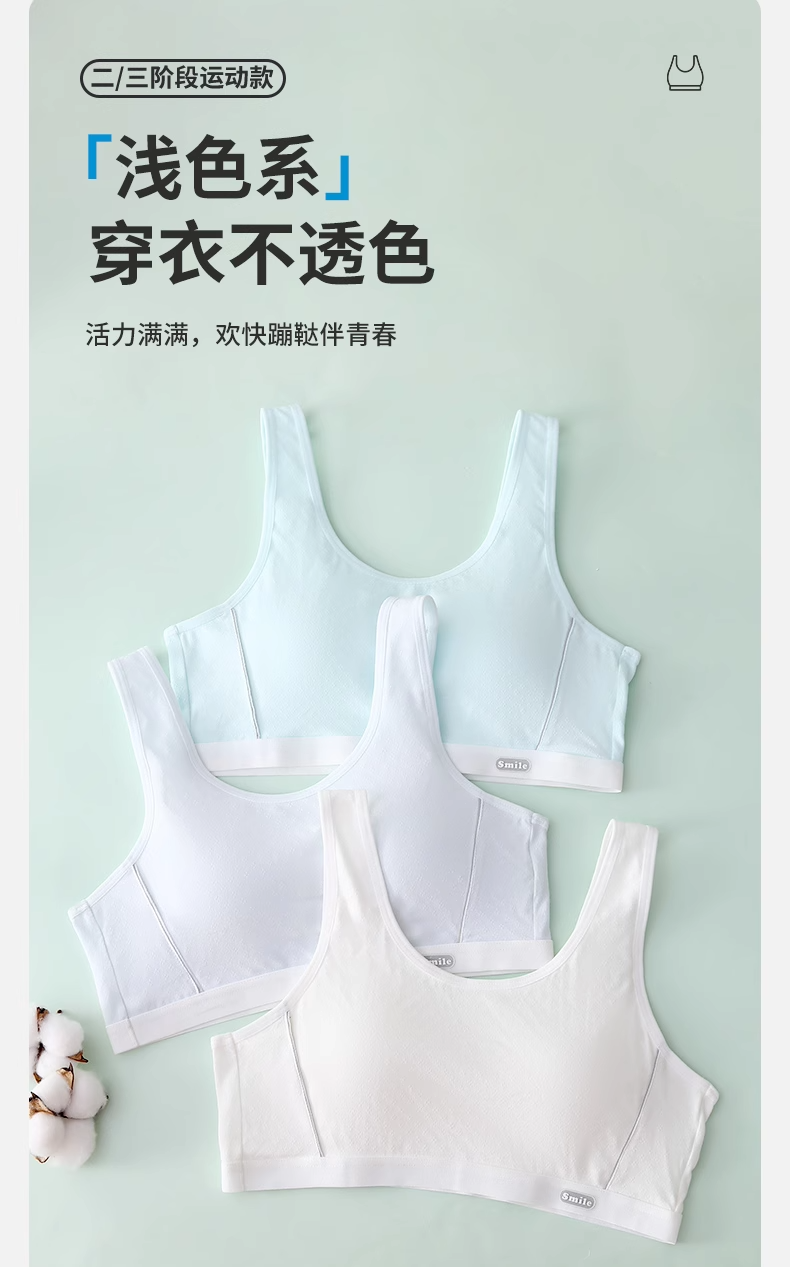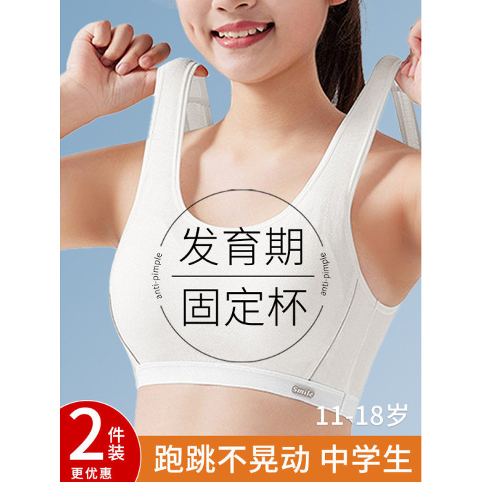 全棉純棉少女文胸初中女高中生運動防震背心女生青春期女孩發育期