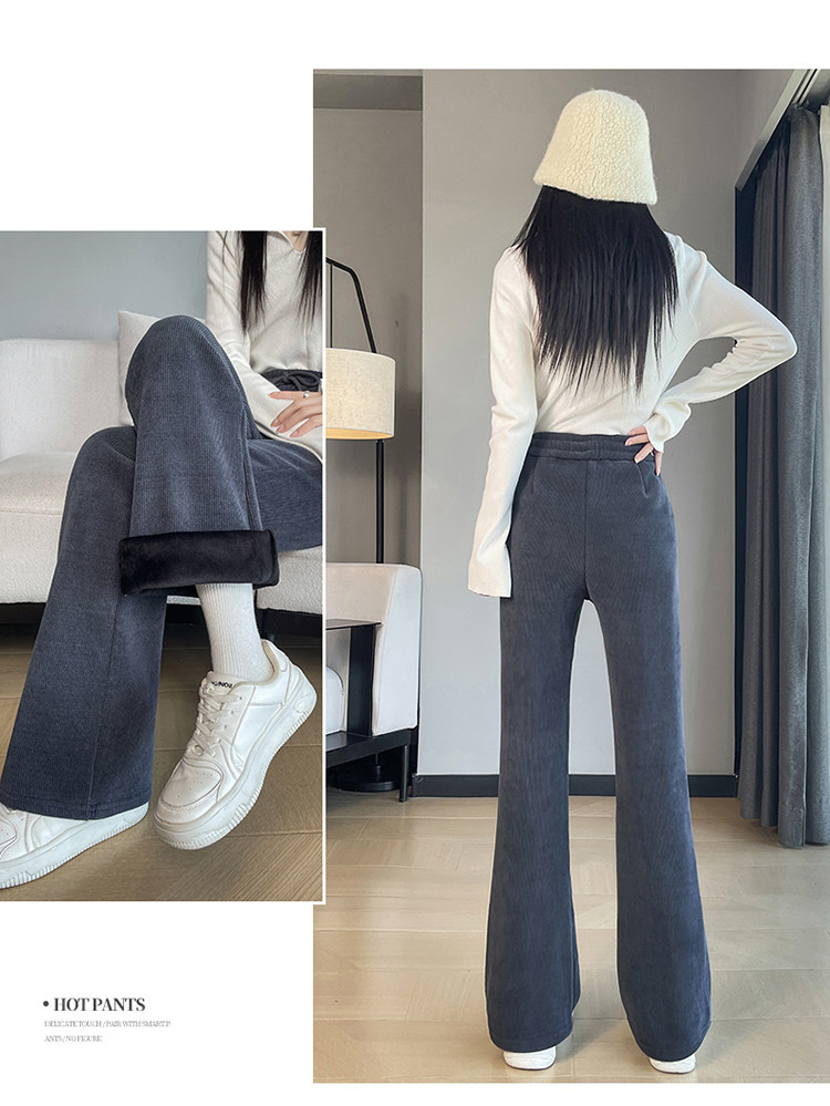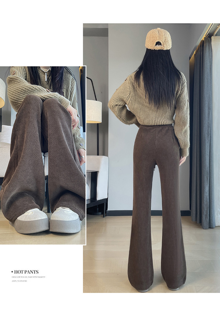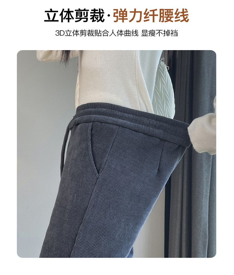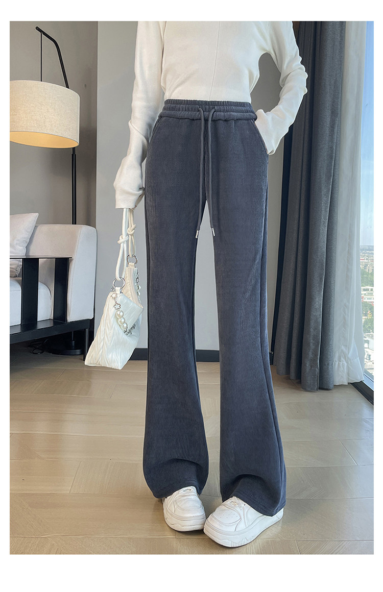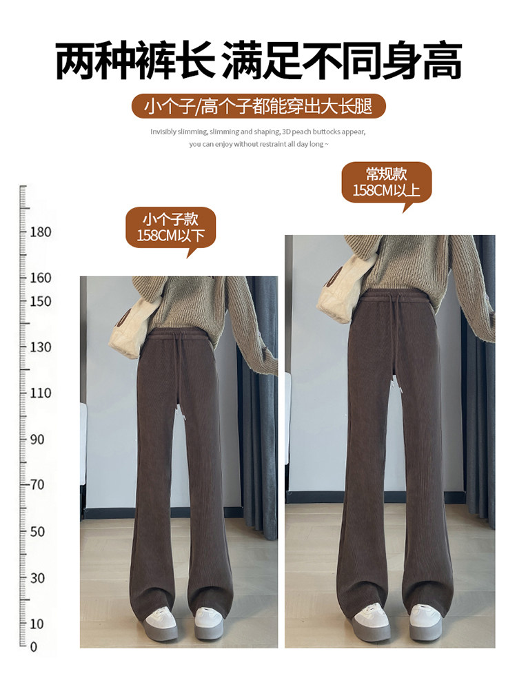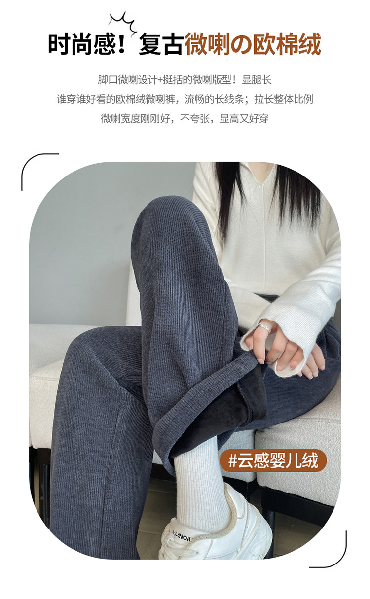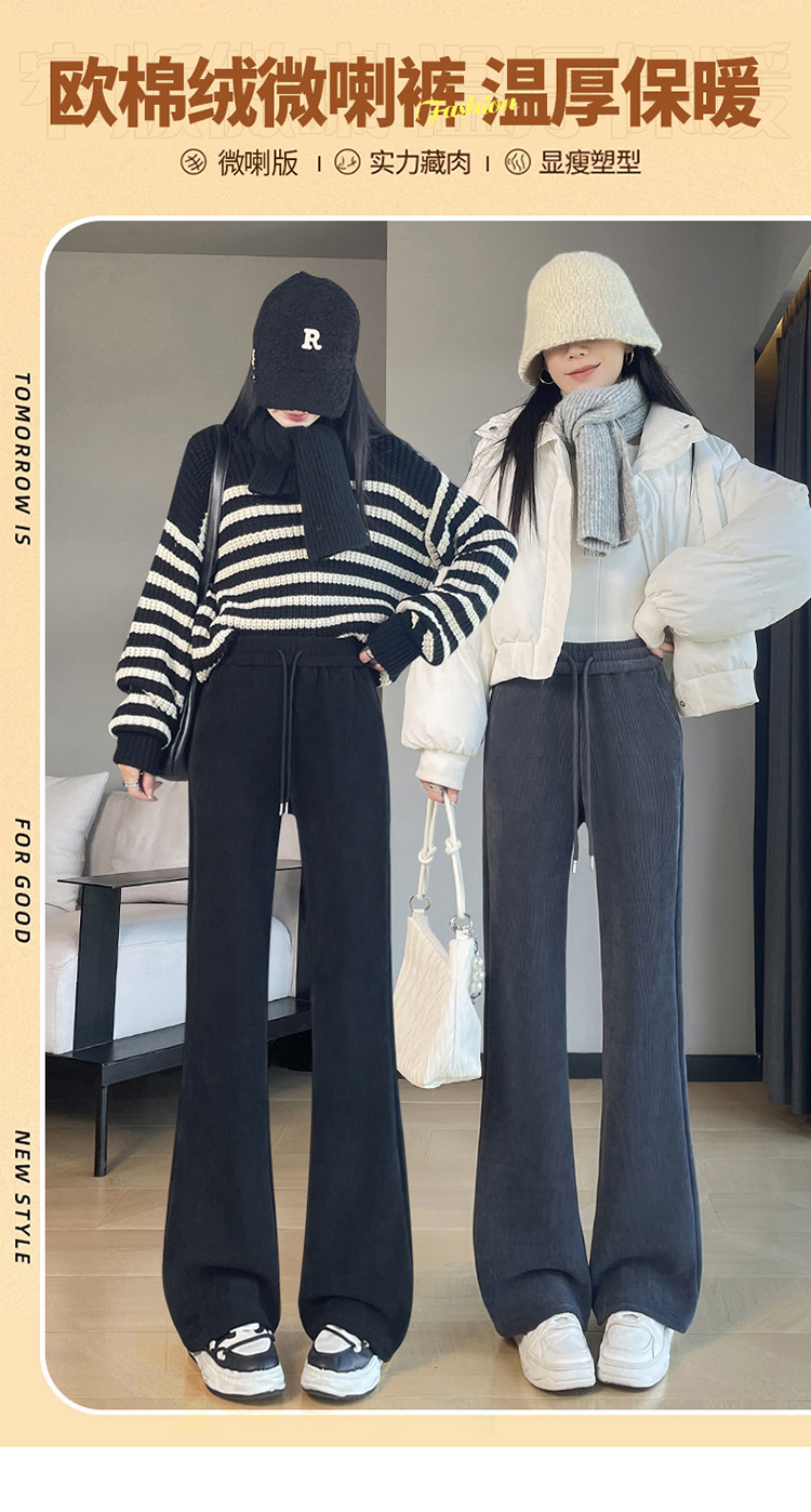 燈芯絨微喇叭褲女秋冬外穿加絨加厚小個子九分魚尾褲細條絨松緊腰
