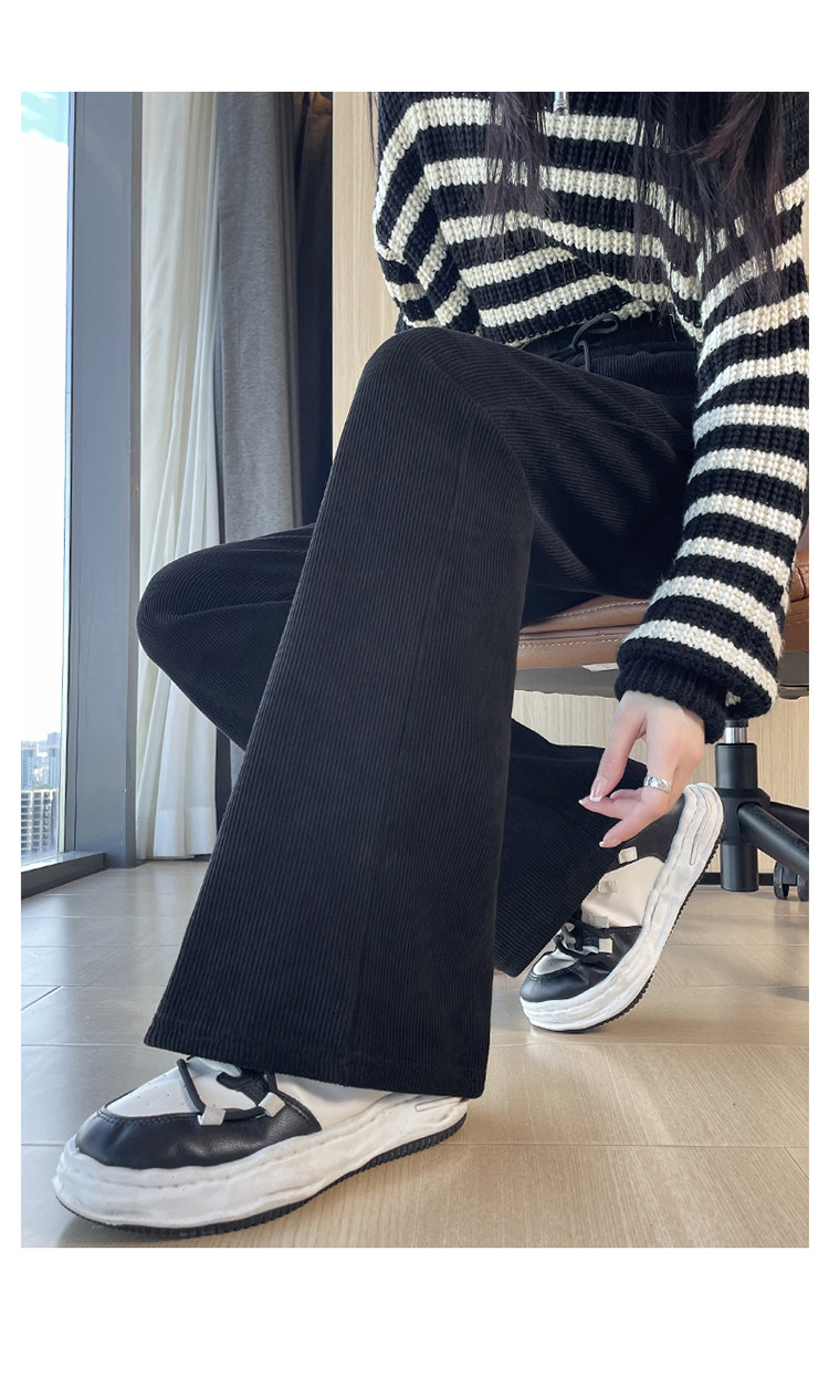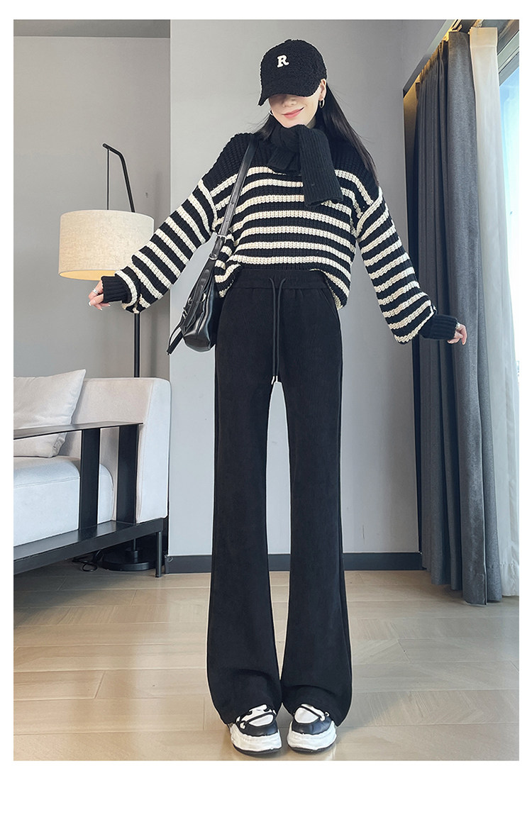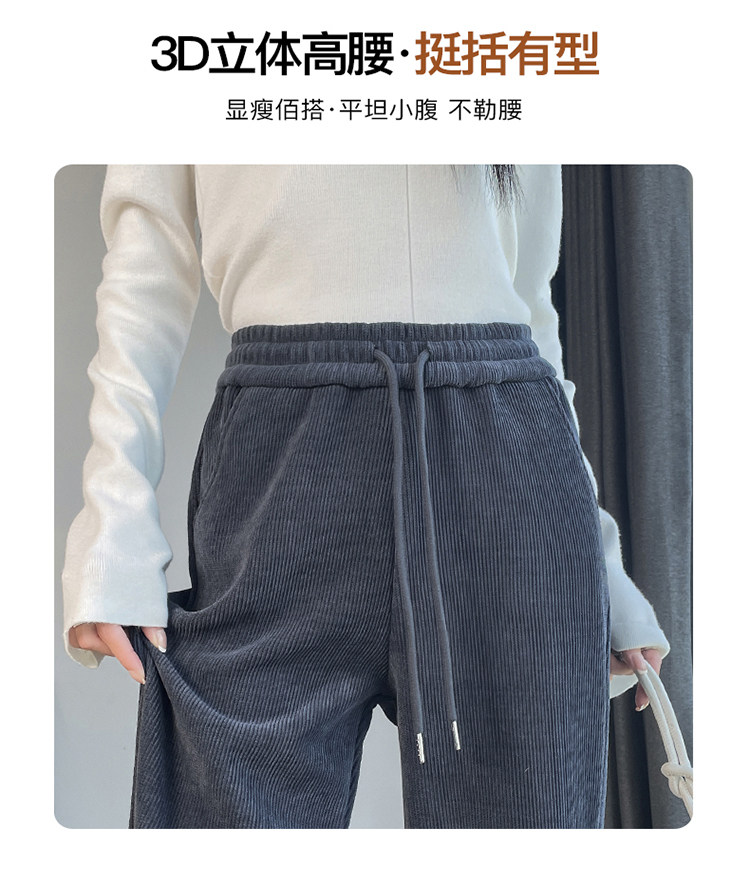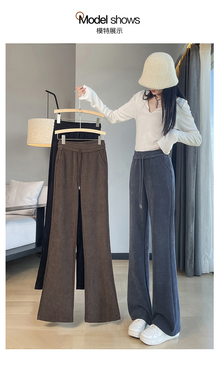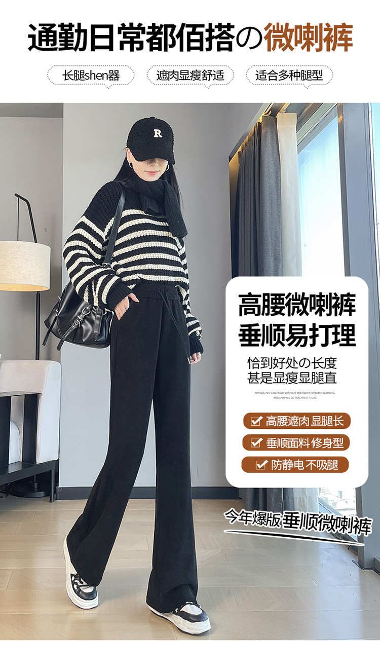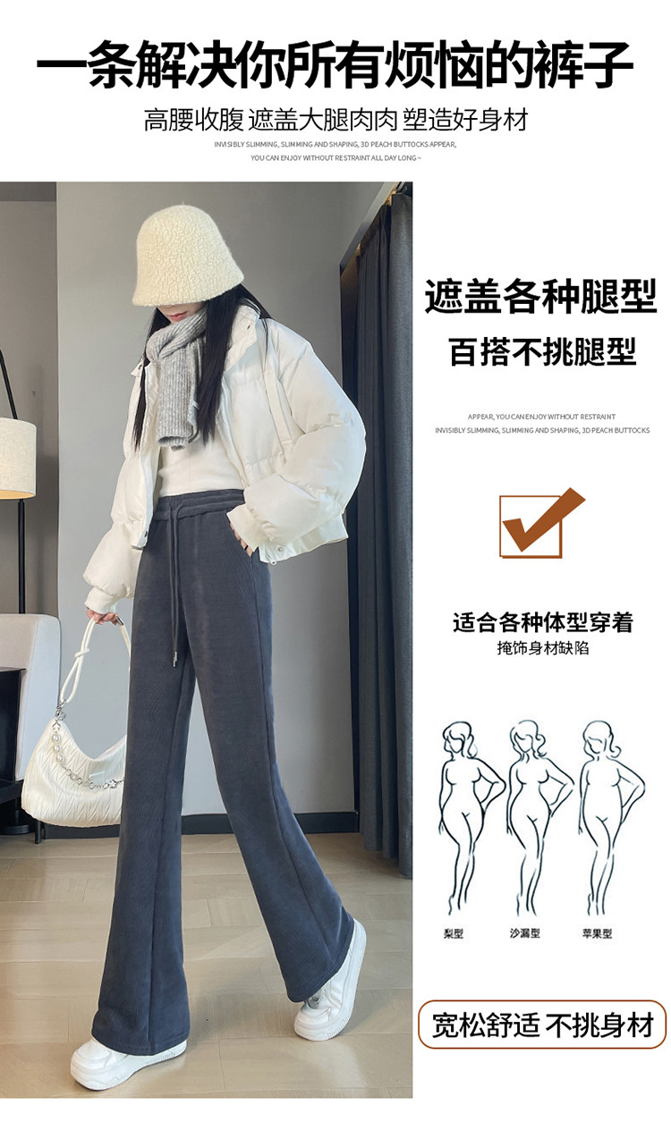 燈芯絨微喇叭褲女秋冬外穿加絨加厚小個子九分魚尾褲細條絨松緊腰
