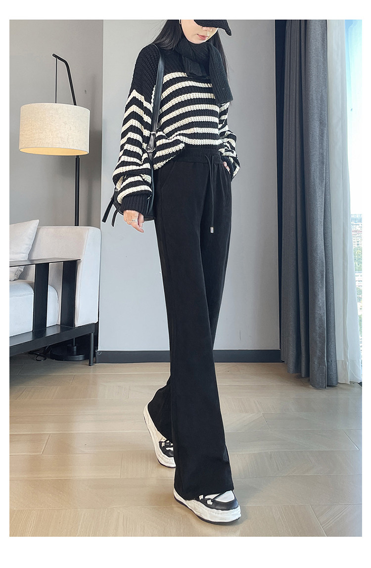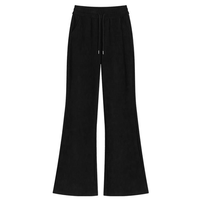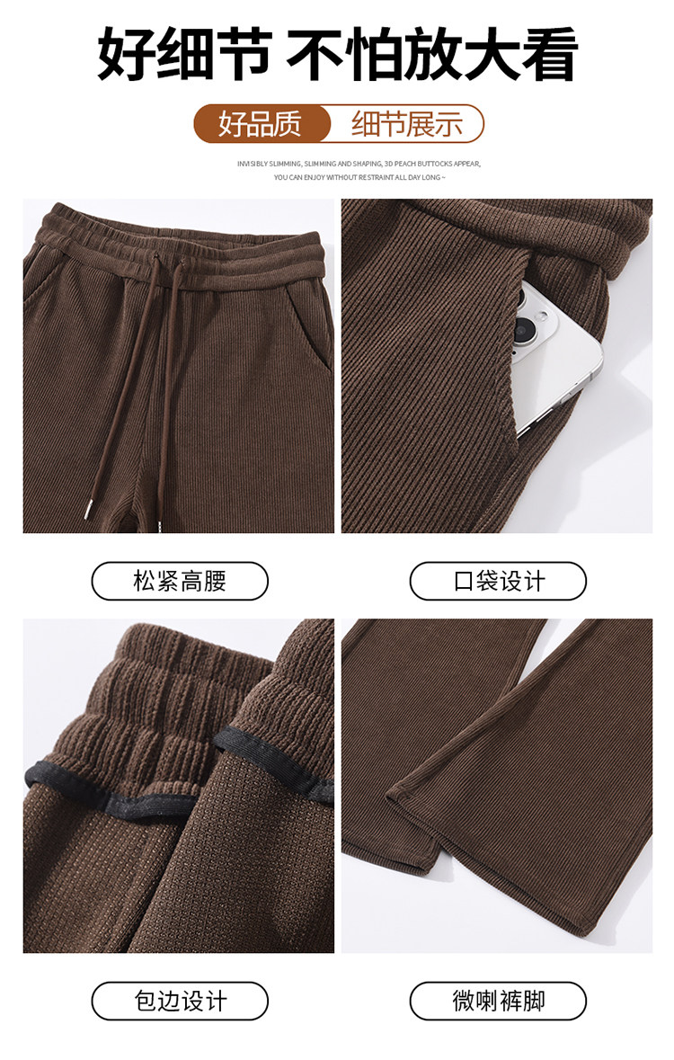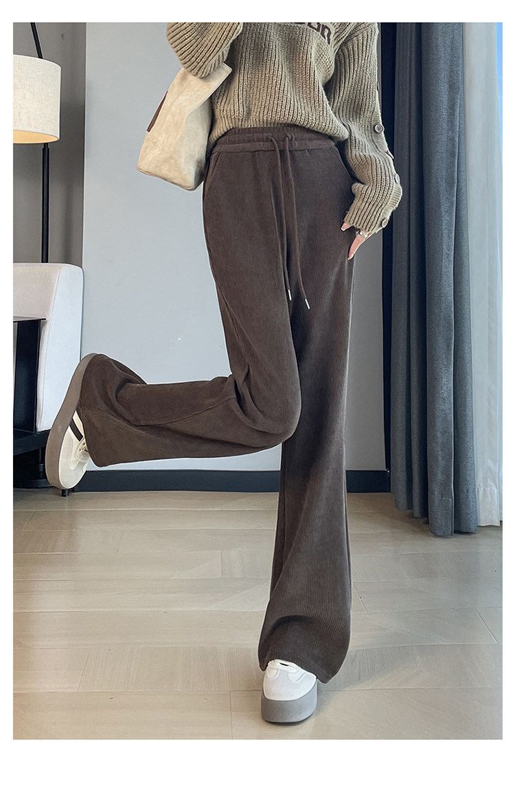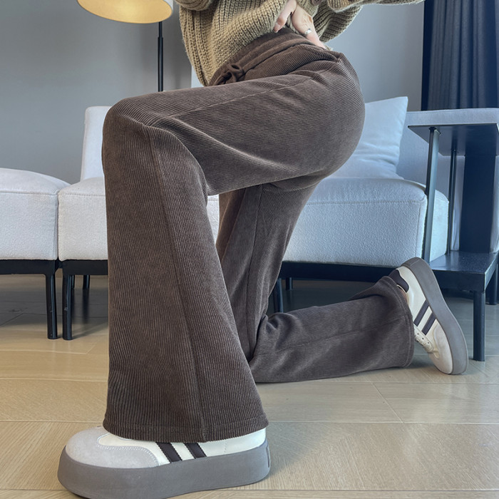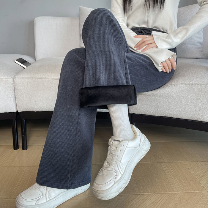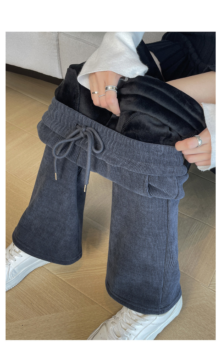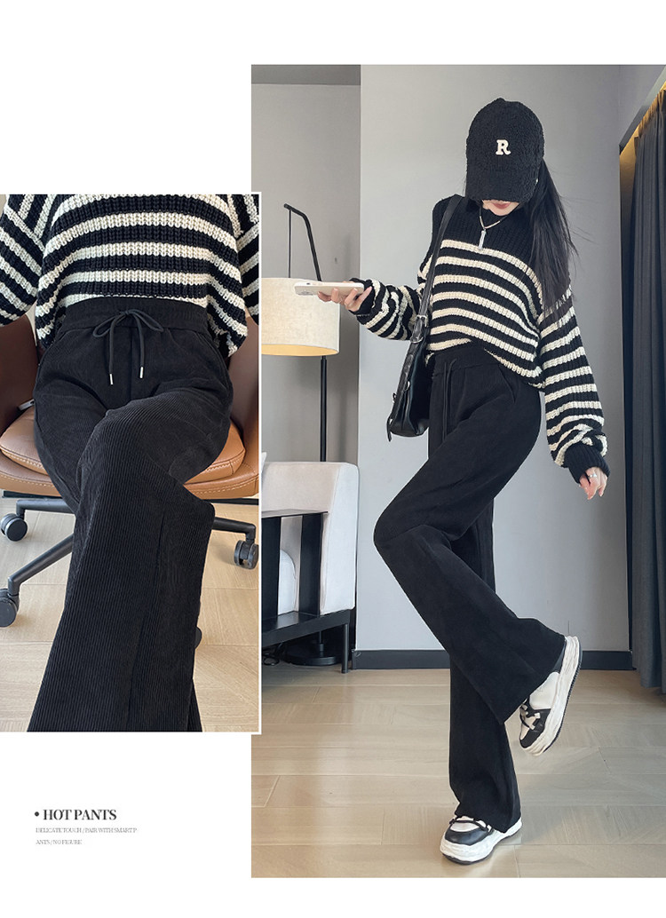 燈芯絨微喇叭褲女秋冬外穿加絨加厚小個子九分魚尾褲細條絨松緊腰