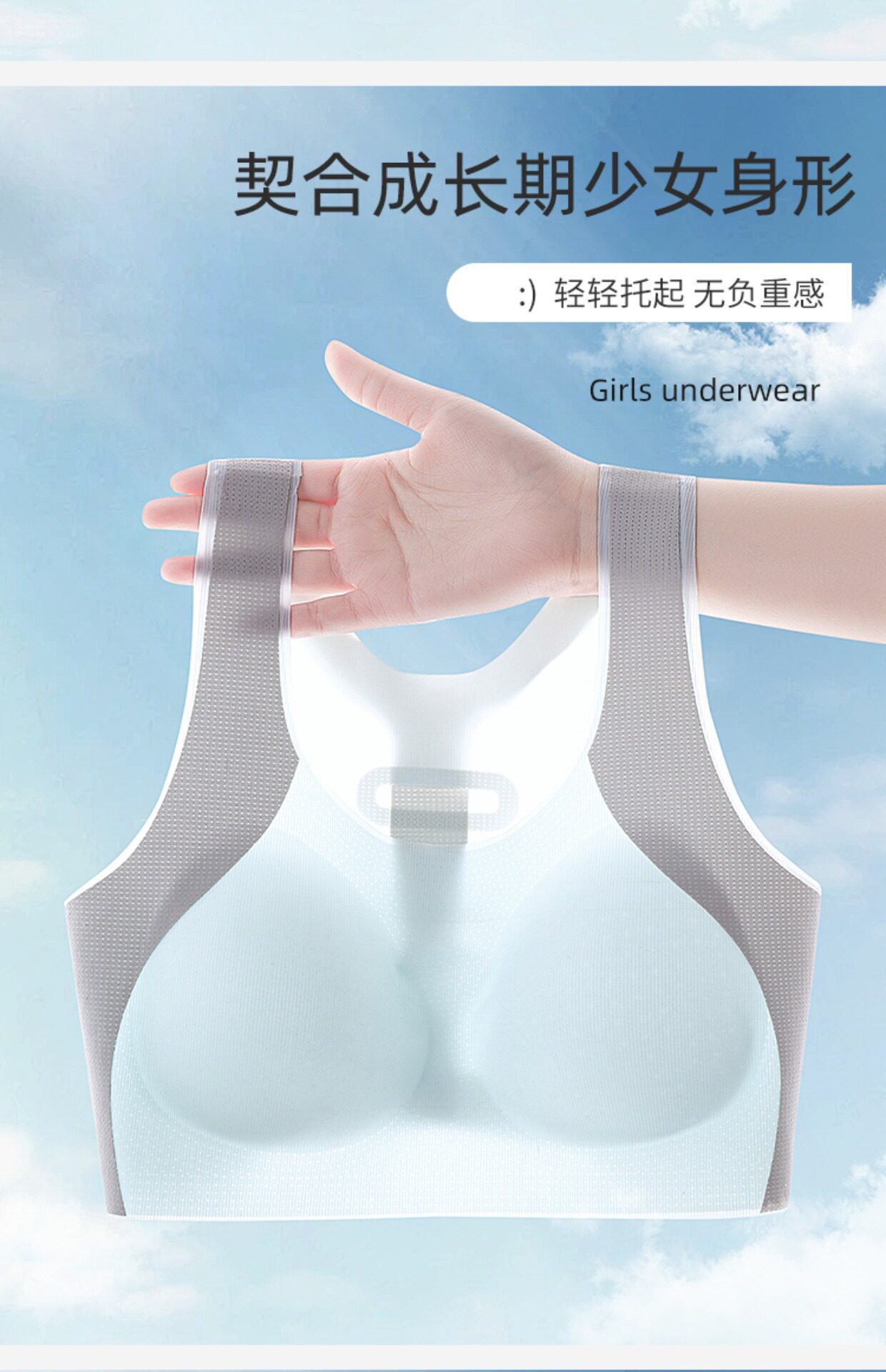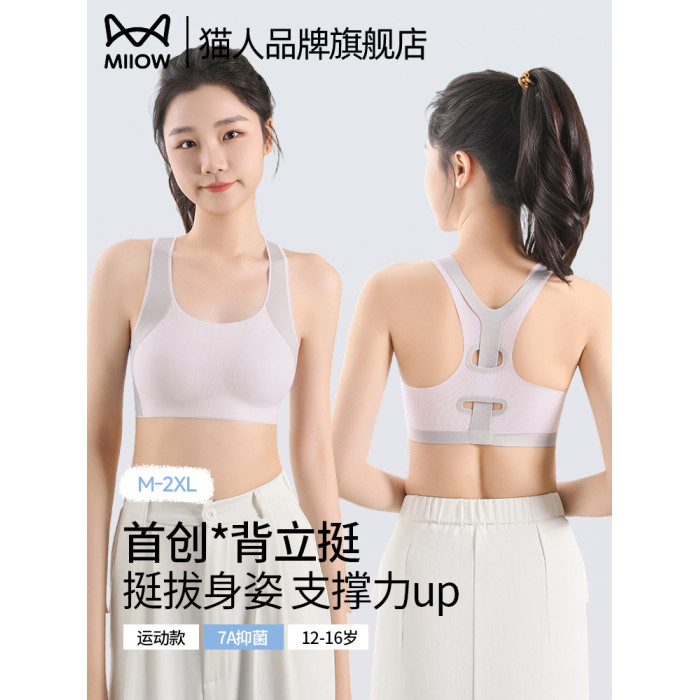 貓人少女內衣初中高中學生青春發育期無痕雲感文胸女運動防震背心