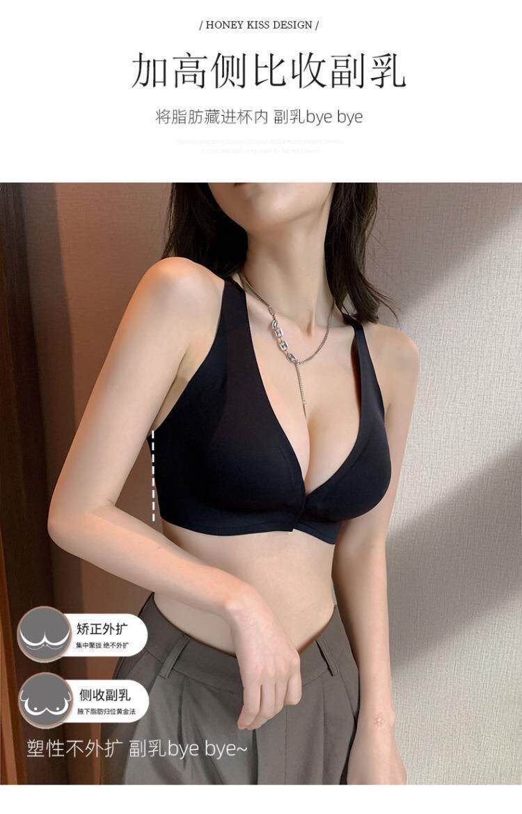 前釦文胸無鋼圈聚攏一片式新款美背無痕內衣女小胸收副乳防下垂