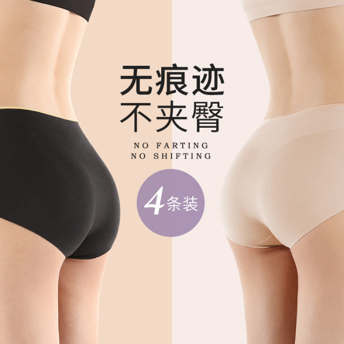 無痕內褲女士運動健身冰絲款低腰中腰純棉檔蠶絲檔土抗菌提臀平角