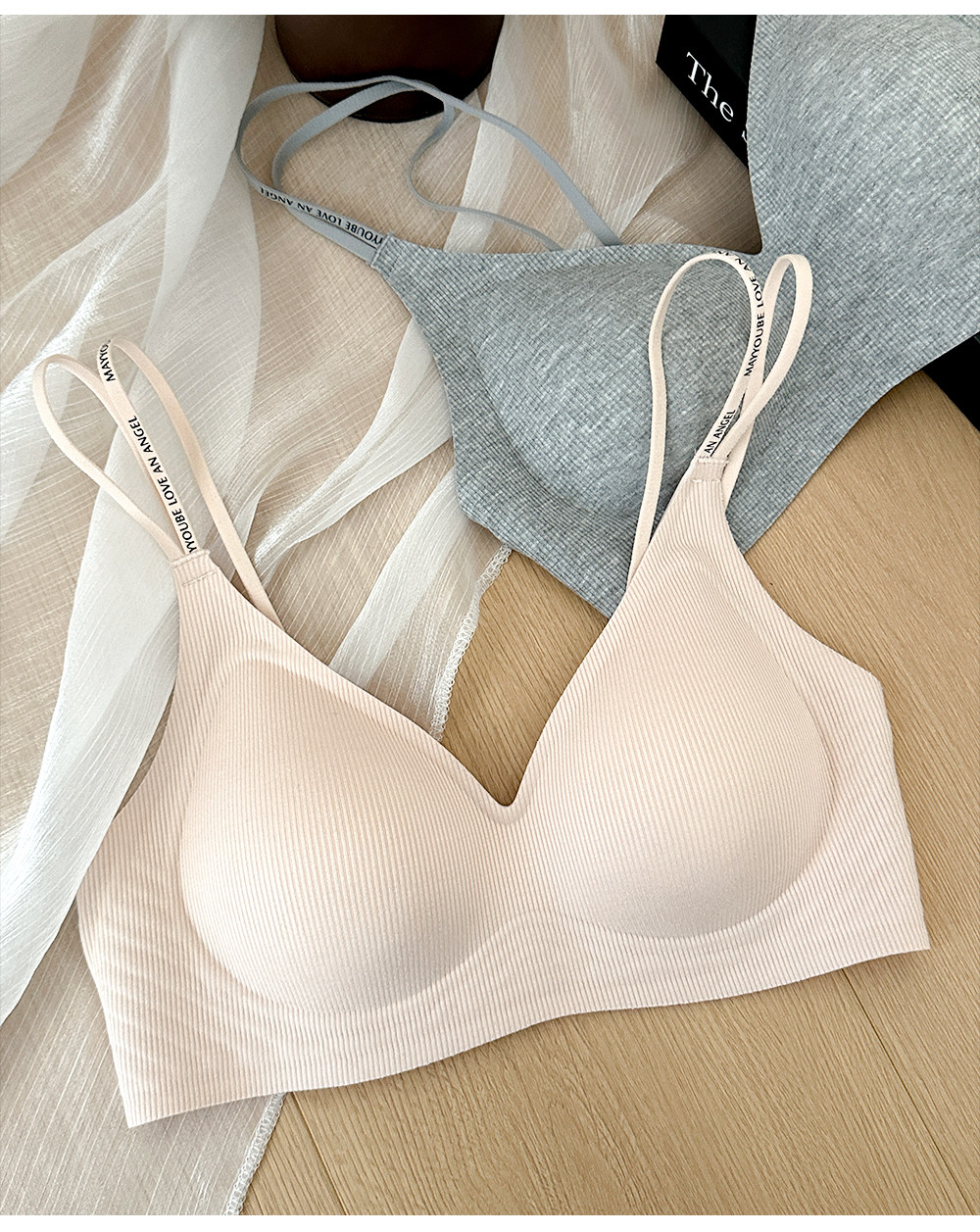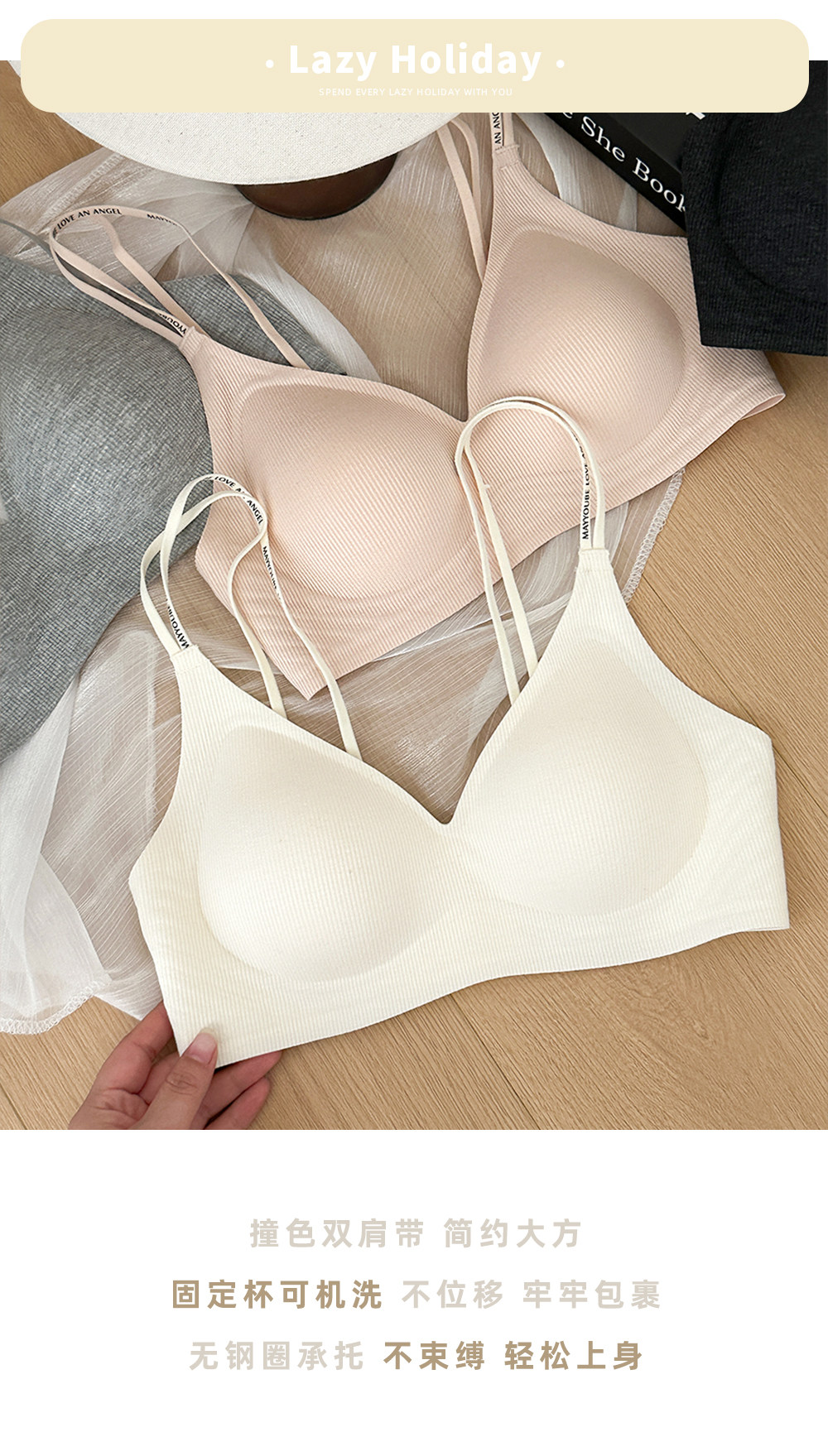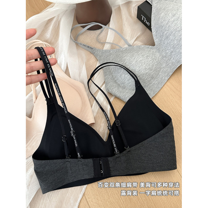 極簡撞色雙肩帶美背內衣女2025新款女士胸罩無鋼圈文胸運動防下垂
