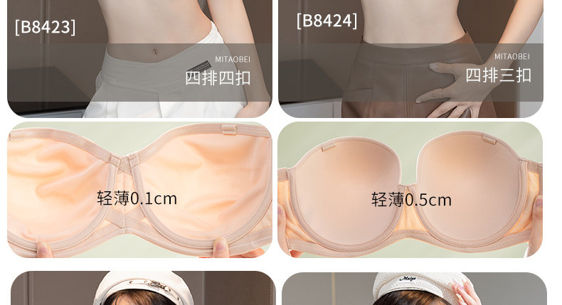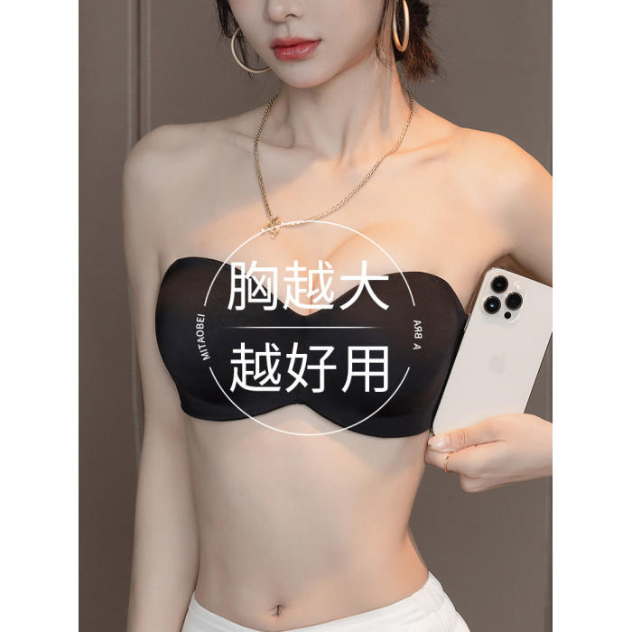夏季超薄無肩帶內衣大胸顯小防滑大碼抹胸式隱形黑色文胸罩吊帶用
