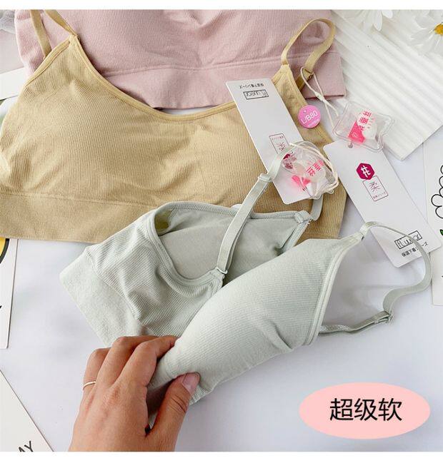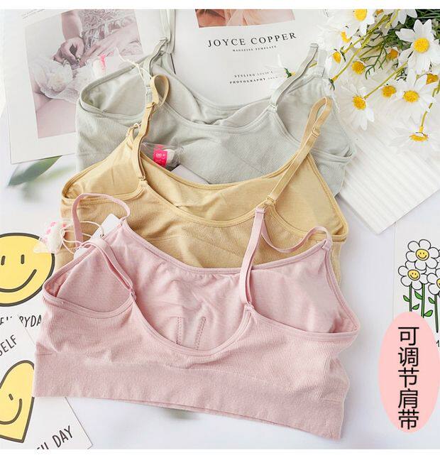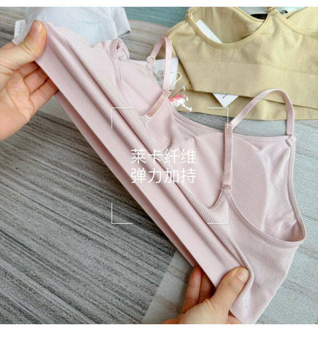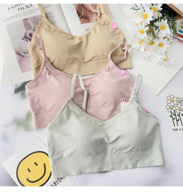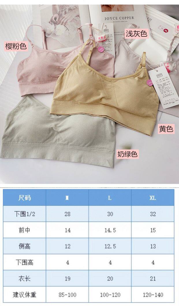 薄款超軟透氣瑜珈文胸運動無鋼圈少女抹胸吊帶高中學生背心PAFHL