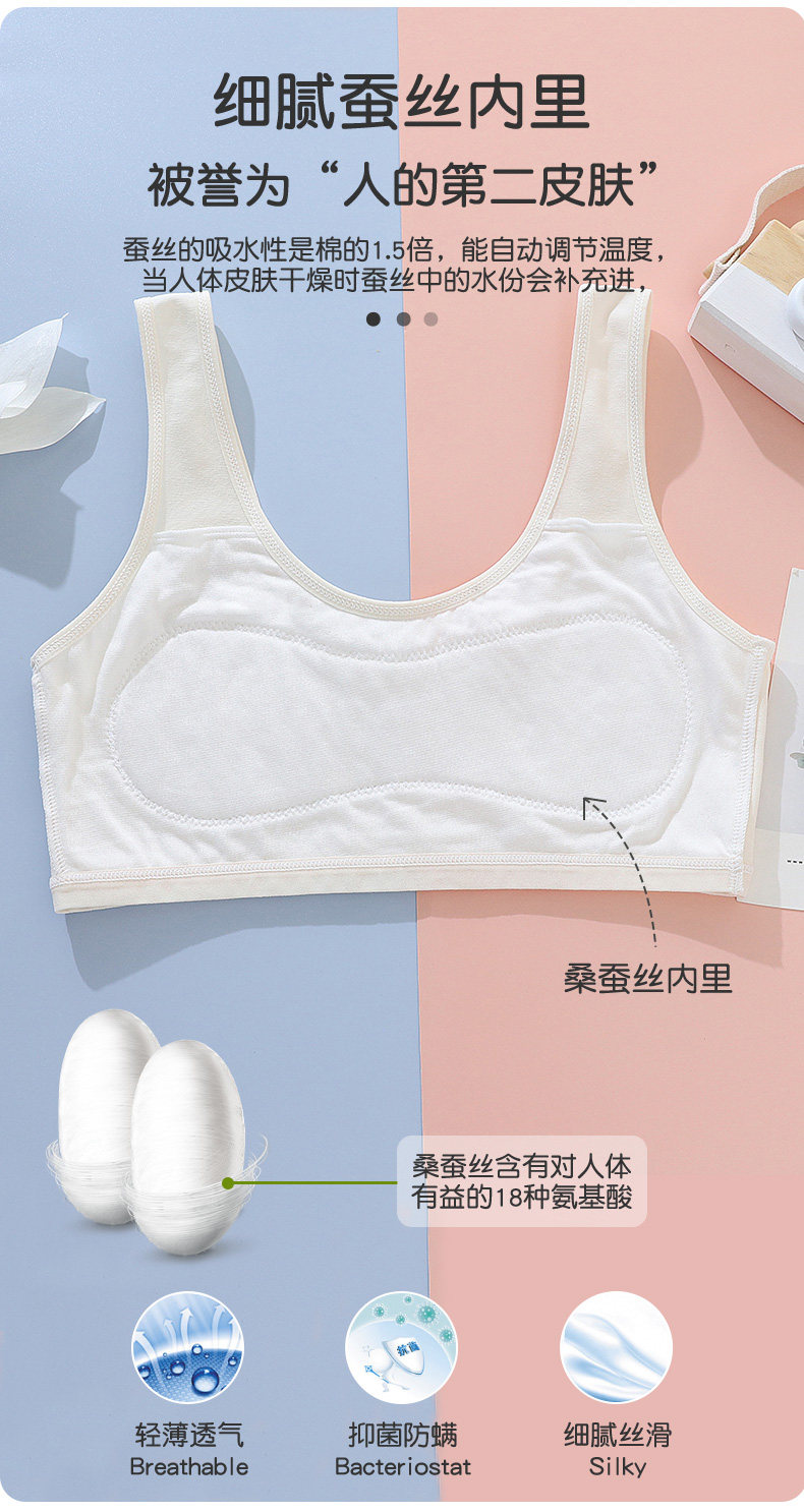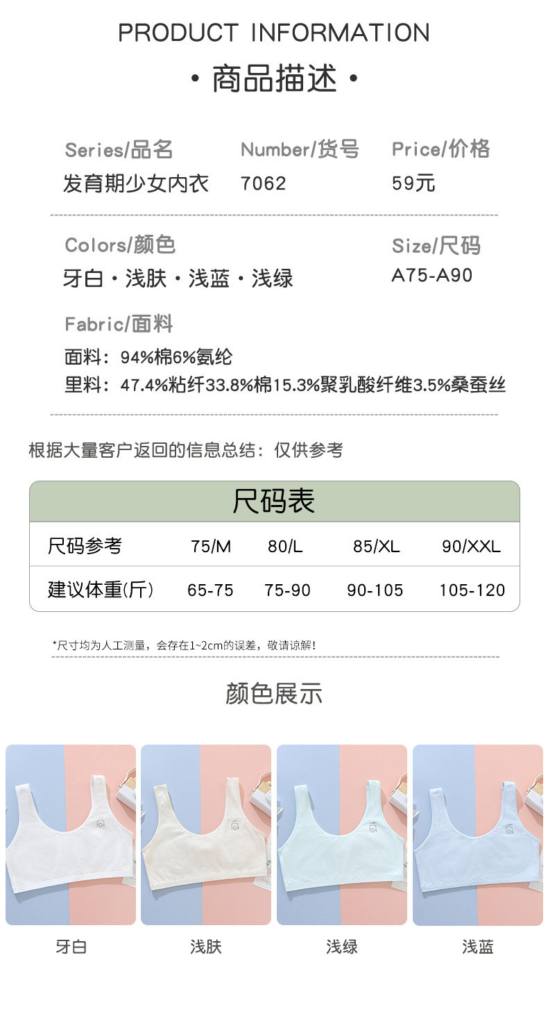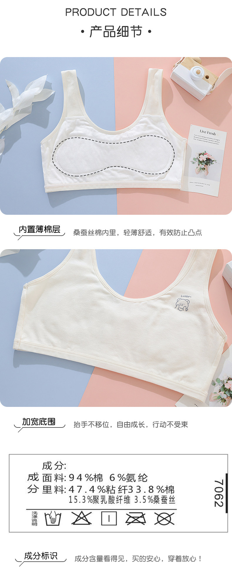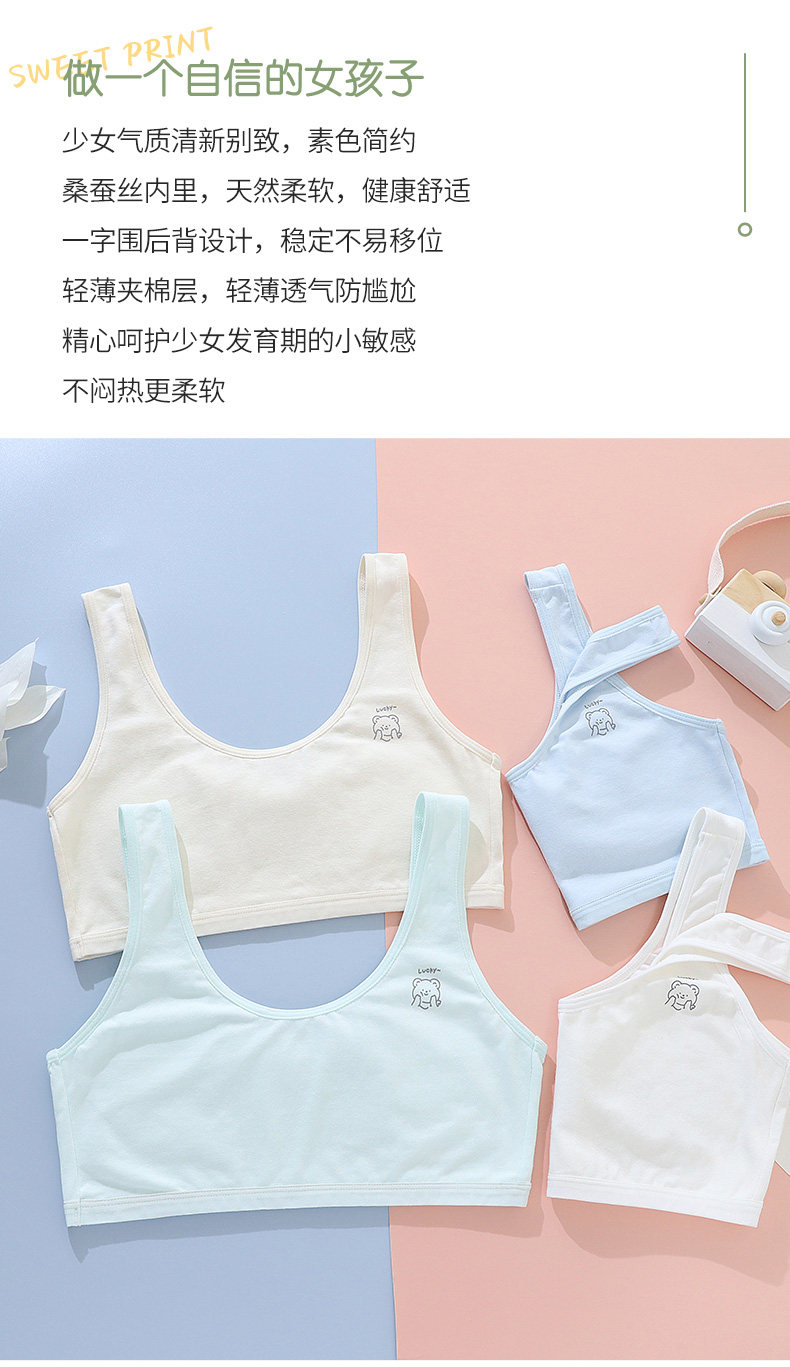 夏季薄款女童背心發育期小學生一二階段10女孩8-14嵗兒童純棉內衣