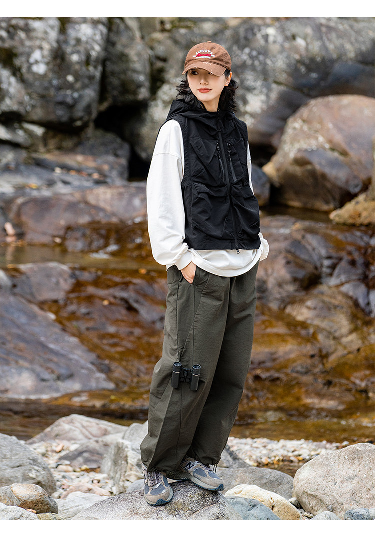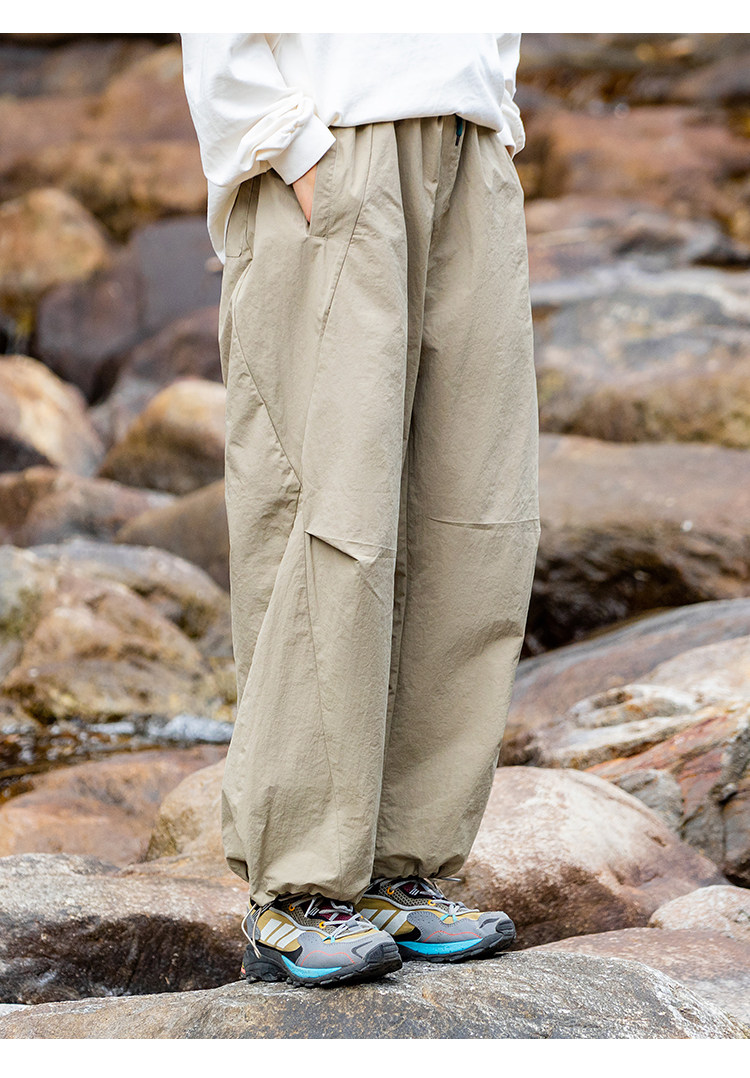 魚不渴 春秋戶外沖鋒褲女輕薄透氣工裝褲防風防水速乾束腳褲男女