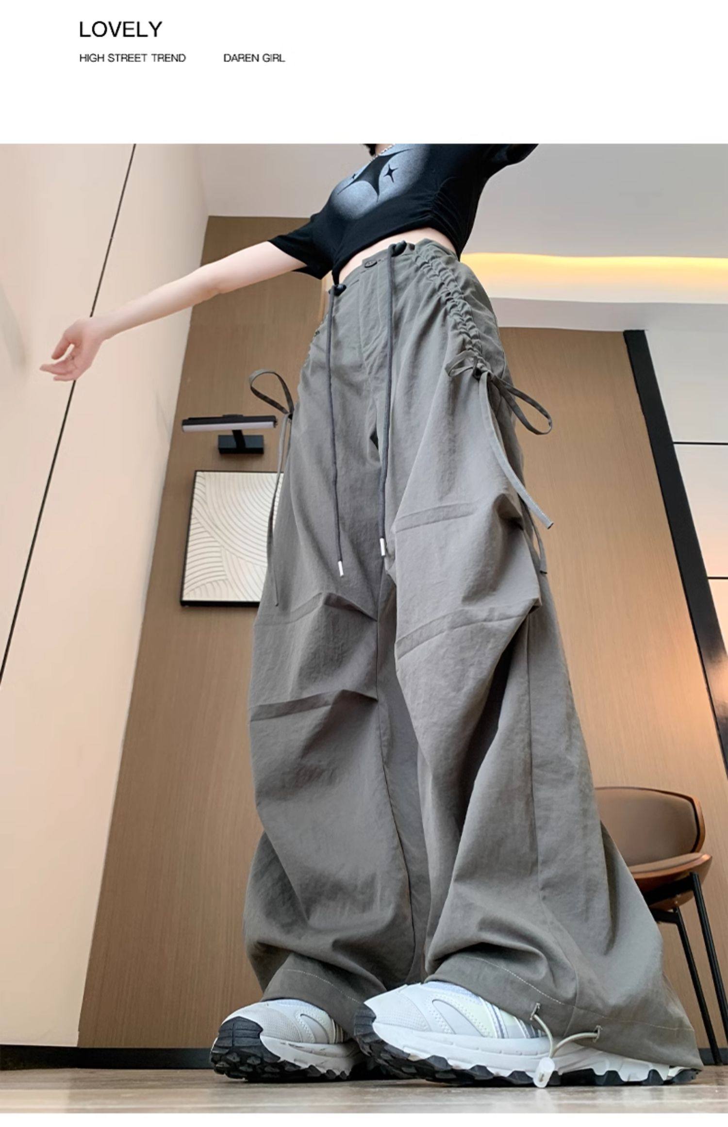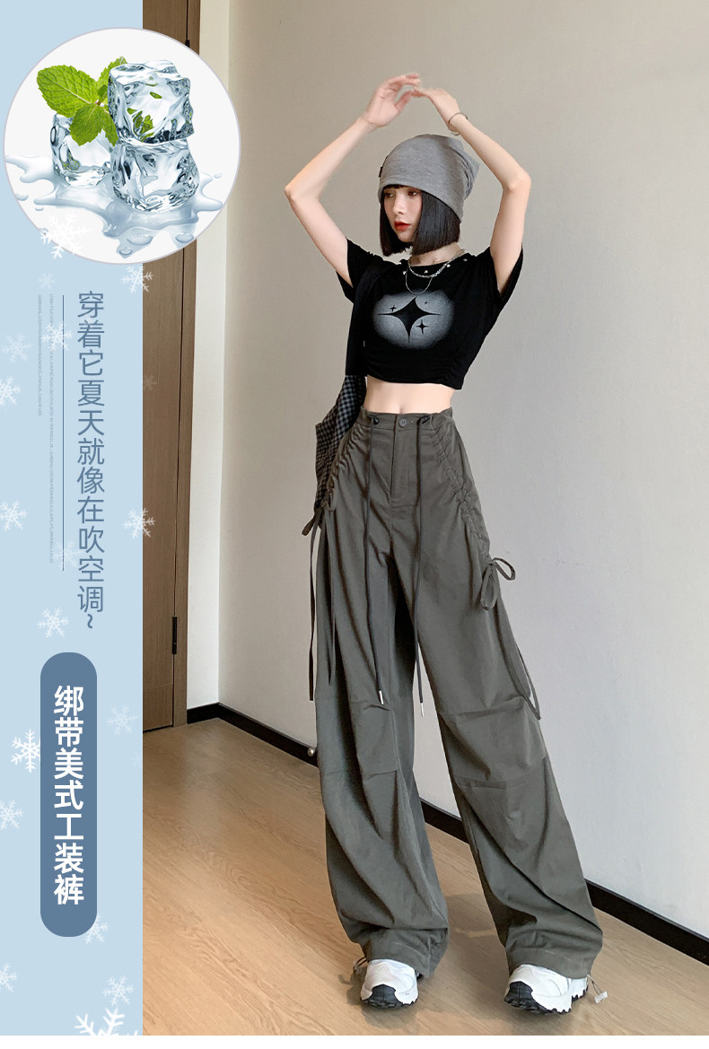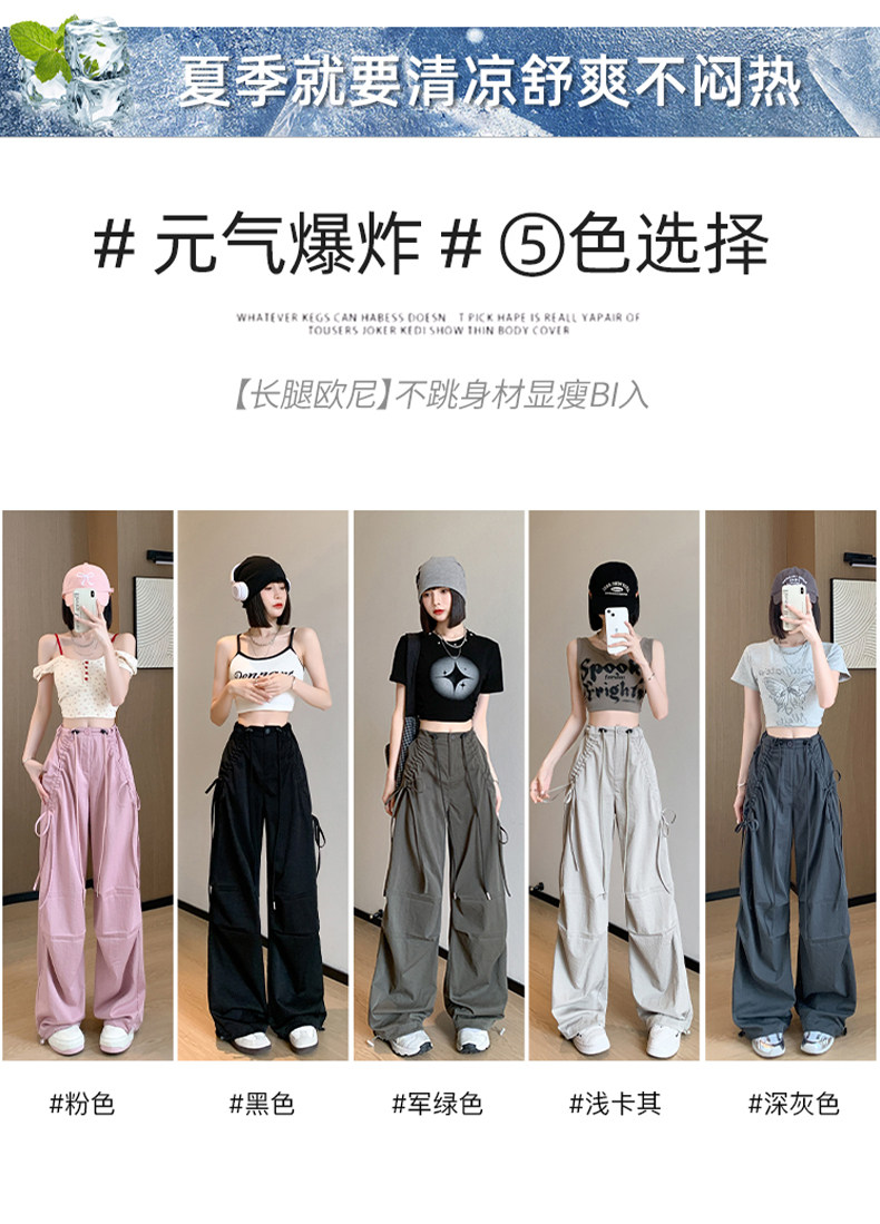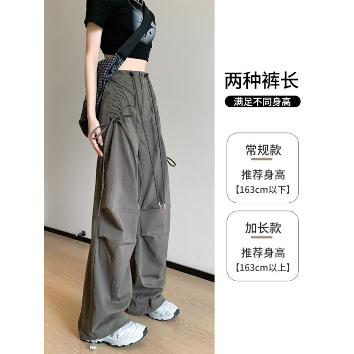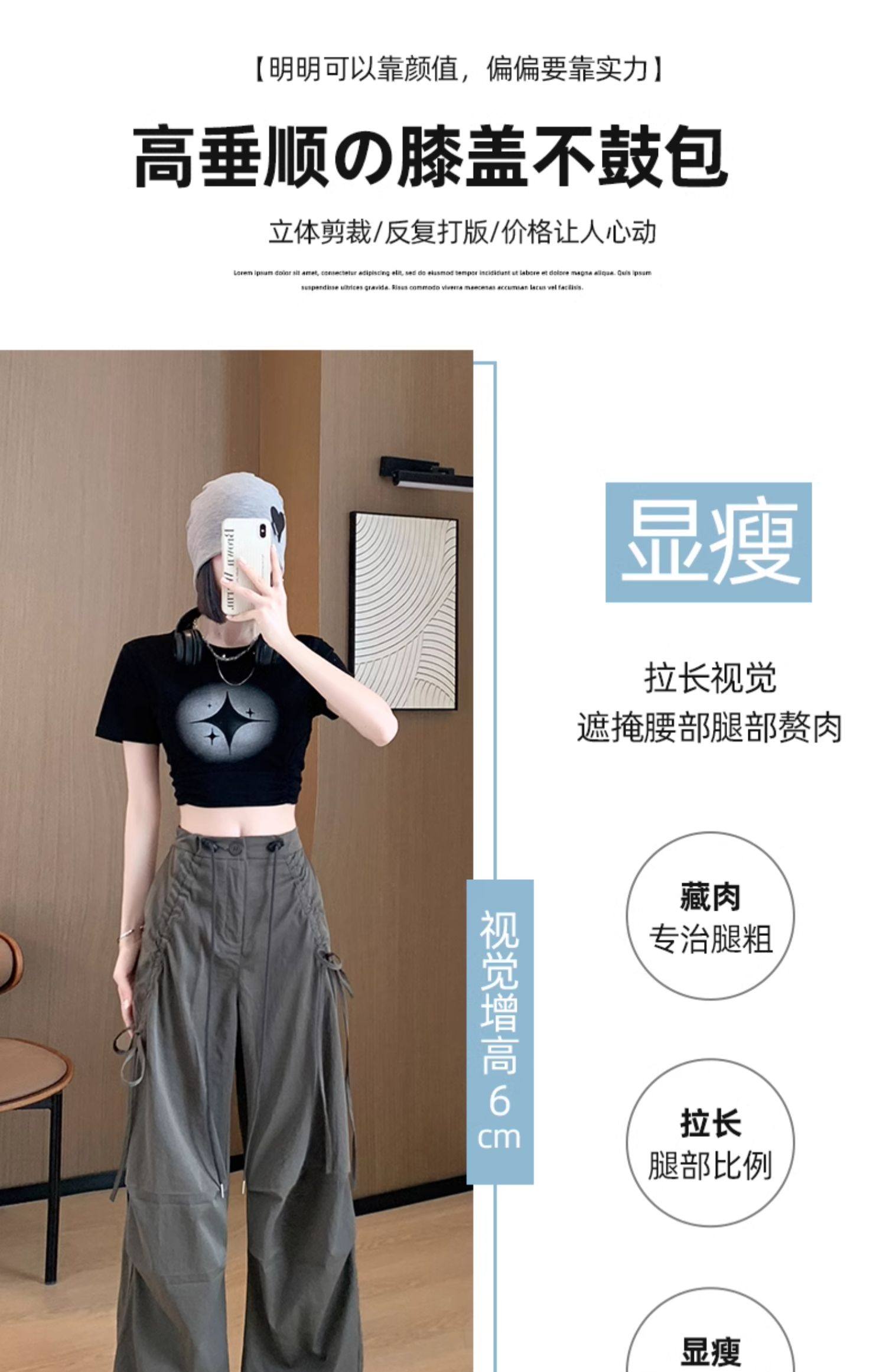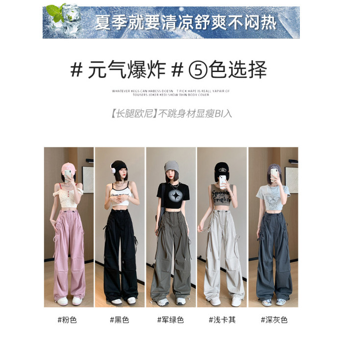 軍綠色美式工裝褲女夏薄款2025新款降落傘兵春秋小個子休閒濶腿褲