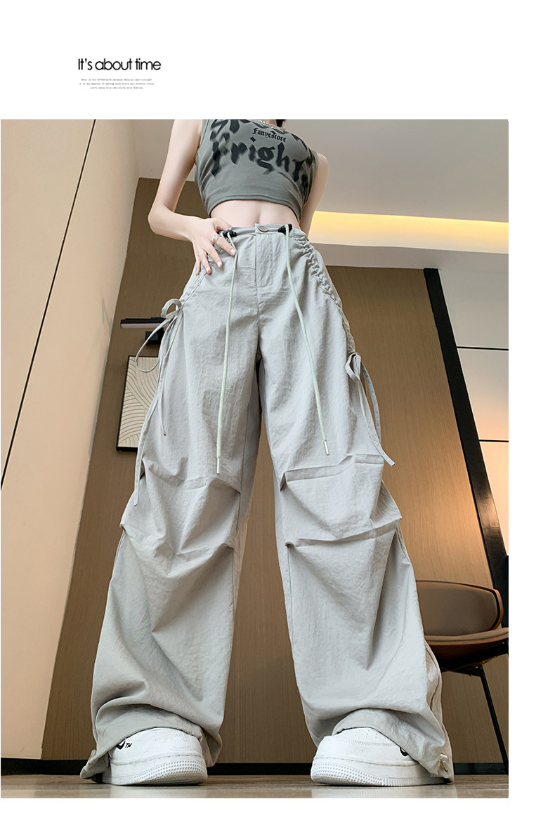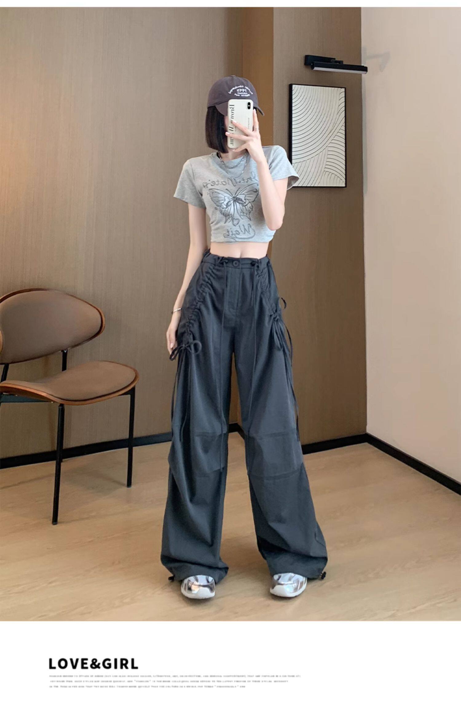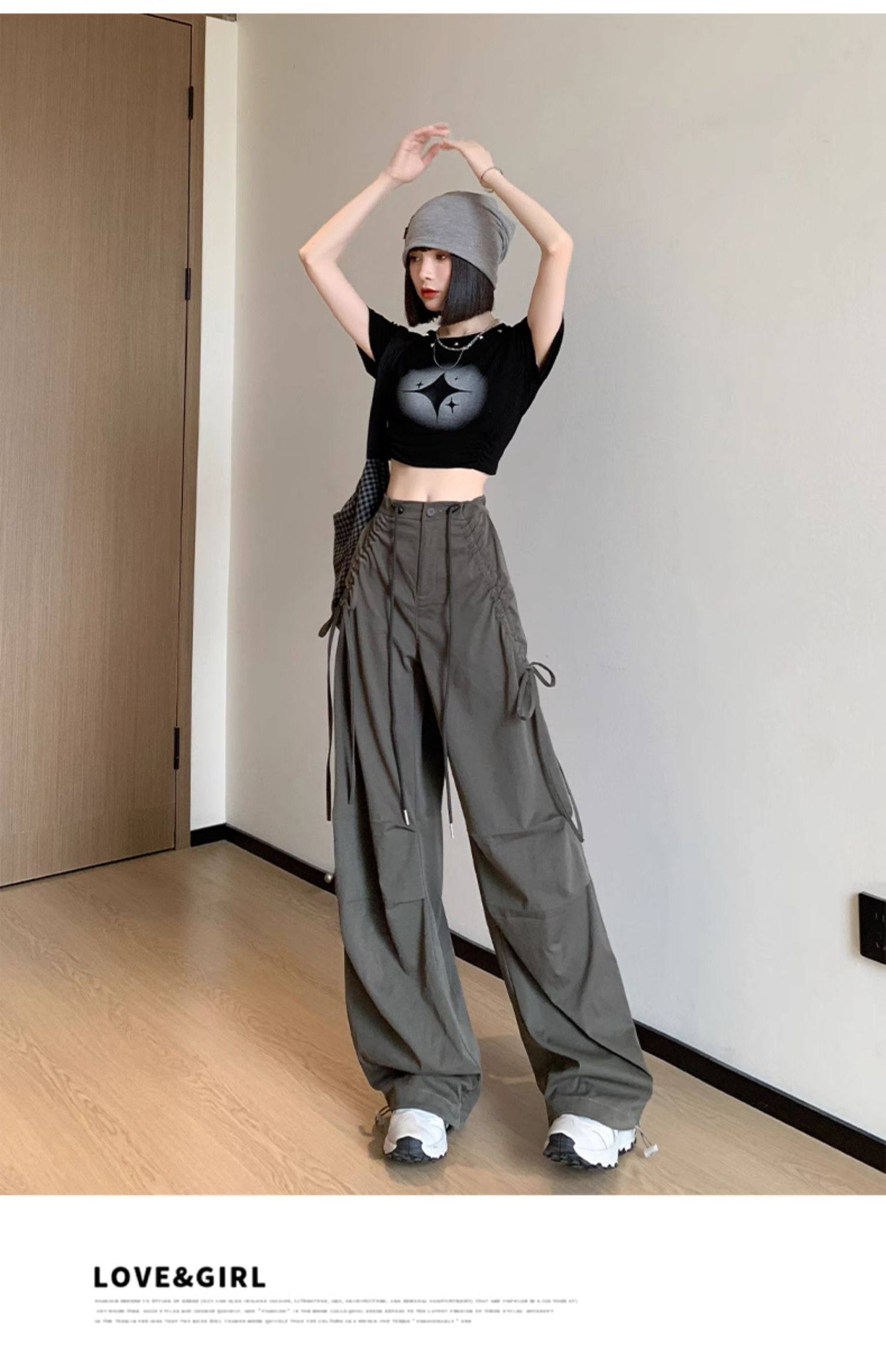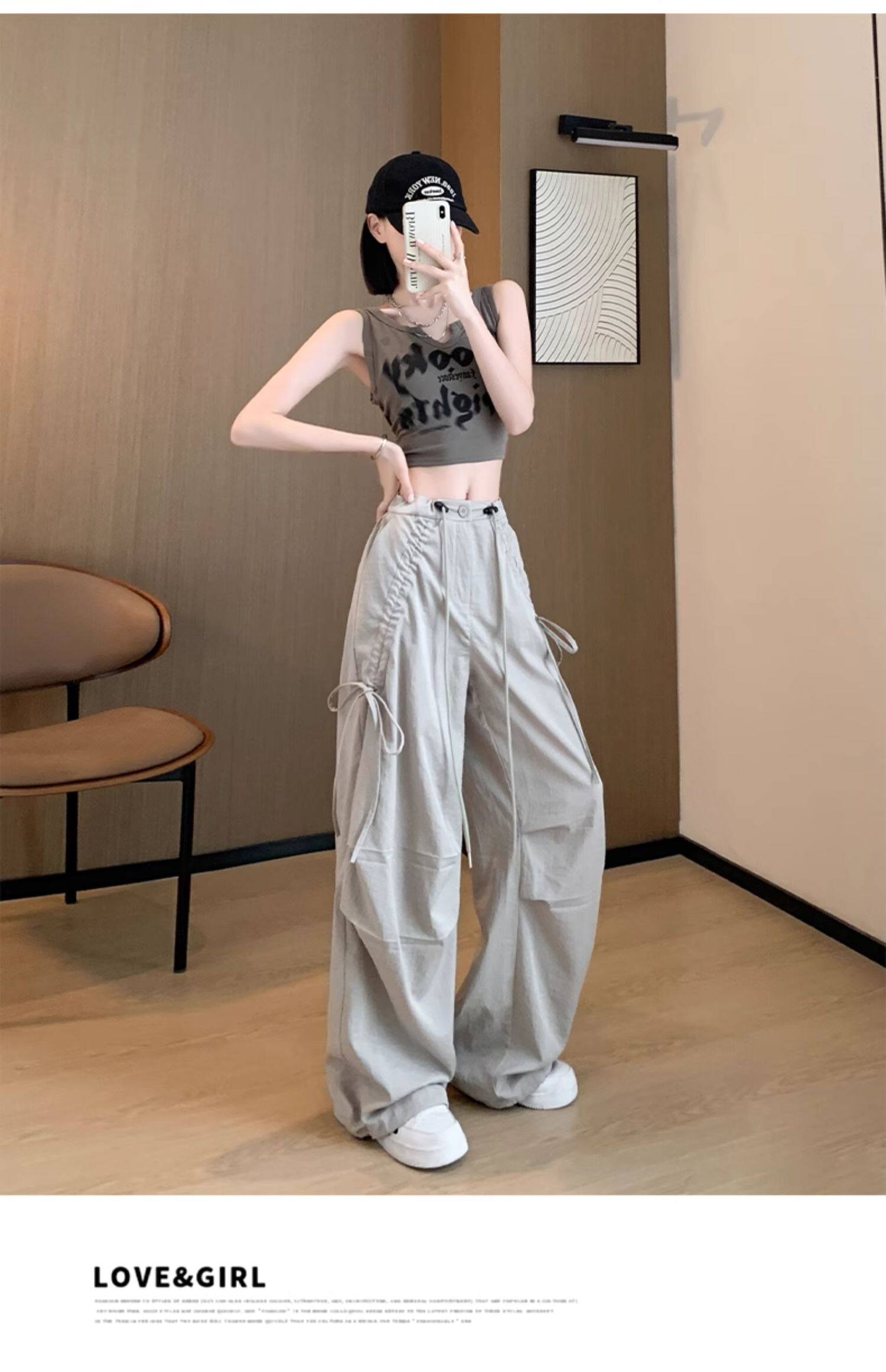 軍綠色美式工裝褲女夏薄款2025新款降落傘兵春秋小個子休閒濶腿褲