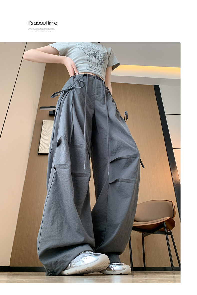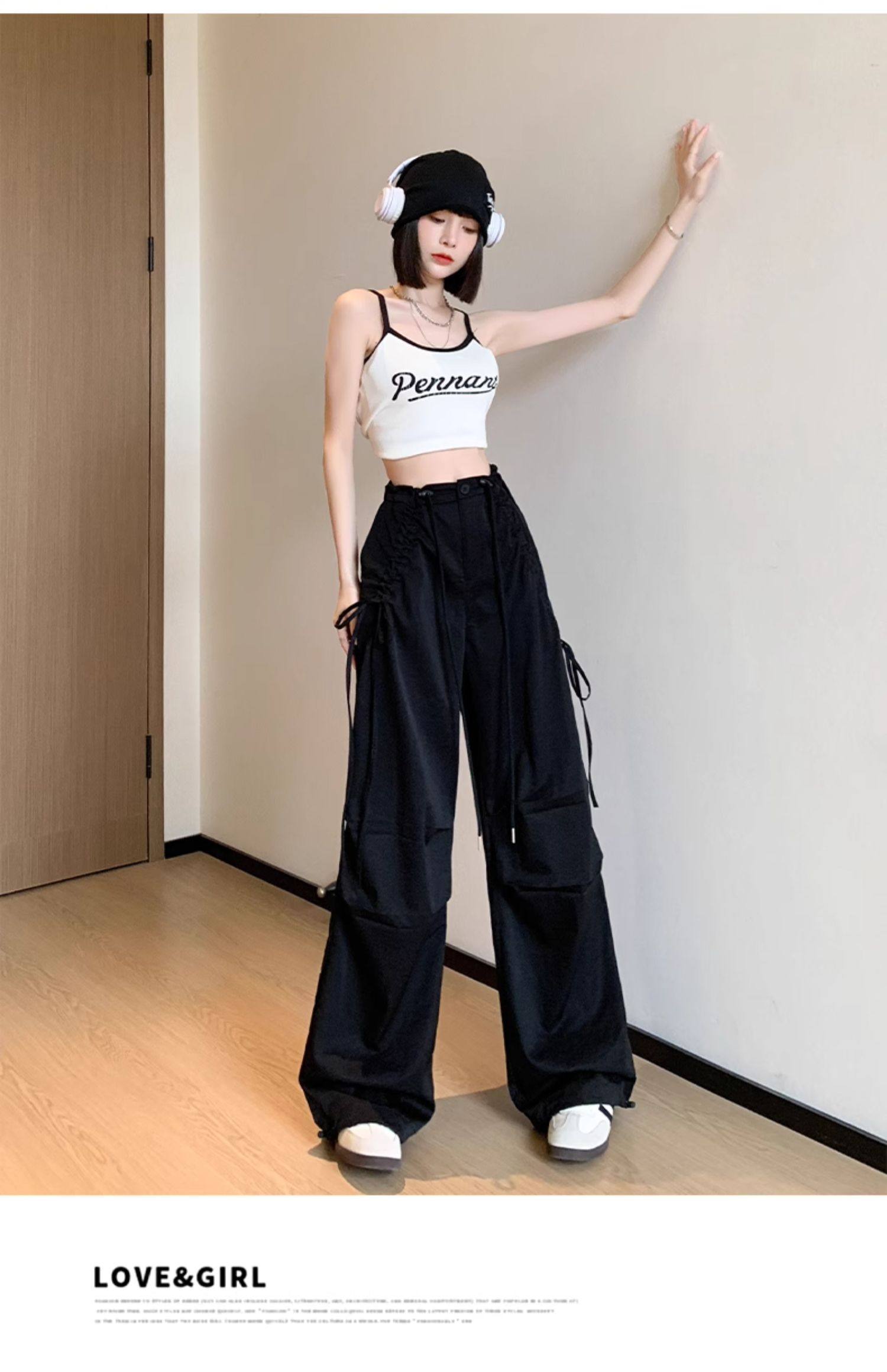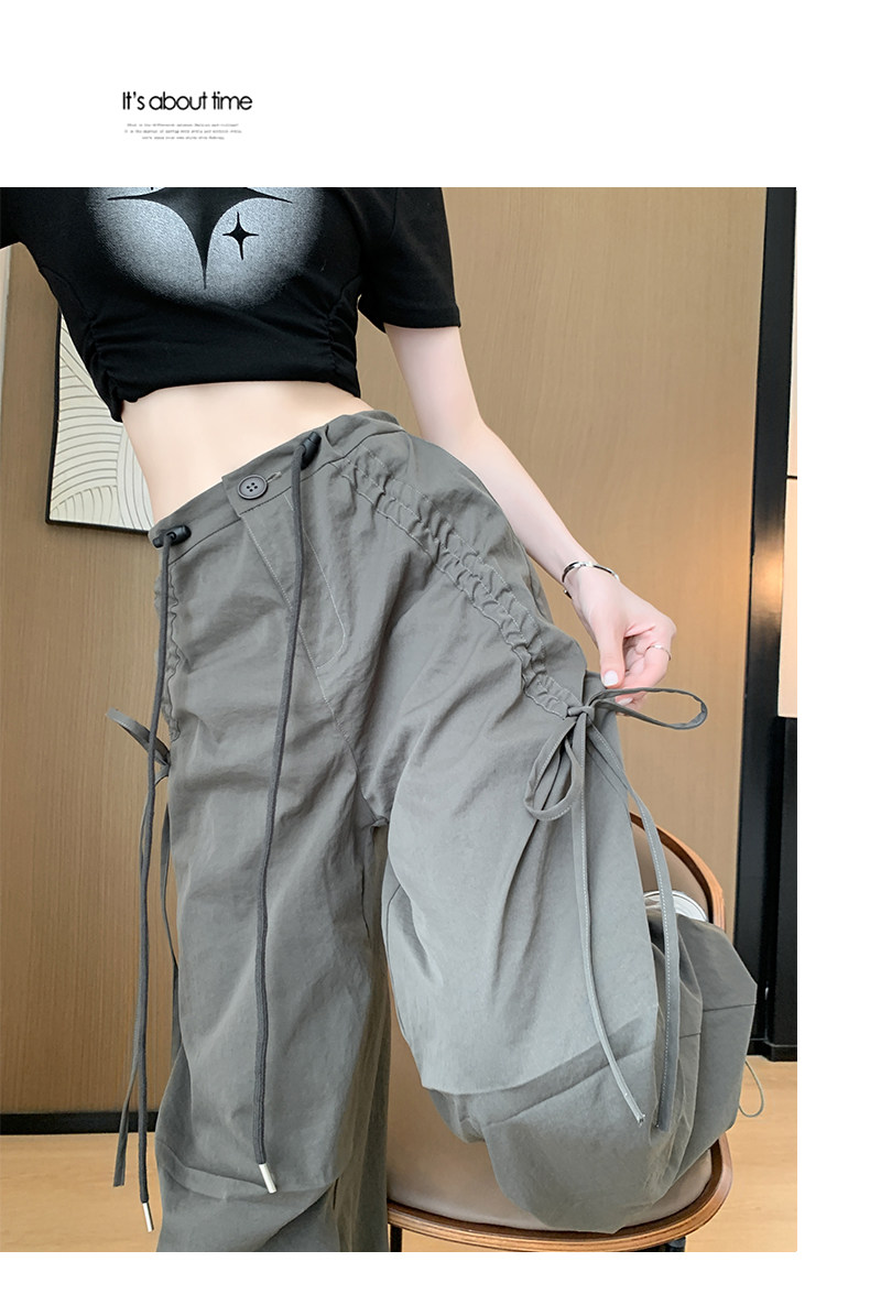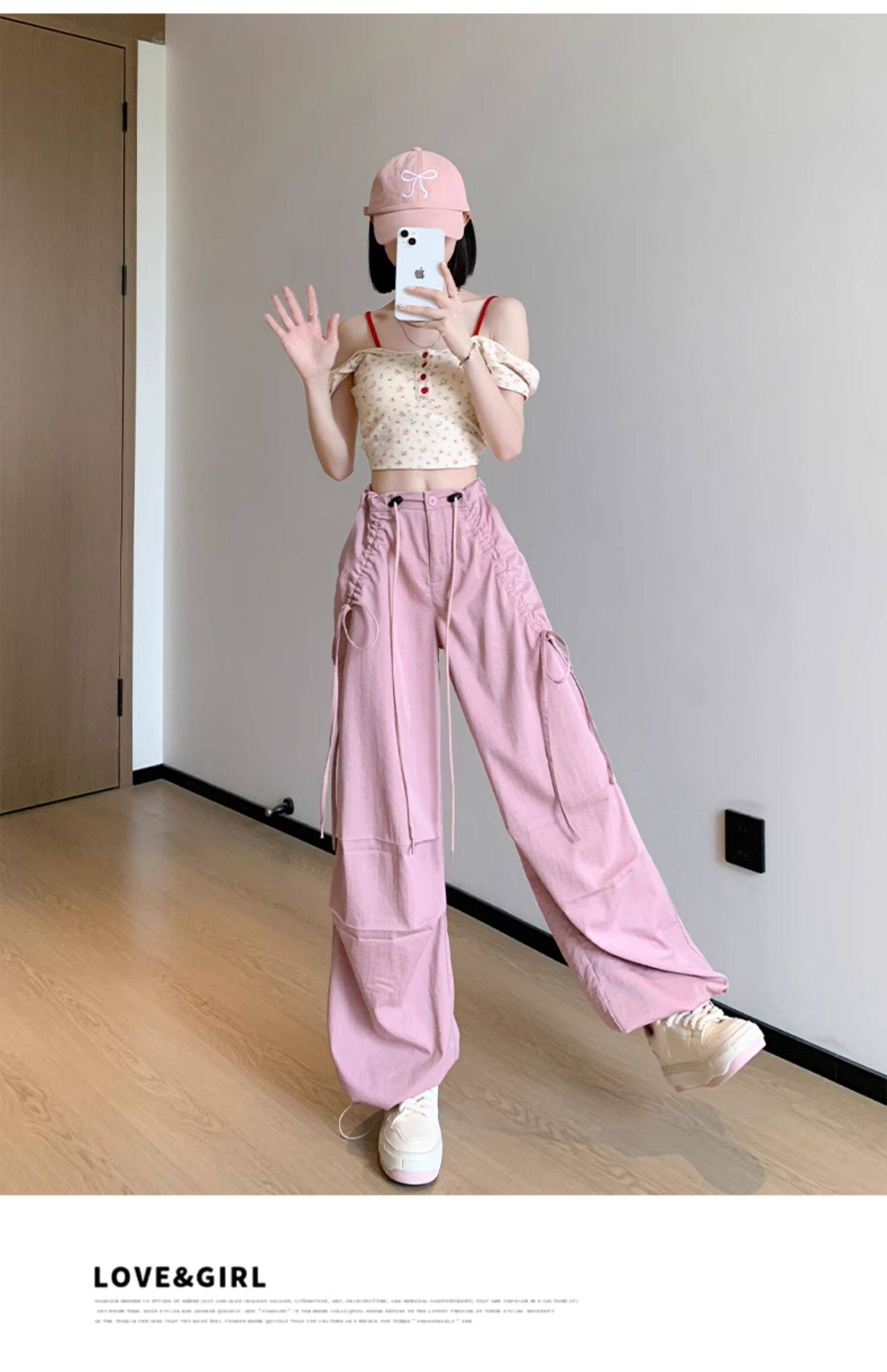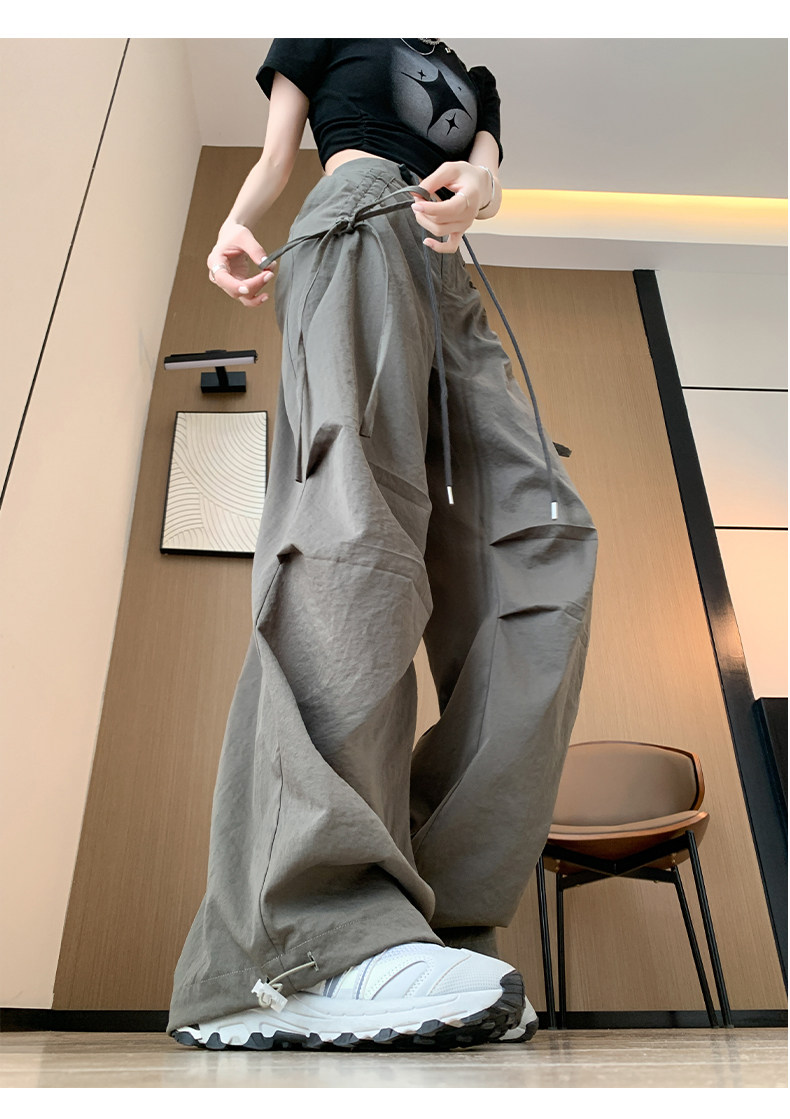 軍綠色美式工裝褲女夏薄款2025新款降落傘兵春秋小個子休閒濶腿褲