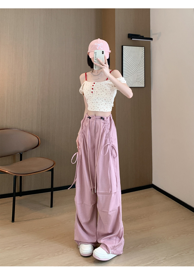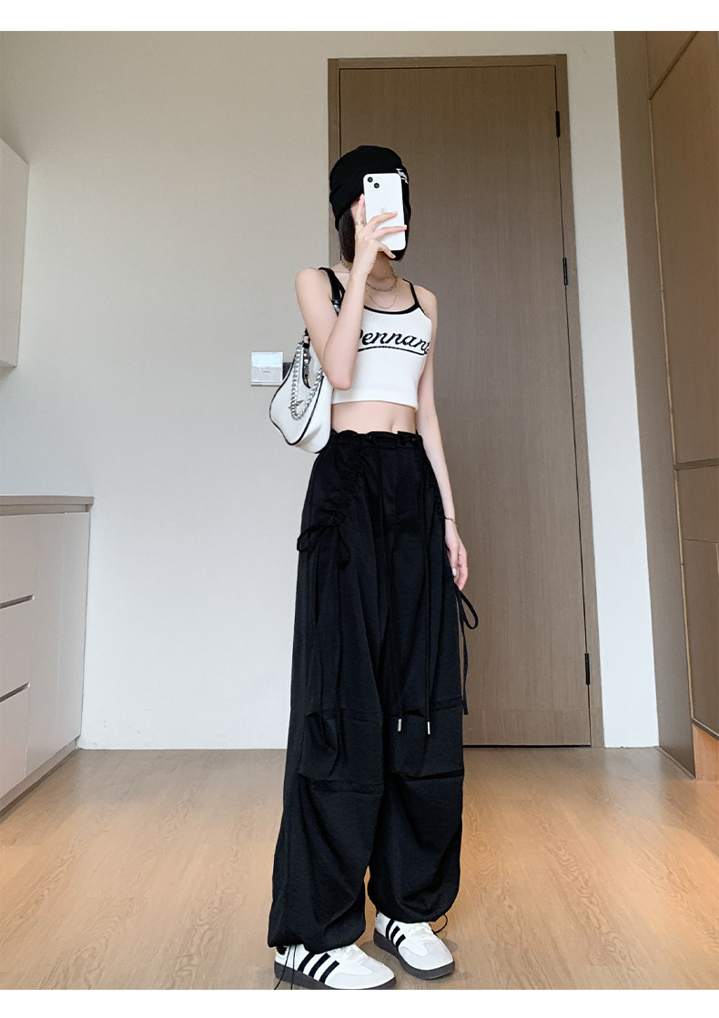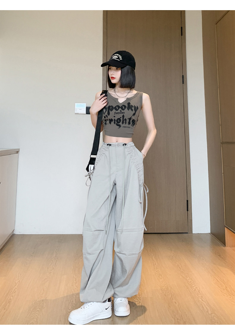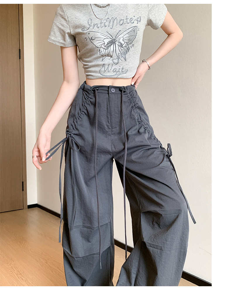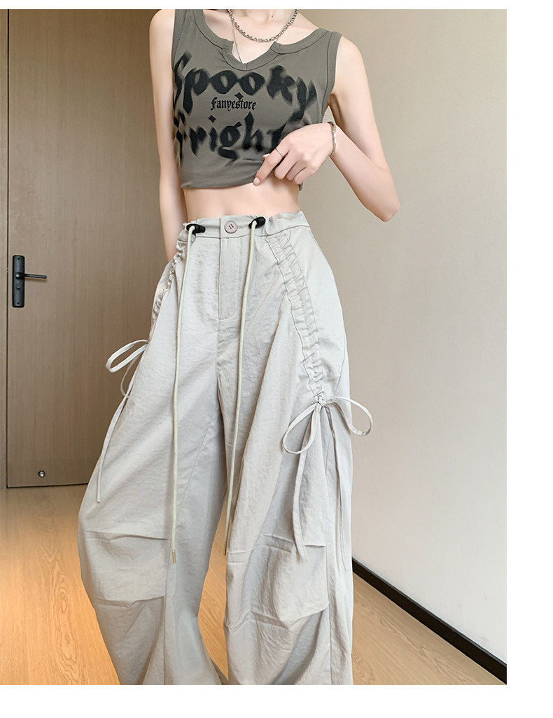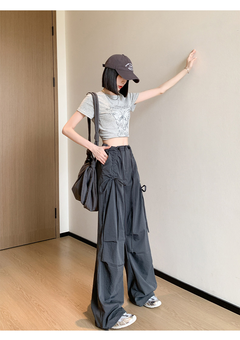 軍綠色美式工裝褲女夏薄款2025新款降落傘兵春秋小個子休閒濶腿褲