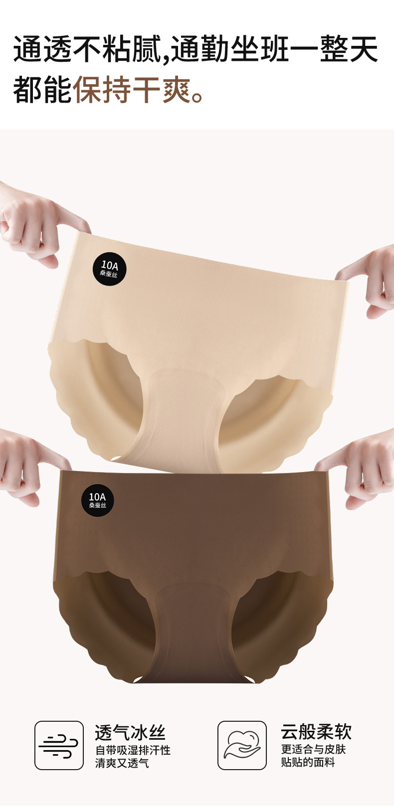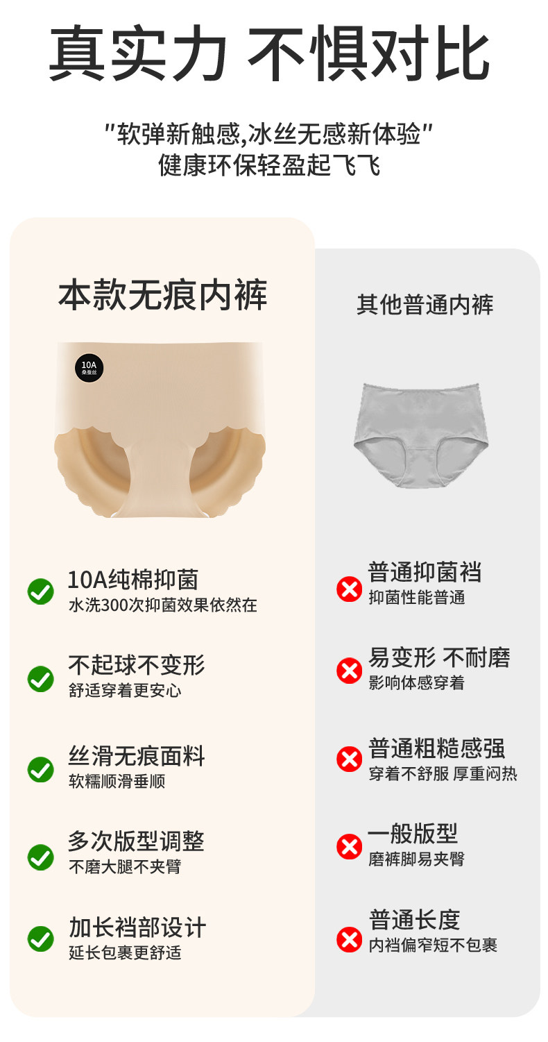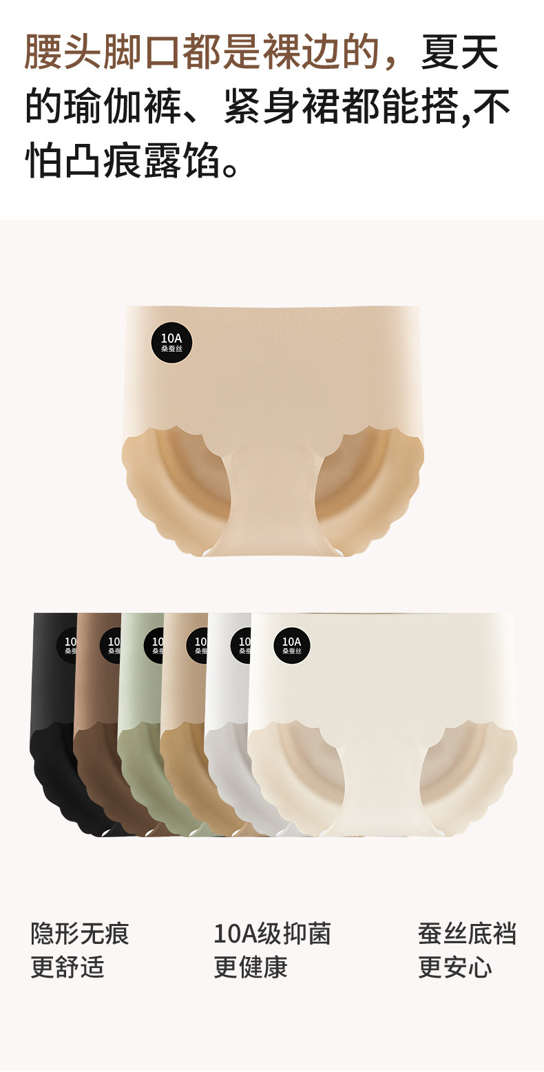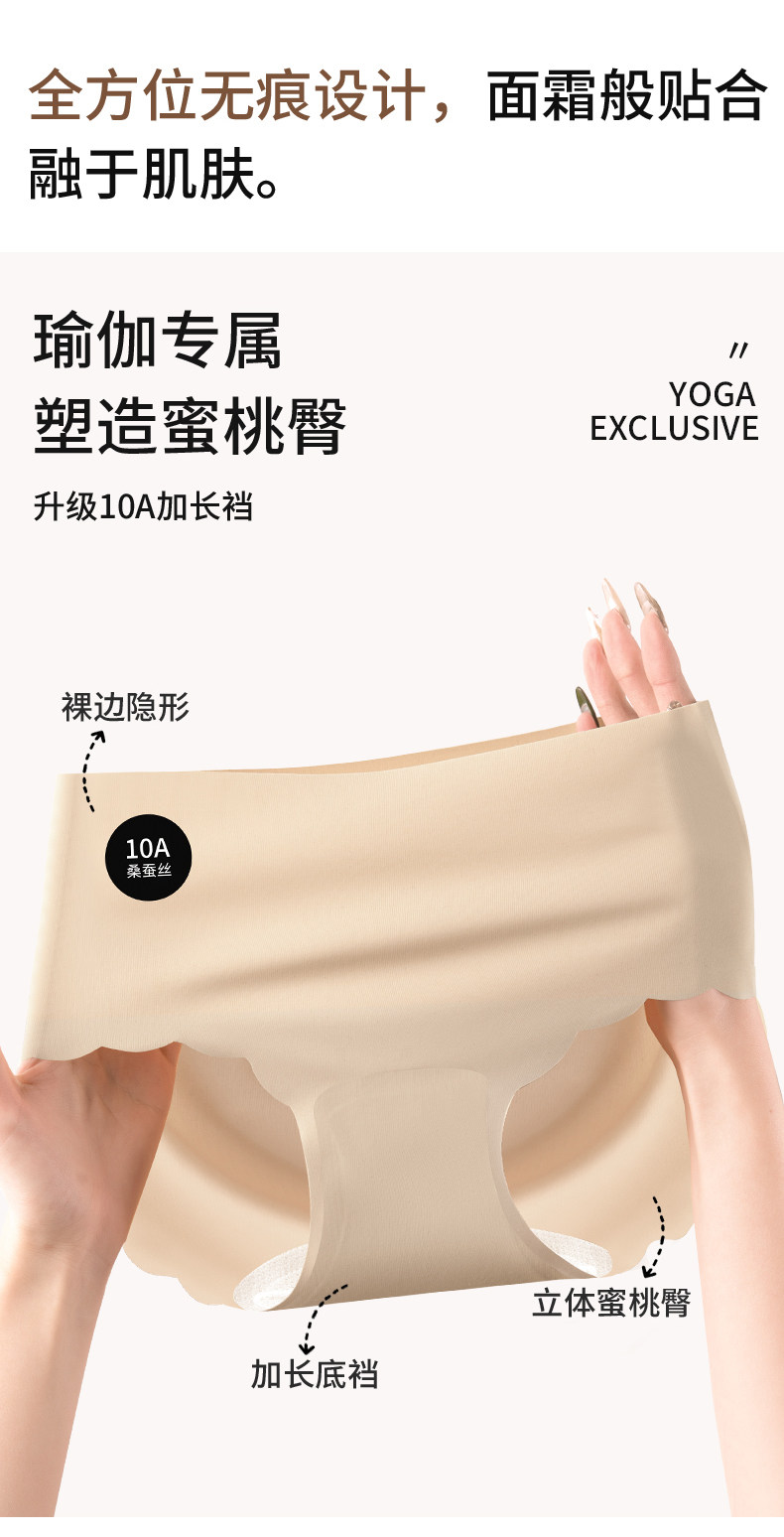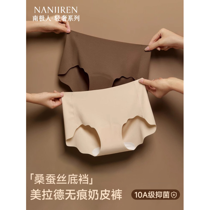 南極人瑜珈健身無痕內褲女士桑蠶絲抗菌襠冰絲女生中腰運動三角褲
