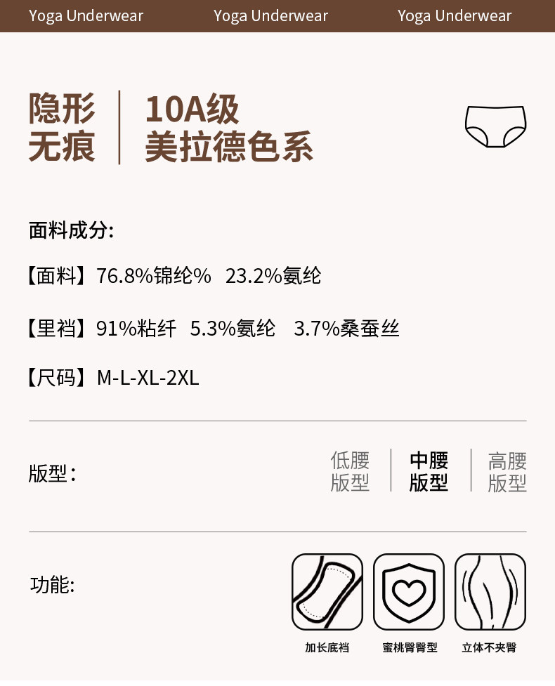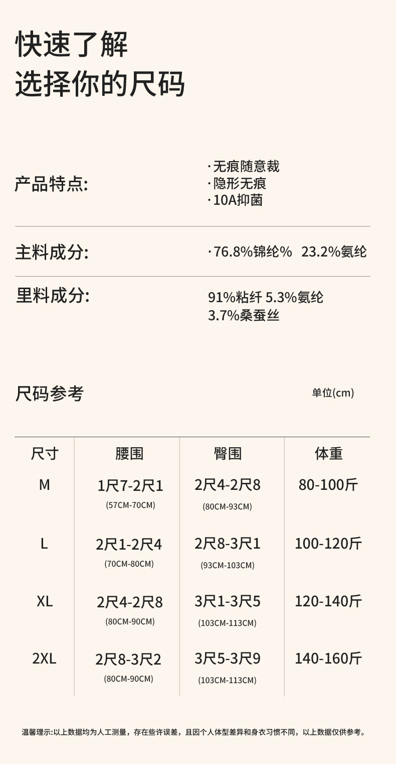 | 襠部材質成分 | 粘膠纖維(粘纖)91% 聚氨酯彈性纖維(氨綸)5.3% 桑蠶絲3.7% |