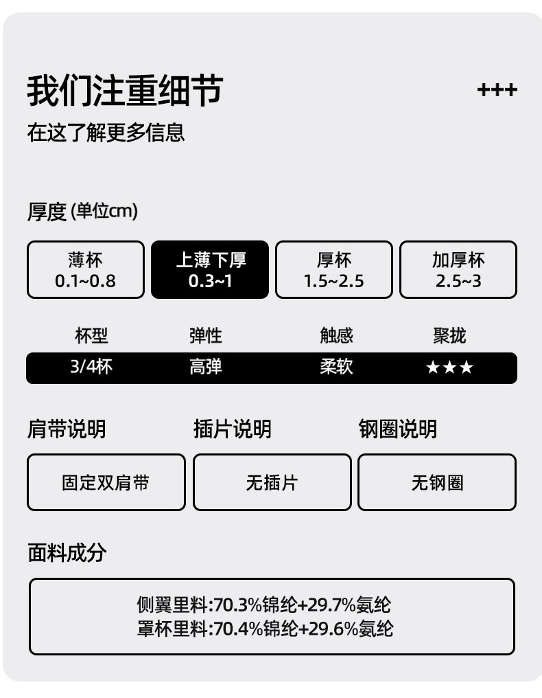 | 罩杯款式 | 3/4罩杯 |