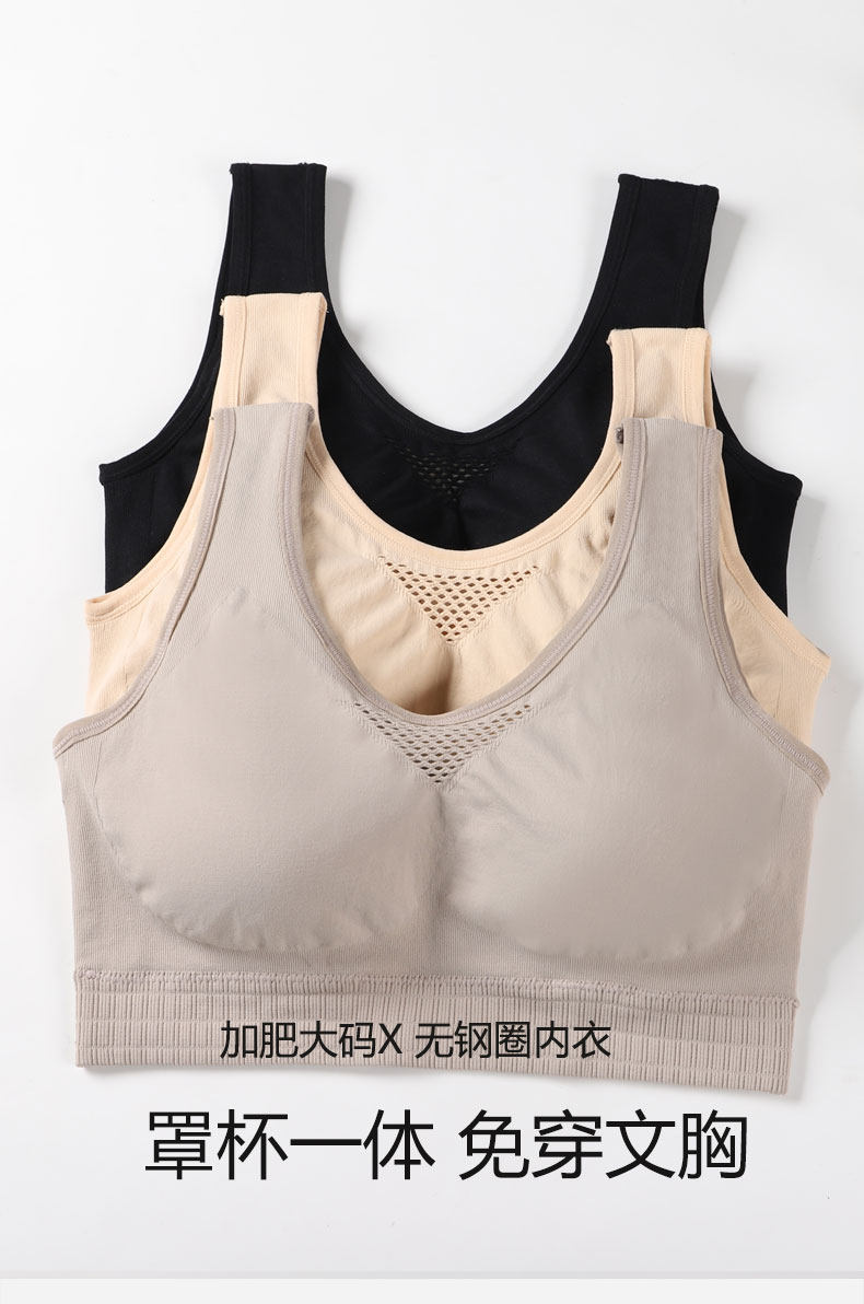 運動內衣一體固定胸墊美背心文胸舒適大碼胖MM200斤中老年媽媽薄