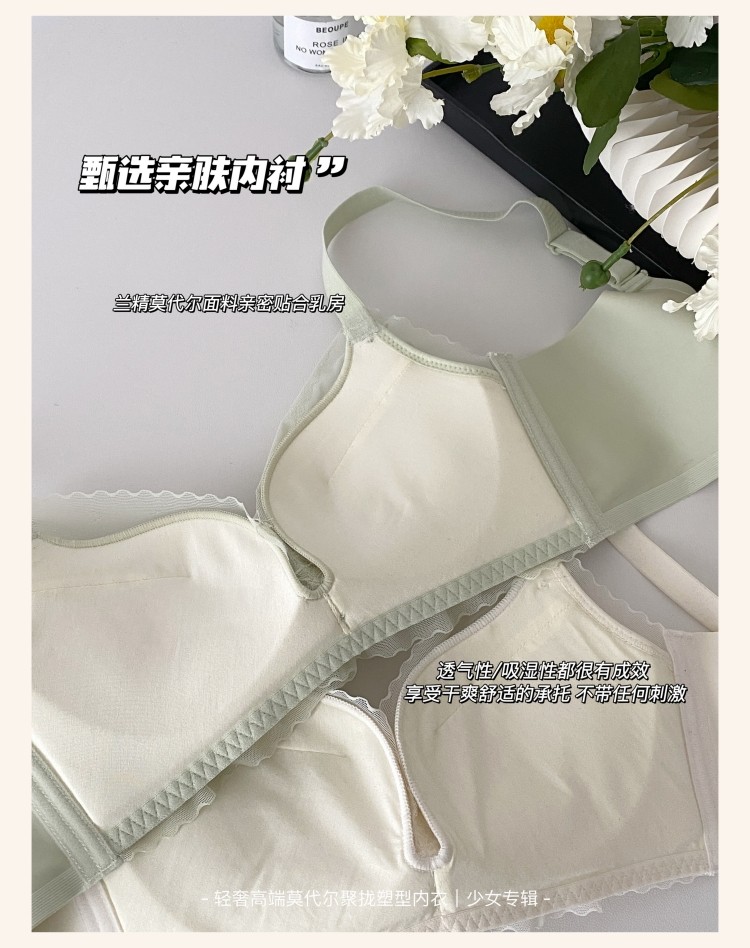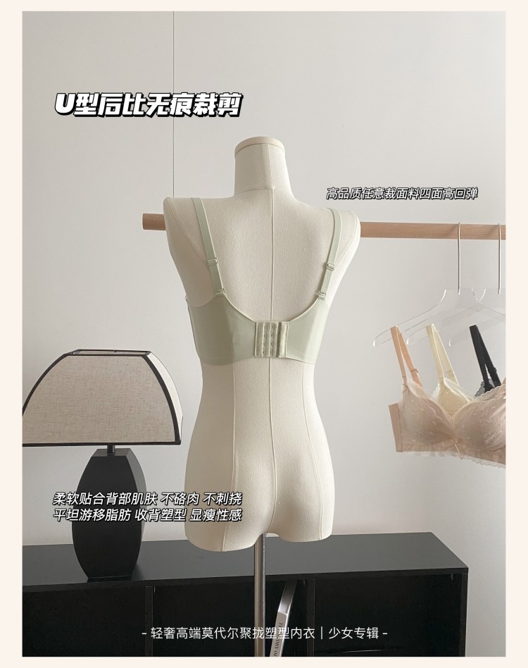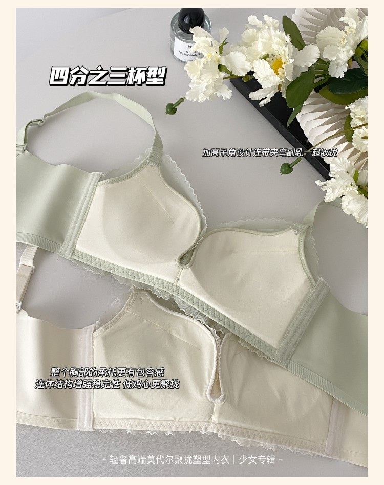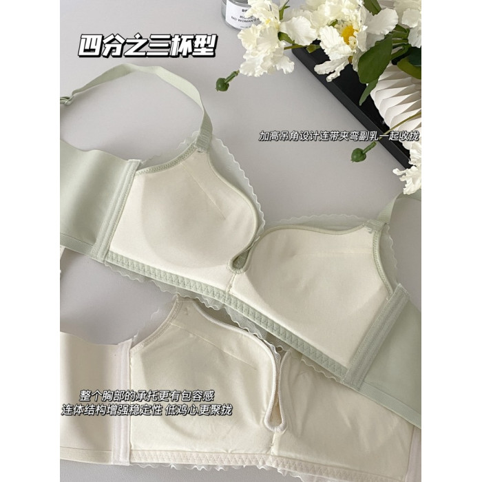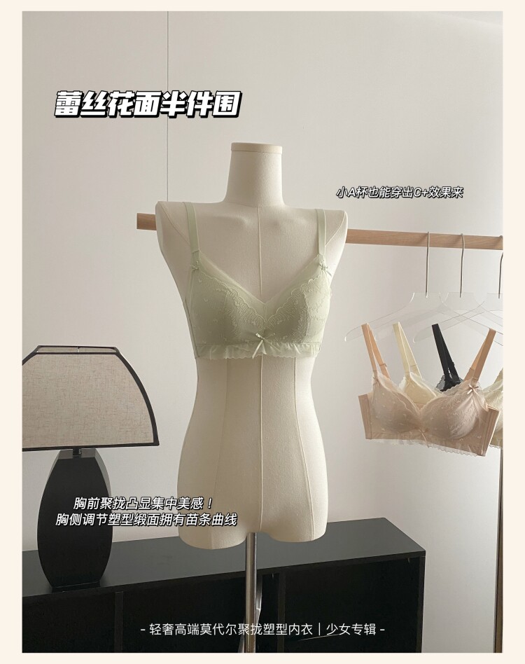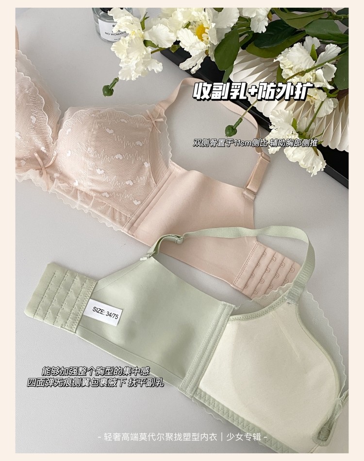 調整型內衣女小胸聚攏顯大不空杯無鋼圈上托防下垂收副乳文胸套裝