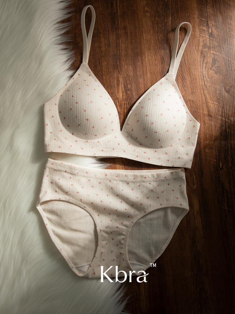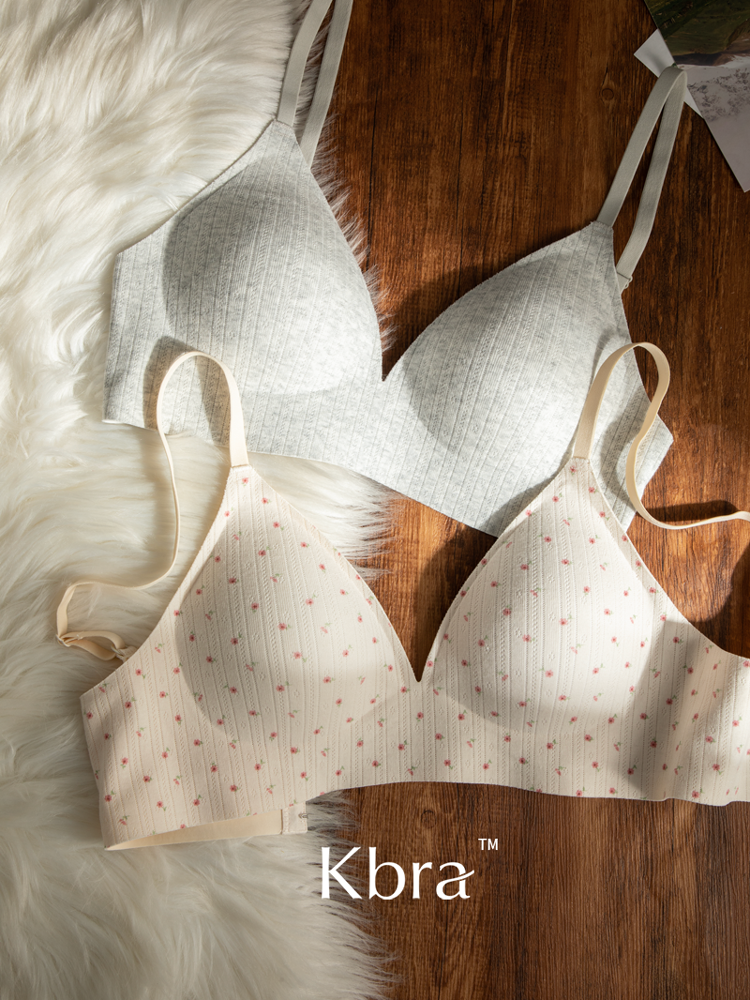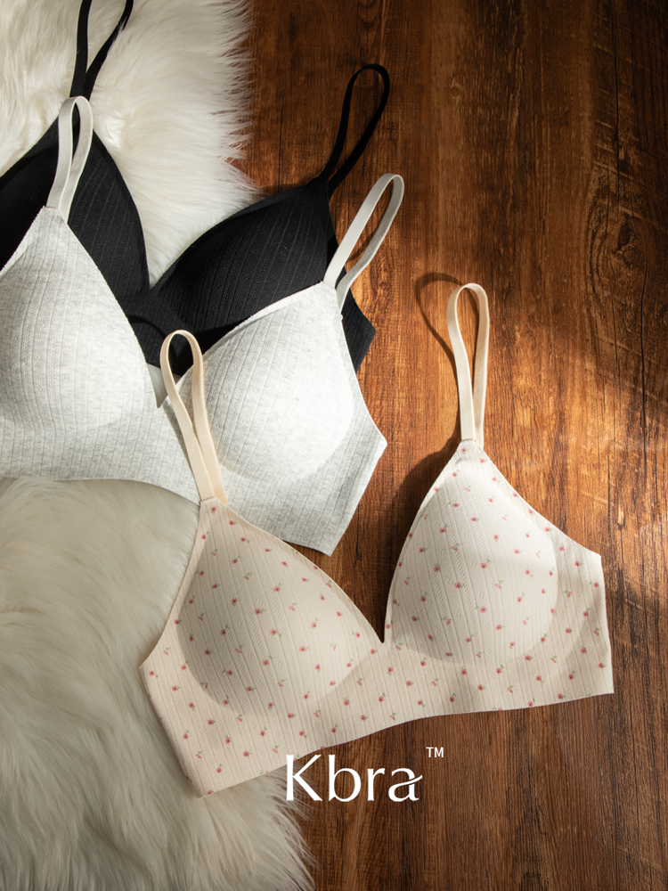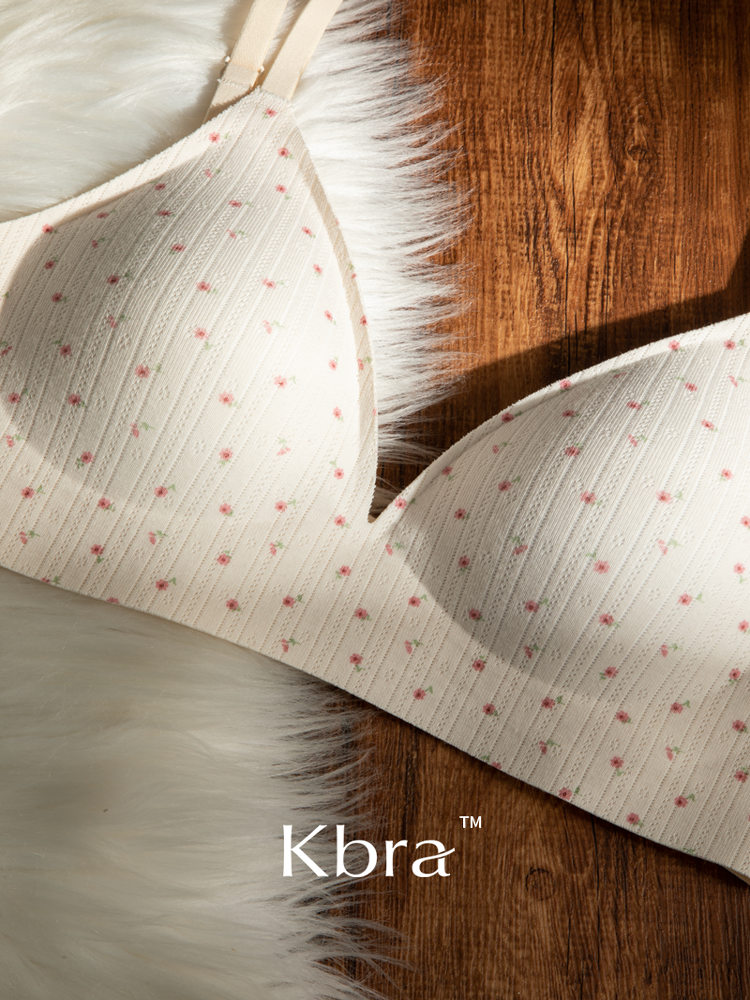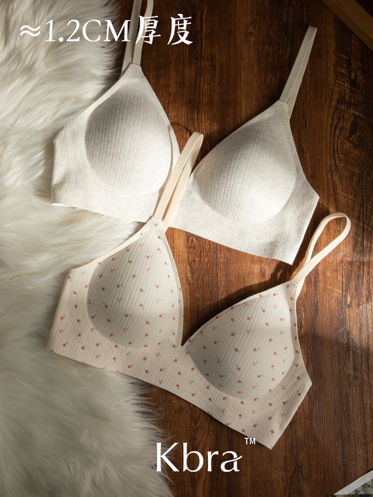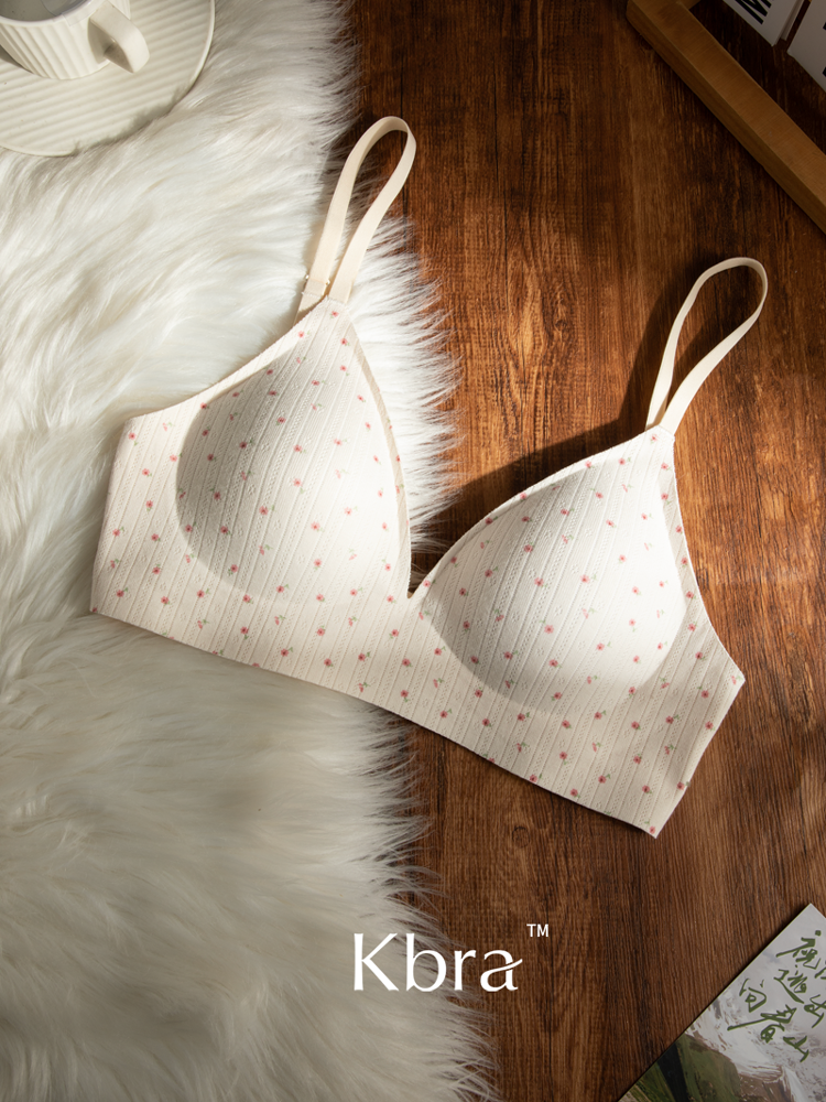 Kbra法式碎花三角杯文胸2026新款爆款運動無鋼圈小胸聚攏內衣女