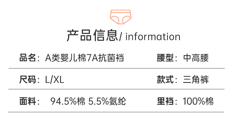 3條 【一眼就舒服】精梳棉透氣無痕內褲女中腰7A抑菌全棉加長襠
