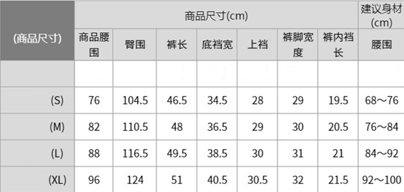 | 褲長 | 短褲 |