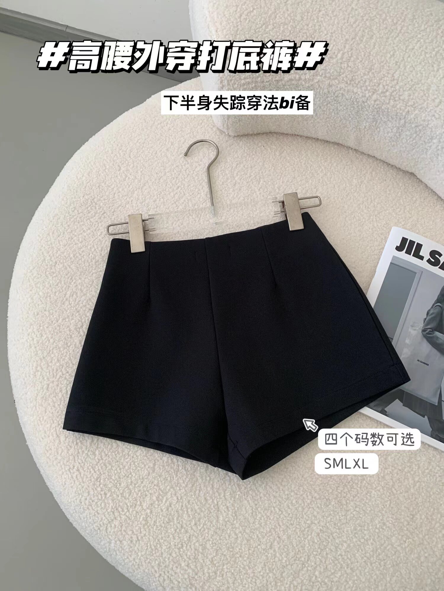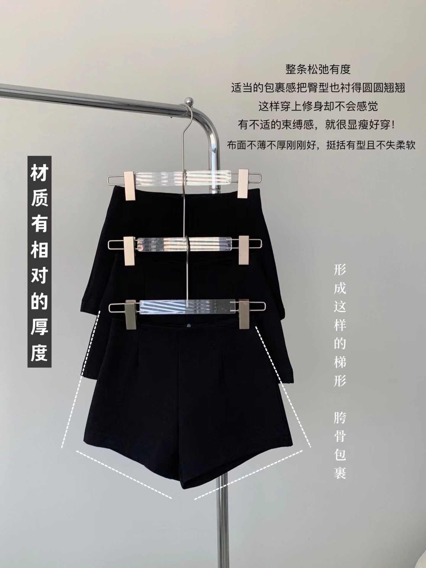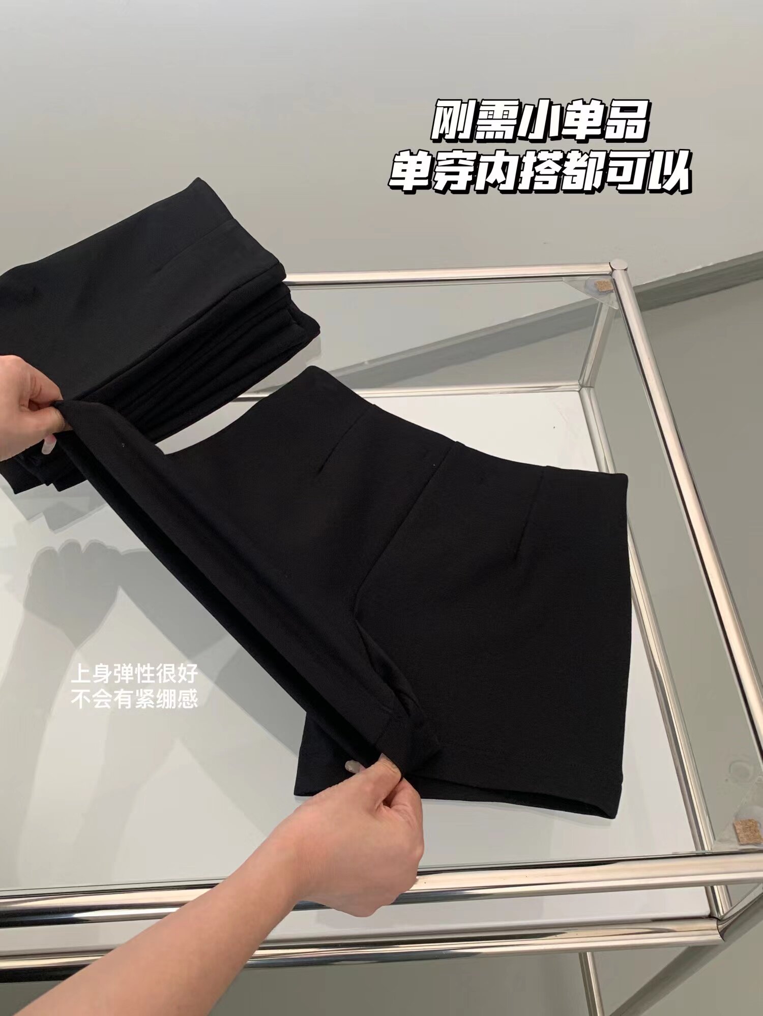 POPW 女團腿無D版型黑色短褲女2024秋季新款修身顯瘦百搭褲