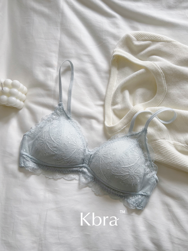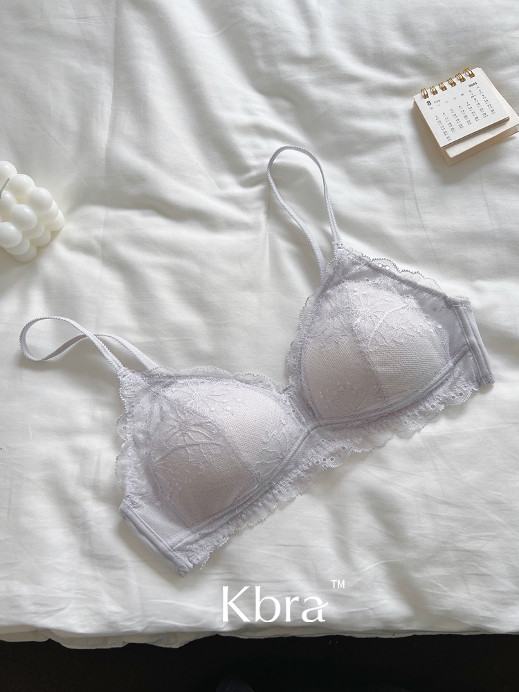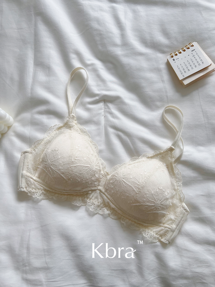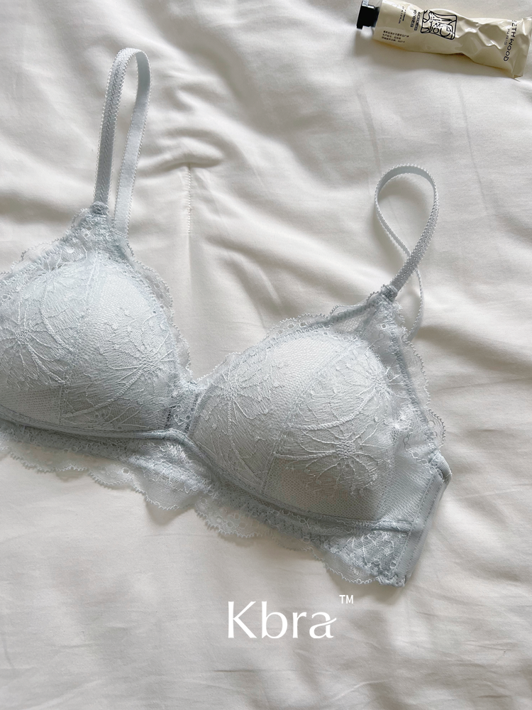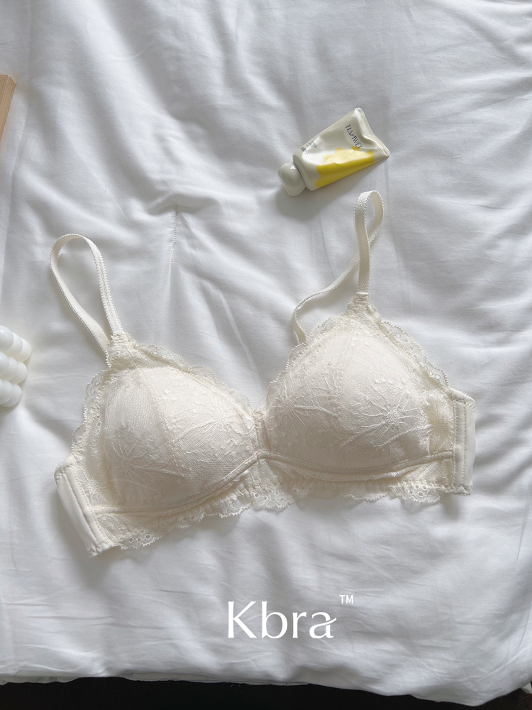 Kbra法式軟蕾絲內衣女微聚攏小胸超薄透氣無鋼圈細肩帶文胸罩