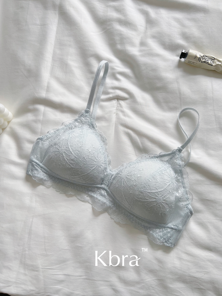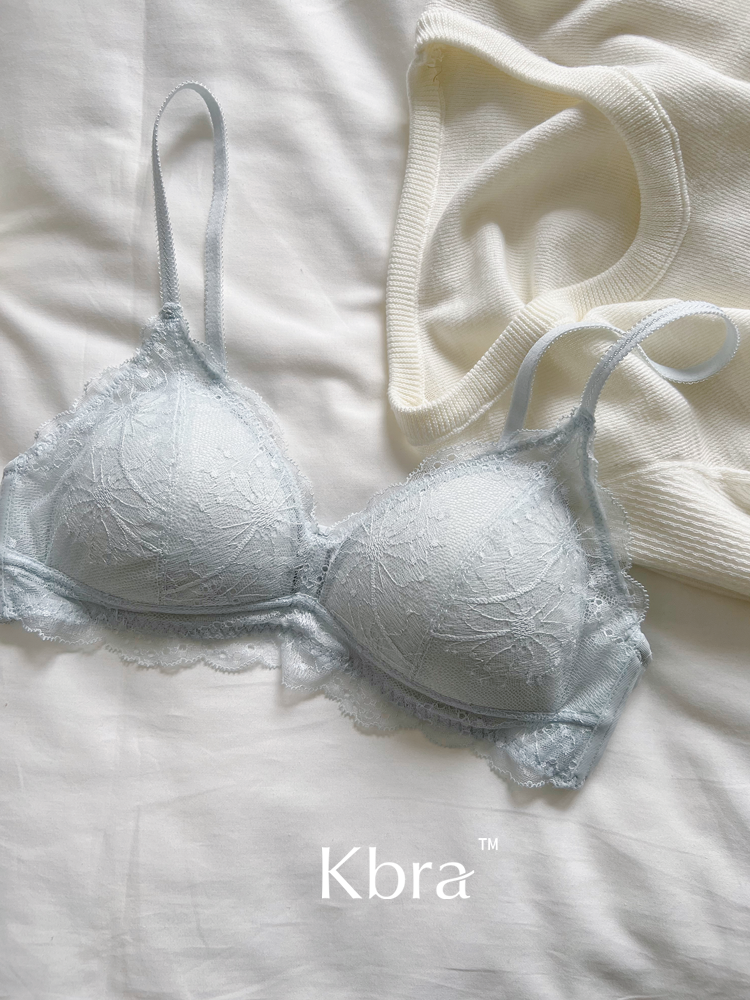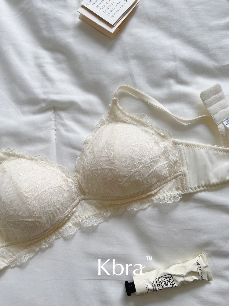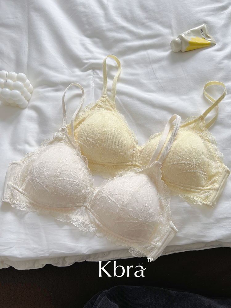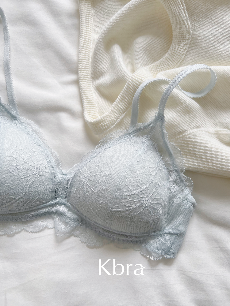Kbra法式軟蕾絲內衣女微聚攏小胸超薄透氣無鋼圈細肩帶文胸罩