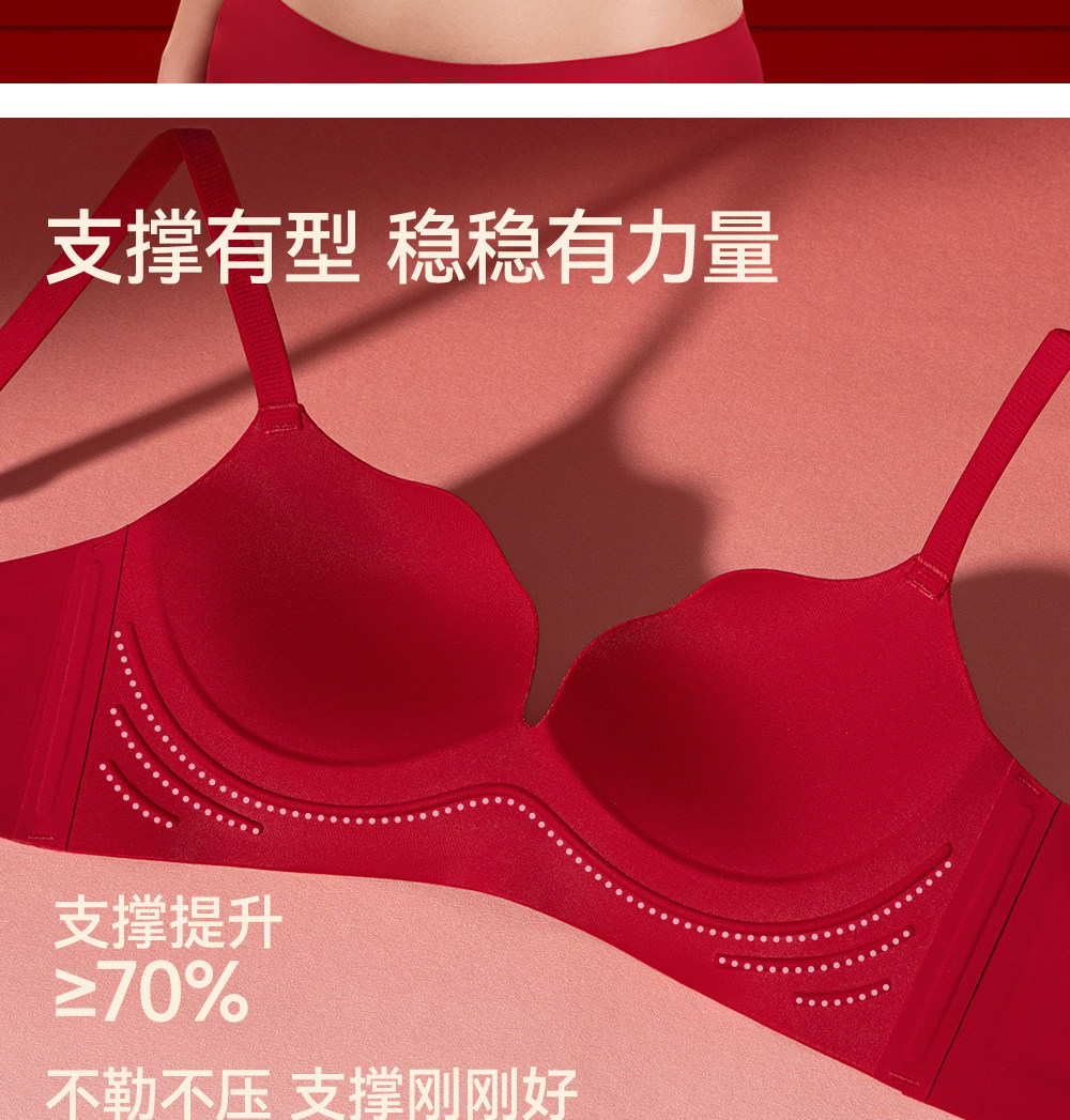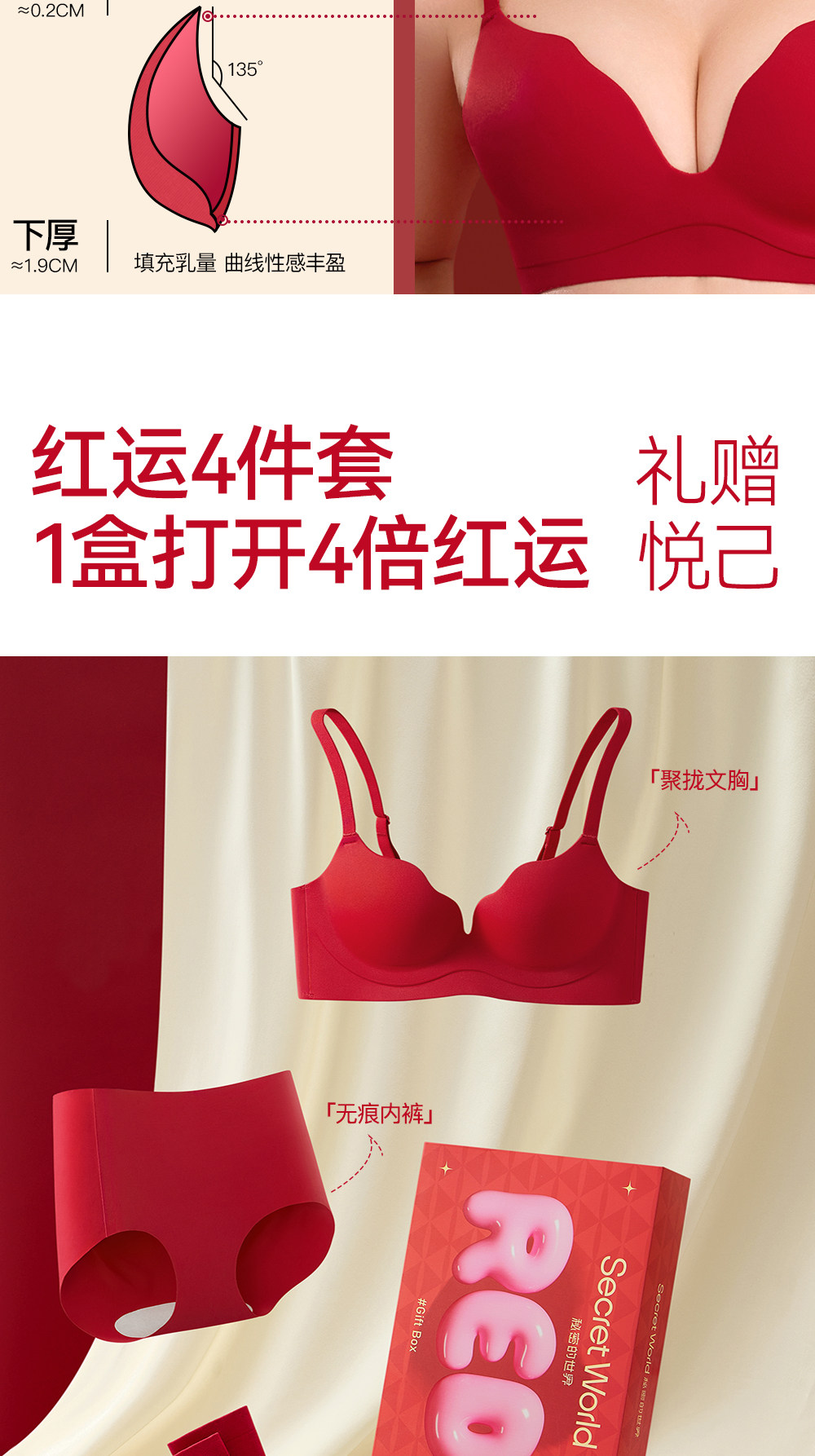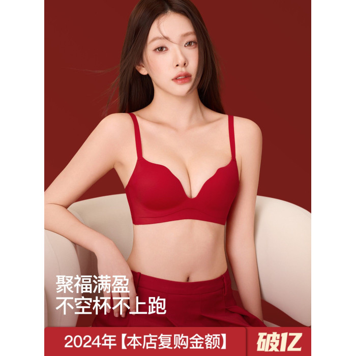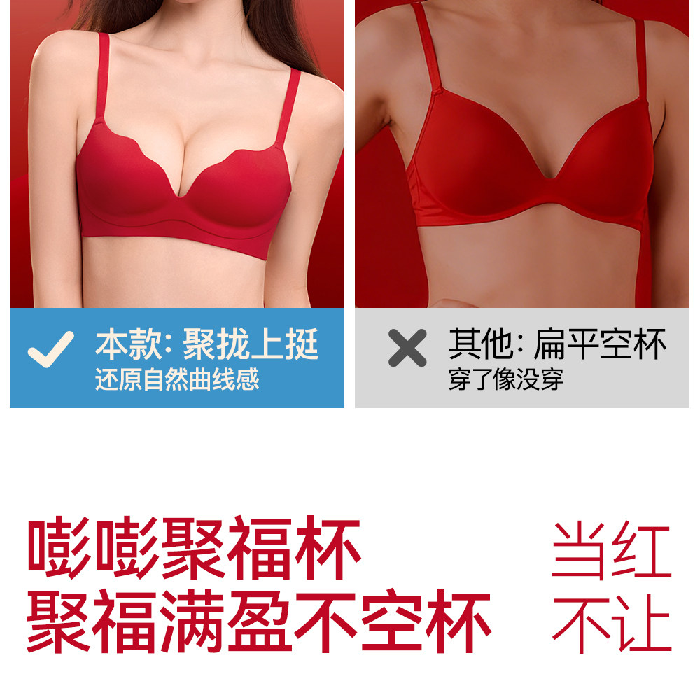 紅色內衣女小胸聚攏本命年內衣內褲套裝馬年無鋼圈文胸罩結婚新娘