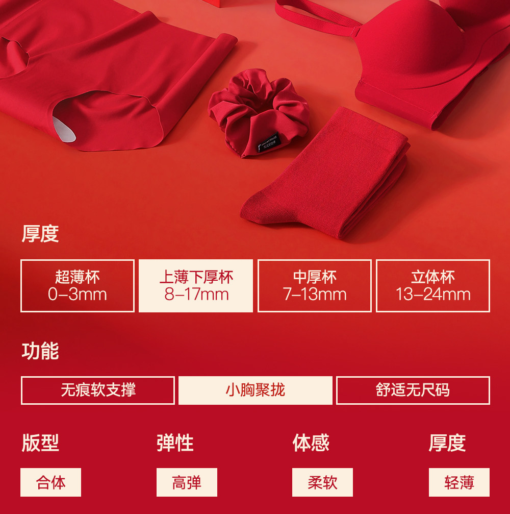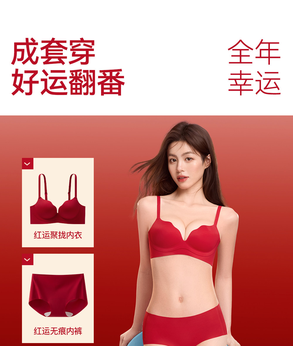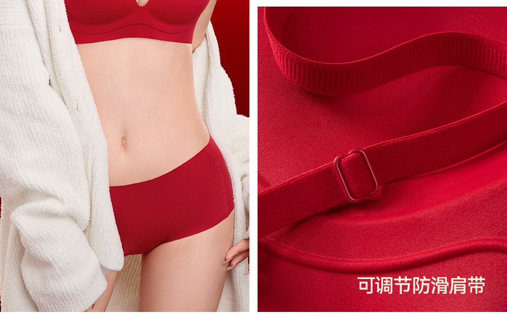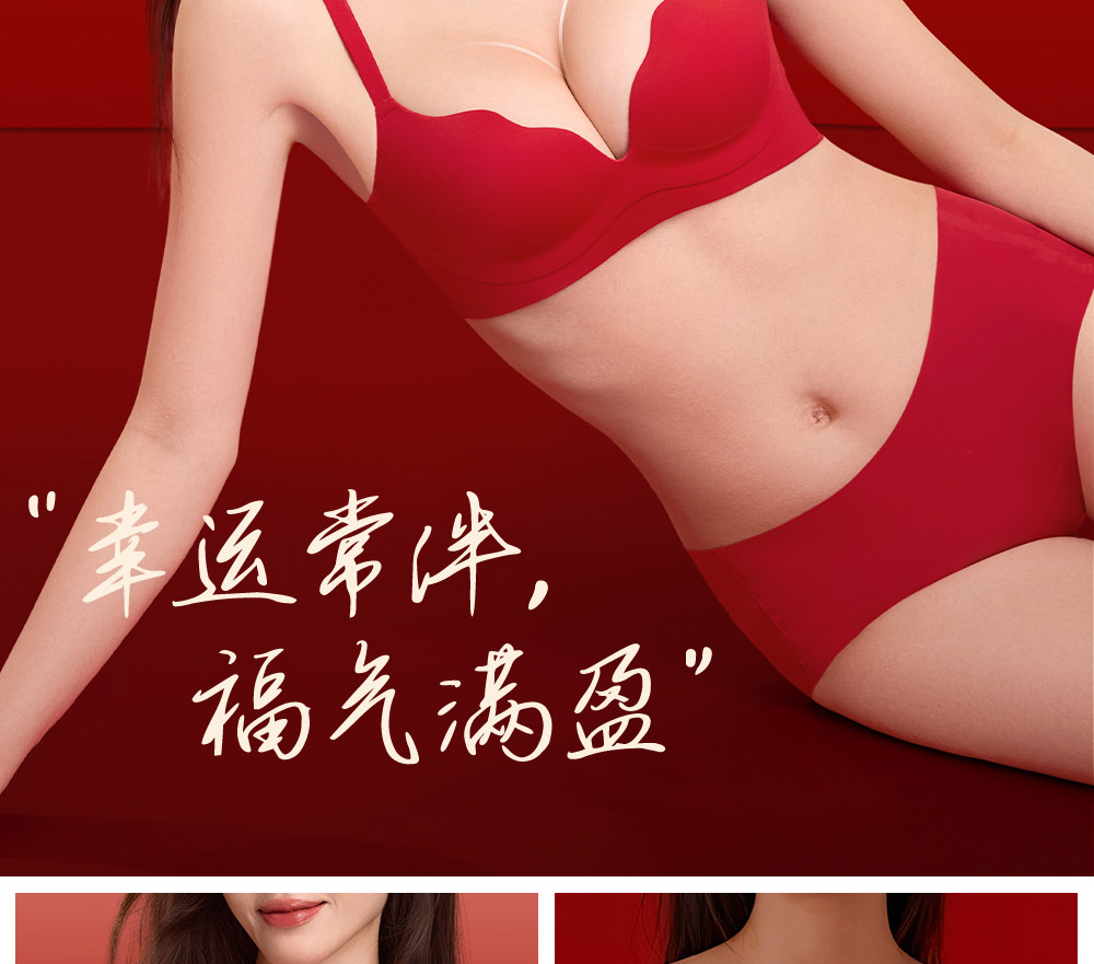 紅色內衣女小胸聚攏本命年內衣內褲套裝馬年無鋼圈文胸罩結婚新娘