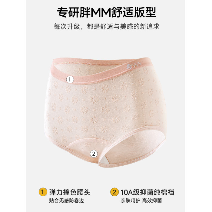 南極人大碼內褲女士純棉全棉透氣胖mm加肥加大不夾屁股三角短褲頭