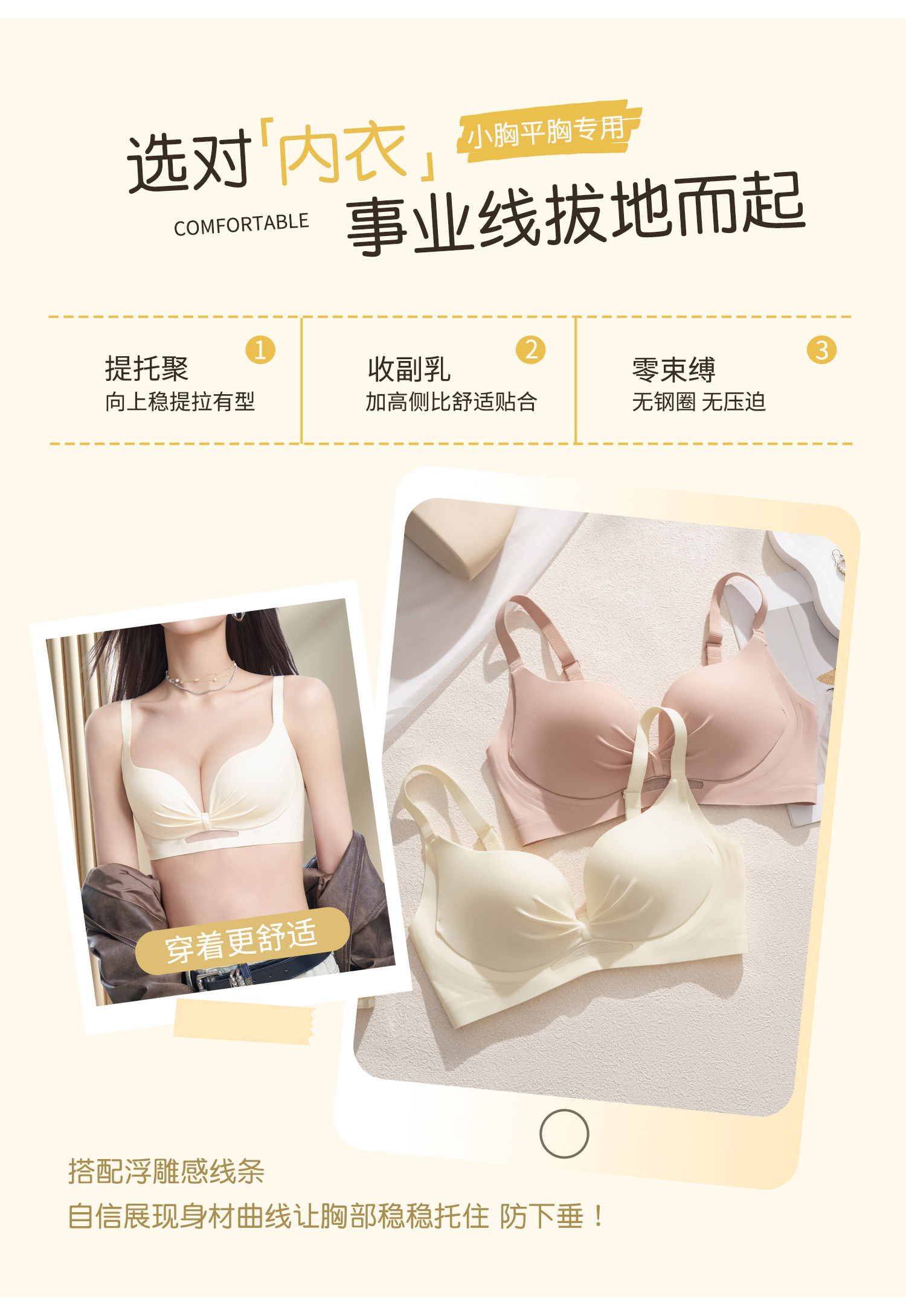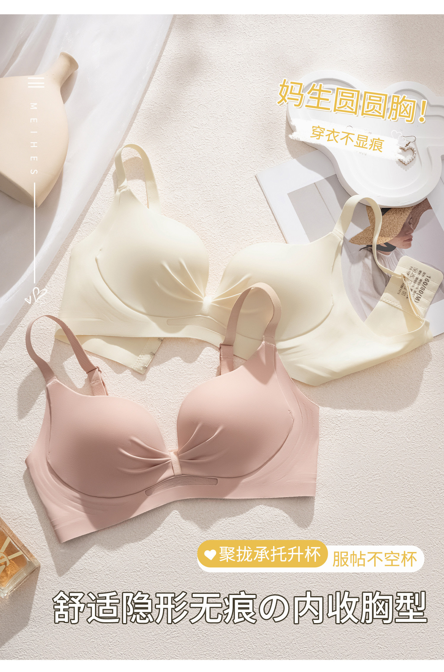 無痕內衣女士小胸聚攏收副乳防下垂上托提拉無鋼圈舒適裸感文胸罩