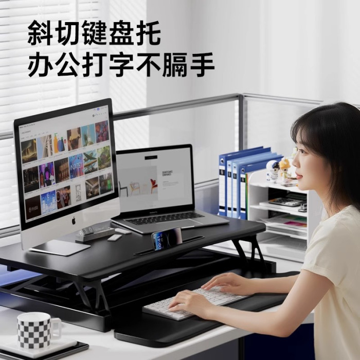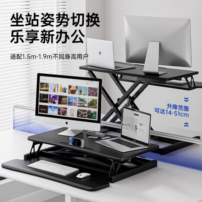 站立式工作台電腦桌可升降調節筆電辦公桌子折曡顯示器增高支架